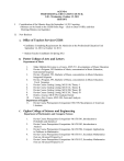AGENDA PROFESSIONAL EDUCATION COUNCIL 3:30 - Wednesday, October 12, 2011 GRH 3073 I. Consideration of the Minutes from the September 14, 2011 meeting (Minutes can be found on the CEBS Home Page – click on Dean’s Office and then Meetings Minutes and Agendas) II. New Business A. Office of Teacher Services-CEBS ▪ Candidates Completing Requirements for Admission to the Professional Education Unit September 14, 2011 to October 12, 2011 ▪ Student Teacher Candidates for Spring 2012 B. Potter College of Arts and Letters Department of Music 1. 2. Make Multiple Revisions to a Course, MUS 511, Investigations of Music Education Revise a Program, 593 Bachelor of Music, concentration in Music Education, Instrumental Sequence 3. Revise a Program, 593, Bachelor of Music, concentration in Music Education, Integrated Sequence 4. Revise a Program, 593, Bachelor of Music, concentration in Music Education, Vocal Sequence 5. Revise Course Catalog Listing, MUS 100, Theory I 6. Revise Course Catalog Listing, MUS 101, Theory II 7. Revise Course Catalog Listing, MUS 200, Theory III 8. Revise Course Catalog Listing, MUS 201, Theory IV 9. Delete a Course, MUS 559, Graduate Recital 10. Create a New Course, MUS 304, Form and Analysis Department of English 11. Revise Course Prerequisites/Corequisites ENG 390, Masterpieces of American Literature C. Ogden College of Science and Engineering Department of Mathematics and Computer Science 1. 2. 3. 4. 5. Revise Course Prerequisites/Corequisites--MATH 501, Introduction to Probability and Statistics I Revise Course Prerequisites/Corequisites--MATH 503, Introduction to Analysis Revise Course Prerequisites/Corequisites--MATH 504, Computer Applications to Problems in Mathematics Revise Course Prerequisites/Corequisites--MATH 511, Secondary Mathematics from an Advanced Perspective I Revise Course Prerequisites/Corequisites--MATH 512, Secondary Mathematics from an Advanced Perspective II D. College of Education and Behavioral Sciences Educational Leadership Doctoral (EdD) Program 1. 2. 3. E. Create a New Course – EDLD 702, Educational Leadership Doctoral Program Orientation Create a New Course – EDLD 797, Dissertation Seminar Revise a Program – 0010, Doctor of Education (EdD) Educational Leadership College of Education and Behavioral Sciences School of Teacher Education 1. 2. 3. 4. 5. 6. 7. 8. 9. 10. 11. III. Create a New Course – EDU 570, Educational Assessment for P-12 Learners Create a New Course - SEC 573, Methods of Teaching Business & Marketing Education Create a New Course – EDU 589, Advanced Internship for the MAT Revise a Program #103, Alternate Route to Teacher Certification/Master of Arts in Education: Secondary Education Revise a Program #139, Alternate Route to Teacher Certification/Master of Arts in Education: Middle Grades Education Revise a Program #0433 MAE: Elementary Education for Teacher Leaders Revise a Program #0434, MAE in Education: Middle Grades Education for Teacher Leaders Revise a Program #0435, MAE in Education: Secondary Education for Teacher Leaders Revise a Program #0430, Non-degree Planned Fifth year/Rank II in Elementary Education for Teacher Leaders Revise a Program 0431, MGE Teacher Leader-Rank II Revise a Program #0432, SEC Teacher Leader Rank II Other Business For Information Only ▪Create a Temporary Course – EDLD 702, Educational Leadership Doctoral Program Orientation ▪Create a Temporary Course – EDLD 722, Measurement and Survey Methods for Educational Leaders ▪Clarification of Certification Codes for Teacher Education Undergraduate Programs ▪Clarification of Certification Codes for Teacher Education Graduate Programs CANDIDATES COMPLETING REQUIREMENTS FOR ADMISSION TO PROFESSIONAL EDUCATION UNIT September 14, 2011 – October 12, 2011 ELEMENTARY P-5 Brown, Devin Rogers, Lauren Wise, Samantha IECE Elementary Elementary MIDDLE GRADES Doan, Phuong Justis, Sarah Lutz, Ryan Neiman, Nicholas Sowder, Joseph Whitlock, Robert Math Science SS/Math Math Science Math P-12 Anderson, Drew Blake, Christopher Bloecher, Joshua Bloink, Andrew Bratcher, Stacie Bridges, Natasha Burroughs, Sloan Davis, Natalie English, Heather Hammonds, Ross Kinkle, Ethan Lewis, Lauren Martin, Valerie Meredith, Jillian PE Music Music PE EXED Art Music Art PE PE Music Art Music Music Price, Jameson Simmons, Jeremy Wallace, Andrea Weber, Alice Music PE Art Art SECONDARY Claiborne, Spenser Crawford, Kathryn Gearhart, Audrey King, Jonathan Oldham, Madeline Patel, Amar Smith, Crystal Biology Biology English Physics Math Chemistry Biology MASTERS Blanton, Elliot Green, Amanda Sanderson, Shawn Troutman, Alana Spanish Alt-Route CD CD EXED If there are any questions or concerns about the status of any candidate, the person with the question or concern should contact Dr. Fred Carter, Teacher Services (745-4611 or fred.carter@wku.edu) prior to the PEC meeting. STUDENT TEACHER CANDIDATES FOR SPRING 2012 QUALIFIED ***STUDENT TEACHING APPLICATION ACCEPTED***10/12/11*** WKU ID FIRST ARLEE N. KYLE LAST DANHAUER PORTER MAJOR 5-12/AGRICULTURE 5-12/AGRICULTURE ADRIENNE ANTHONY MEGAN ALLIE TONISSA CATES EMBRY HUGHES MEADOR SWEAT 5-12/BUSINESS & MKTG 5-12/BUSINESS & MKTG 5-12/BUSINESS & MKTG 5-12/BUSINESS & MKTG 5-12/BUSINESS & MKTG BRANDY MEADOR 5-12/FCS EMILY HEATHER LE'ANDREA NANCY ELIZABETH BETHANY CHELSEA BRANDY KENDALL BRITTNEY JENNIFER KRISTY M. CHELSIE AUSTIN CHRIS EMILY CHRISTINE BREANNA KATIE JESSICA BRITNEY HANNAH KARA KACEY OLIVIA TABBATHA NATALIE WHITNEY HAILEY BROOKE ALVEY ASHBY ASHLEY ASKEW AYER BARNETT BILLINGS BLEVINS BLUE BOLLINGER BREWER BRIGHT BUXTON BYERS CALVERT CAMPBELL CLARKE COLLINS COPASS DARST DAVIS DENNY DOBBS DUVALL ELLIOTT ELMORE EMBERTON FACKLER FERGUSON FORD ELEMENTARY ELEMENTARY ELEMENTARY ELEMENTARY ELEMENTARY ELEMENTARY ELEMENTARY ELEMENTARY ELEMENTARY ELEMENTARY ELEMENTARY ELEMENTARY ELEMENTARY ELEMENTARY ELEMENTARY ELEMENTARY ELEMENTARY ELEMENTARY ELEMENTARY ELEMENTARY ELEMENTARY ELEMENTARY ELEMENTARY ELEMENTARY ELEMENTARY ELEMENTAR