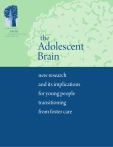 the Adolescent Brain new research and its implications for young people transitioning from foster care The Adolescent Brain: New Research and Its Implications for Young People Transitioning From Foster Care © 2011, Jim Casey Youth Opportunities Initiative The Jim Casey Youth Opportunities Initiative’s mission is to ensure that the young people who leave foster care are able to make successful transitions to adulthood. The Initiative promotes practices in three key areas: youth voice, community partnerships, and the creation of a range of opportunities for young people. It works in partnership with communities and states across the country to integrate these practices into the core work of state child welfare agencies and other strategic allies. Jim Casey Youth Opportunities Initiative 222 South Central, Suite 305 St. Louis, MO 63105 Phone: 314-863-7000 Fax: 314-863-7003 www.jimcaseyyouth.org This paper is a result of a collective effort of the Jim Casey Youth Opportunities Initiative team of staff and consultants. The primary writer was Madelyn Freundlich, who undertook this effort initially with Sarah Greenblatt. Dianna Walters and Lynn Tiede made substantial contributions throughout, as did Barb Toth, Kent Berkley, Leonard Burton, Ira Cutler, and Gary Stangler. Constructive reviews and comments were done by Ann Jefferson, Kate Lee, Christine Johnson, Raquel Pfeifer, Liz Squibb, and Shannon Brower. Gina Samuels, Carol Emig, and Anthony Schneider-Munoz provided valuable comments and edits. Most importantly, we acknowledge the contributions of the Jim Casey Youth Opportunities Initiative Young Fellows. The Adolescent Brain: New Research and Its Implications for Young People Transitioning From Foster Care Contents Executive Summary 1 Introduction 7 Older Youth and Young Adults in Foster Care 8 The Emerging Knowledge Base: A Foundation for Developmentally Appropriate Practice 13 Recommendations 32 Questions for the Field 37 Glossary 39 Bibliography 40 iii “It’s not that foster care tells what you can’t do. It’s that nobody ever tells you what you can do.” —Lynn Twigg, age 28 The Adolescent Brain: New Research and Its Implications for Young People Transitioning From Foster Care EXECUTIVE SUMMARY Introduction Many disciplines have contributed to the knowledge base regarding what enables young people in foster care to succeed. Now, neuroscience has added critical data to that base by revealing that in adolescence, the brain experiences a period of major development comparable to that of early childhood. Among the implications of the new data is this: Adolescents must take on distinct developmental tasks in order to move through emerging adulthood and become healthy, connected, and productive adults—and young people in foster care often lack the supports needed to complete these tasks. Unlike younger children in foster care, for whom safety and protection are the greatest need, older youth are in the process of developing greater autonomy and practicing adult roles and responsibilities. It is during adolescence and early adulthood that we develop a personal sense of identity, establish emotional and psychological independence, establish adult vocational goals, learn to manage sexuality and sexual identity, adopt a personal value system, and develop increased impulse control and behavioral maturity. Chemical changes in the brain that prime adolescents for risk-taking present rich opportunities for them to learn from experience and mistakes and, with adult support, gain greater self-regulation, coping, and resiliency skills. THE ADOLESCENT BRAIN By the age of 25, young people need to be “connected,” that is, “embedded in networks— families, friends, and communities—that provide guidance, support, and help, both financial and otherwise, when they face the crises that are an inevitable part of the transition” to adulthood.1 It is by being connected that young people find love and acceptance for who they are, what they have experienced, and who they can become as caring adults. Becoming connected by 25 is especially important for older youth and young adults in foster care, because as a result of their life experiences, they are often disconnected from supportive networks. Family and caring adults are essential social capital for young people, and so the field of child welfare must make building social relationships and networks a priority in all services intended to promote permanency and prepare young people for adulthood. Science also has contributed to a more in-depth understanding of the impact of trauma on the developing brain. Positive youth development services, opportunities, and supports are essential in counteracting the effects of trauma to promote healthy brain and social development in adolescence. In addition, research on complex trauma and ambiguous loss reveal the critical need for effective trauma-informed and trauma-specific practices in addressing the identity and griefrelated issues that older youth and young adults in foster care are likely to experience. The concepts of resiliency and neuroplasticity provide a foundation for developing trauma-informed child welfare practice and trauma-specific mental health services and supports for young people in foster care. 1 Wald , M. & Martinez, T. (2003), p.2 1 “If you don’t have anybody that believes in you, how do you believe in yourself? That’s one of the biggest things that foster youth deal with: nobody cares if they succeed, so they think, ‘well, why do I care if I succeed?,’ which is sad.” —Mike Peno, age 22 The emerging science of adolescent brain development has deepened the understanding of adolescent capabilities and behaviors. Neuroscience has made clear that the brain is not “done” by age 6 as was previously believed. Instead, the adolescent brain continues to develop, providing a window of opportunity similar to that which is open in early childhood. Adolescence is a period of