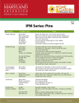 IPM Series: Pine Symptoms Needle Yellowing Needle Browning Possible Causes HG 54 2003 Notes Spruce Mites Pine Tortoise Scale Pine Needle Scale Bark Beetles Air Pollution Iron Chlorosis Needle Shed Spring: old needles only; Fall: current season’s growth May also see honeydew and sooty mold and large attending ants White scale covers on needles, yellowing in heavy infestations Top of tree affected first On close inspection damage appears as fine stippling Overall yellowing Some interior needles are naturally dropped in the fall Scale Insects Spruce Mites Bark Beetles Borers Needle Casts and Blights Advanced symptoms of insect and disease damage Tap branches on white paper to look for period sized mites Top of tree affected first Look for holes of various sizes and oozing pitch Symptoms range from dark brown to black spots to general browning and premature needle drop Dieback of new growth and burning of needle tips the following spring Tips of needles brown first as a result of root damage Dry sites, shallow soils, newly transplanted trees Damage on windward side of tree Tip browning results from necrotic banding of the middle of needles. The needle bases usually remain green De-icing Salt Damage Fertilizer Burn Drought Winter Burn Air Pollution Needle Stippling (pin-point yellow spots) Spruce Mites Air Pollution Tap branches on white paper to look for period sized mites Tip browning results from necrotic banding of the middle of needles. The needle bases usually remain green Spots on Needles Scale Insects Needle Cast Diseases Needle Rusts Yellow spots, look for needle scales on needles, will scrape off Mostly dark brown to black spots, dieback can occur beyond lesions Orange-yellow spots, powdery Needle Drop Spruce Mites Needle Cast Diseases Cultural Problems Seasonal Advanced mite damage Severe disease damage Poor establishment, drought, etc. Normal fall needle drop Needles Eaten, Chewed or Webbed Sawflies Bagworms Resemble caterpillars, feed in groups Silk bags covered with needles on branches, terminals are defoliated first Bundle of needles webbed together to form a tube Early damage, mined needles; later, caterpillars make nests of silk and frass around terminal twigs Pine Tube Moth Pine Webworm 1 For more information on this and other topics visit the University of Maryland Extension website at www.extension.umd.edu Dead Terminals Pine Shoot Moths White Pine Weevil Sphaeropsis Tip Blight Cenangium Twig Blight Sooty Mold, Honeydew Aphids Pine Tortoise Scale on Needles Frothy Mass on Twigs Pine Spittlebug White Material on Bark Pine Bark Adelgid Branch Dieback Sphaeropsis Tip Blight Bark Beetles and Borers Rust Diseases Northern Pine Weevil Various Cankers Pitch or Resin Flow Wilting Poor Growth Root Damage or Root Rots Bark Beetles or Borers Tip Blight Cankers Root Rots Caterpillars bore into terminal growth and kill it Adults and larvae feed in terminal leader Excessive pitch on terminals and pinpoint spots on needles Dying of terminal of buds and reddening of needles Small insects feed on needles, green or black with white spots, honeydew Ants, honeydew and sooty mold near branch terminals Frothy masses of spittle on twigs in May and June Fluffy white wax on branches and trunk in spring Advanced stages of this disease, lower branches typically die first Look for holes of various sizes and oozing pitch Swollen areas on trunk or branches, orange-yellow blister-like or gall-like areas on bark Heavy infestations may girdle and kill seedlings and branches of larger trees. Branch dieback occurs after most of the spring feeding is finished Dark, elongated lesions with roughened bark, occasionally spore producing structures are present May see resin flow at base of tree, overall decline, shorter needles, off color General reaction to damage, i.e. insect attack (borers) or diseases (tip blights, cankers, root rots) Pine Wilt Nematode Drought Root Damage Wet Sites Sudden drying out, needles droop downward, branches become brittle Dry sites, shallow soils, newly transplanted trees May see resin flow at base of tree, overall decline, shorter needles, off color Blackened roots Overly Wet or Dry Sites Poor Site Conditions Poor Plant Material Procera Root Rot Roots stunted or poor root development, may be blackened Compacted, heavy clay and/or poorly drained soils; shade Undersized root ball, girdling roots Root rot, resinous flow at soil line, overall decline, shorter needles, off color Culture and Environmental Problems Typical urban planting sites (i.e. new home lots) often consist of shallow compacted sub soil, restricted root growth sites and areas with poor drainage. These conditions will contribute to environmental stresses which can lead to insect and disease problems at some later date. Pines, especially white pine, are widely planted and are used as wind breaks and privacy screening around homes through out Maryland. As a result, pines are sometimes planted in marginal or poor planting sites which lead to less than optimal growth or sometimes failure. Poor quality planting stock is also sometimes a problem when demand is high and plant supply is limited. Many cultural and pest problems on pines can be avoided by selection of high quality plants and proper placement in the landscape. Carefully inspect plants before purchase and reject plants with circling or kinked roots. Also avoid plants with root systems too small for the size of the tree, especially trees that have never been root pruned or trees hastily dug from old farm fields. Pines should be planted in sites with moderate moisture and well drained, acidic soil. Pines are shallow rooted and require supplemental irrigation during drought. White pines will not tolerate poorly drained sites. Normal Fall Needle Shed Many pines will exhibit older needle yellowing in the fall which is normal needle shed. This second year needle yellowing which occurs towards the interior of the tree may occur all at once and may be quite dramatic. Thi