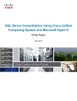 SQL Server Consolidation Using Cisco Unified Computing System and Microsoft Hyper-V White Paper July 2011 White Paper Contents Executive Summary ..................................................................................................................................................... 3 Introduction .................................................................................................................................................................. 3 Audience and Scope ................................................................................................................................................. 4 Today’s Challenges .................................................................................................................................................. 4 Why Consolidate?........................................................................................................................................................ 4 Cisco UCS B250 M2 Blade Servers .......................................................................................................................... 6 Microsoft SQL Server 2008 ....................................................................................................................................... 7 Tested Configurations and Methodology .................................................................................................................. 8 Workload .................................................................................................................................................................... 11 Test Results ............................................................................................................................................................... 12 Scenario 2 ............................................................................................................................................................... 15 Conclusion ................................................................................................................................................................. 17 For More Information ................................................................................................................................................. 17 © 2011 Cisco and/or its affiliates. All rights reserved. This document is Cisco Public Information. Page 2 of 17 White Paper Executive Summary This white paper details a study of Microsoft SQL Server consolidation on Cisco Unified Computing System (UCS). The primary objective of the study is to articulate the total cost of ownership (TCO) and return on investment (ROI) that can be achieved by companies who consolidate SQL Server on the Cisco Unified Computing System. Additionally, the study will also show that consolidated SQL Server implementations on the Cisco Unified Computing System can meet the scalability, availability and performance requirements mandated by today’s high-volume database implementations. Along with providing a framework for choosing among virtualization, multi-database, and multi-instance consolidation strategies for SQL Server Database Engine supporting OLTP applications by highlighting some of the key decision points based on technical analysis, this white paper also provides guidance and recommendations to help customers design a consolidation and virtualization strategy for deploying Microsoft® SQL Server® software on the Cisco Unified Computing System. This experiment will show that the Cisco Unified Computing System can help companies realize a reduction in total cost of ownership (TCO) and achieve the level of infrastructure agility required to meet the challenges of today’s fast paced and ever changing business requirements. Introduction In today’s economic climate, enterprises are taking a closer look within their IT organizations to identify potential areas in which cost-saving strategies can be implemented to help reduce operating expenses. One of the challenges that IT organizations face today is how to develop an infrastructure that allows flexibility, redundancy, high-availability, ease of management, security, and access control while at the same time reducing costs, hardware footprints and complexity. The growth in IT industry has realized tremendous growth in hardware computing capacity, database applications and physical server sprawl has resulted in costly and complex computing environments containing many over-provisioned and under-utilized database servers. Many of these servers implement a single instance of SQL Server realizing ten to fifteen percent CPU utilization on average which is not an optimal use of server resources. Additionally, due to the complexities introduced by all of this growth, many database administrators today are overburdened with redundant management and administrative tasks that must be implemented on each of the many servers they are responsible for. Also, during a catastrophic, physical database server failure, there is a significant impact on the sever administrator as they typically are the resources that are required to provision another physical server into the environment and prepare it for the application. Database server consolidation is an area where companies can realize considerable cost savings with regards to total cost of ownership. Database server consolidation can also help companies to achieve the infrastructure agility they are seeking to stay competitive and provide the fastest time to market for their solutions. Consolidation, in general terms, is the combining of various units into more efficient and stable larger units. When applied to an IT department, consolidation specifically translates into improved cost efficiency from higher utilization of resources, standardization and improved manageability of the IT environment, and recent focus on a “green” IT environment through reduced energy consumpti