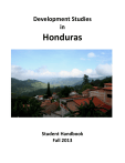 Development Studies in Honduras Student Handbook Fall 2013 Table of Contents Introduction and Preparing for Your Semester in Honduras…………………page 3 Introduction Before You Leave for Honduras Getting Ready to Go: Registration Financial Aid Academic Program Spanish Planning Your Budget Passports What to Pack Weather When You Arrive in Honduras…………………………………………………………….page 8 The Airport Living in Santa Lucia Studying at the Pedagogical University Safety Email Regular Mail Living with a Honduran Family: Potential Areas of Conflict Spiritual Growth Traveling in Honduras Visitors Authority and Discipline…………………………………………………………………...page 12 Medical Information…………………………………………………………………………page 13 Directors’ Contact Information…………………………………………………………page 14 2 Introduction This handbook is designed to prepare you for your semester in Honduras and answer your questions about studying abroad. We hope that it will help you get ready to make your study in Honduras an unforgettable learning experience. During your time in Honduras you will be kept busy… …learning in the classroom about development and poverty. …practicing your Spanish in class and with your Honduran family and friends. …experiencing Honduran culture by visiting ancient Mayan ruins, banana plantations, remote villages, and more. …playing soccer with friends or socializing over a cup of coffee. Your life will be full of new experiences and sensations. But living and studying in Honduras won’t always be easy. You will struggle with Spanish and with understanding familiar customs and cultures, and at times you will feel uncomfortable living outside your own country. But we guarantee that through all of these experiences--both the exciting and the uncomfortable--you will experience life in a way you never have before, make friendships that cross cultural and national borders, and leave Honduras a more perceptive person that when you arrived. Take time to prepare yourself for this program—read up on Honduras, learn a little more Spanish and most of all reflect on your own willingness to be open and adaptable to the differences and adventures you will encounter in this study abroad experience. Before You Leave for Honduras A semester in Honduras is hard to imagine. Will it be all you hope for or a frustrating disappointment? Are you prepared academically, socially, and emotionally for the challenge of living in another culture? Will it be safe? It’s natural to be both eager for the adventure and at the same time apprehensive about your ability to handle living in a new and different culture. So it makes sense to spend some time reflecting on how you can make your semester the best and most rewarding experience. Most students who participate in a study abroad program say afterwards that it was the most important experience in their lives. Never before have they met such different people and learned so much about themselves. They can’t wait to return abroad. But participants never describe the semester as pure excitement and fun. They also use words like stretching, confusing and uncomfortable. The greatest achievements of the semester are often described as learning to cope, to function as a resident and not as a tourist, and to endure the uncomfortable for the sake of enjoying the enriching experiences of living abroad. We have seen over the years that the students who get the most out of their time in Honduras are not necessarily the best students academically. They are the ones who come with the most realistic understanding of themselves and their own culture. All students find aspects of Honduran culture that they don’t like. But the most successful students are able to understand their likes and dislikes are mostly based on what they are used to, so they handle the differences without getting too frustrated or needing to change things. 3 Remember that while there is much that separates the North American and Honduran cultures, there is also much that brings them together. Your own willingness to take the plunge to do a semester abroad is an indication of your openness to living in an unfamiliar culture. Patience, humor and a generous spirit can make the coming semester a positive and unforgettable experience. Getting Ready to Go Registration Students who participate in Calvin-run off-campus semester programs are automatically registered for their program. Once you are accepted into a Calvin program, Bob Meyering in the Registrar’s Office will register you for the classes that you listed on your preliminary application. In other words, you don’t need to do ANYTHING in order to be properly registered for the semester. You should, however, meet with your advisor to decide your courses for the following spring semester, since you will register via internet from Honduras during the fall semester. Registration information will be sent to your Calvin e-mail address while in Honduras for you to register for fall classes but it’s a good idea to know what classes you want to take in the Spring before you leave for Honduras. (Non-Calvin students should, of course, check with their home schools concerning registration for the program and for the following semester). Financial Aid Students receiving financial aid on-campus will receive the same aid package for their off-campus program in Honduras. The Development in Honduras Semester costs roughly the same as a semester on-campus. For additional information on questions relating to financial aid, please contact Dave Brummel in the Financial Aid Office. Academic Program The academic program in Honduras runs from mid-August to December. The three development courses are offered back to back every day except some Fridays. About half of your weekends will be spent on Friday th
