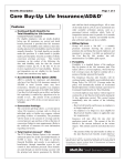 Benefits Description Page 1 of 4 Core Buy-Up Life Insurance/AD&D1 and with free check writing privileges. All or some of the funds held in a TCA can be transferred into other available settlement options, such as a guaranteed interest certificate which “locks in” competitive interest rates for periods of six months up to seven years. Annuity and monthly income plan settlement options are also available. Features • Continued Death Benefits for Total Disability for Life Insurance Continued Protection (standard) For eligible employees who are totally disabled before age 60, premiums are waived and death benefit protection is provided after life insurance ends. The total disability must continue at least nine months and proof of total disability must be provided annually thereafter. No death benefits are payable under this provision if a death benefit is payable under a personal policy issued in accordance with the conversion privilege provision. This benefit terminates on the earliest of the following: the date total disability ends, the date the covered employee reaches age 65, or the date we do not receive required proof of total disability. Retirees and dependents are not eligible for this benefit. Certain state restrictions may apply. • Accelerated Benefits Option (ABO) ABO is available for employees and dependents who have Core Buy-Up Life insurance amounts of $20,000 or more (certain states may have restrictions). Benefits are payable if an employee (spouse) requests payment of the ABO while his/her Core Buy-Up Life benefits are in effect, and his/her life expectancy is certified by a physician to be six months or less. The amount of the accelerated benefits is up to 50% of the covered amount up to $250,000. • Conversion Privilege The conversion privilege allows a covered person whose life insurance coverage ends to obtain an individual policy at his/her own expense, without providing evidence of insurability. The premiums will be based on the amount of coverage and the covered person’s age and class of risk at the time of conversion. (Subject to state requirements.) Refer to the certificate of insurance for more information regarding conversion. • Total Control Account® (TCA) The TCA Money Market Option is the automatic settlement option for all life and AD&D benefits of $7,500 or more. The TCA helps to provide financial flexibility and security to an employee’s beneficiaries through immediate access to, and control of, their insurance proceeds. These benefits are paid through an interest-bearing account with the principal and interest guaranteed by MetLife • Billing Options Groups will receive a “list bill” — a monthly premium statement showing the amount of premium due and listing the insured employees and premium by coverage. List bills are preferred for the Core Buy-Up Life product, but selfadministration is available upon request. • Portability Portability is a standard feature of the employee Buy-Up portion of the Life insurance plan. This feature allows a covered employee, whose Buy-Up Life coverage ceases, the right to continue all or a portion of his/her optional life benefits. The Employee Buy-Up Life benefits will be continued under a portability pool established under Group Policy No. 93211-G. Coverage under the policy will automatically include an Accelerated Benefit Option but it will not include a provision for Continued Death Benefits for Total Disability. A covered employee may make a written request to continue his or her Buy-Up Life benefits during the 31-day application period. This period begins immediately after the earliest of the following events: – Buy-Up Life benefits end because an employee is no longer employed, or – An employee is no longer in a class eligible for Buy-Up Life benefits (subject to applicable state law requirements). Insurance will take effect the day after the application period ends. The amount of the life benefit is the amount indicated on the written request. This amount cannot be more than the lesser of: – The amount of Buy-Up Life benefits in effect on the date Buy-Up Life benefits would otherwise (Continued) 1 Core Buy-Up Life AD&D is an insurance package that consists of the following MetLife products: Basic Life, Optional Life, Dependent Life, Accidental Death or Dismemberment, Optional Accidental Death or Dismemberment and Dependent Accidental Death or Dismemberment. Small Business Center Core Buy-Up Life Insurance/AD&D Benefits Description more miles from home. Services are provided through Assist America’s global network of alarm centers, doctors, hospitals and clinics. Employees who participate gain immediate access to emergency services. Participants receive an identification card with phone numbers and instructions to access Assist America’s services in an emergency. These services are not a feature of insurance coverage. Features (continued) end because an employee’s employment ends or because an employee is no longer in an eligible class; or – $1,000,000 • Core Buy-Up Accidental Death or Dismemberment Core Buy-Up AD&D and Dependent Buy-Up AD&D coverage provides protection in addition to the Core Buy-Up Life insurance coverage. Coverage is provided for the covered losses shown below, if they are caused solely by an accident, occur on or off the job, and occur within one year of the accident. No more than the full amount will be paid for all covered losses caused by injuries which an employee sustains in one accident. The full amount is equal to the Life benefit payable for loss of life. The seat belt benefit will pay an additional amount. Covered Loss Benefit Amount Life Full amount A hand One-half of the full amount A foot One-half of the full amount Sight of an eye One-half of the full amount Loss of any combination of a hand, a foot and/or sight of an eye in any one accident Full amount Thumb and index finger on the same hand One-quarter of the full amount Speech and hearing Full