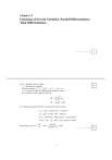 . Chapter 12 Functions of Several Variables; Partial Differentiation; Total Differentiation ------------------- . Let d = diameter of the cylinder l = length of the cylinder Then the volume V is V = 4 d 2 l, i.e. V = f (d , l) V is a function of the two independent variables d and l. The tolerance of the volume is given by δV = ∑ 2 67 ∂V dx ∂ xj j δV = Vd δd + Vl δl We evaluate the partial derivatives and insert the given values. Vd = Vl = 2 d l, 2 4d , Vd (80, 120) = 15 079.65 Vl (80, 120) = 5026.55 δV = (15079.65 + 5026.55)0.15 = 3015.93 mm3 V (80, 120) = Percentage error in V = 4 × 802 × 120 = 603 185.79 mm3 301 593 δV × 100 = = 0.5% V 603 185.79 1 ------------------- 68 Chapter 12 Functions of Several Variables; Partial Differentiation; Total Differentiation . Before starting a new chapter quickly recapitulate the previous one, writing down all important facts from memory. Then check them with the text and any notes you made when you were studying that particular chapter. This shouldn’t take you more than 5 minutes, but don’t skip it. ------------------- . Now try the following problem. 2 3 68 A field in the shape of a right-angled triangle is measured: b is found to be 75.5 m and α = 25.5◦ with maximum errors of 0.5 m and 0.75◦ respectively. Calculate the percentage error in calculating the length a and the area A of the field. Hint: Calculate in radians and convert δα into radians first. Solution Further hints wanted 2 ------------------- 72 ------------------- 69 Chapter 12 Functions of Several Variables; Partial Differentiation; Total Differentiation . 12.1 The Concept of Functions of Several Variables 3 Objective: Concept of a function of several variables, determination of surfaces of functions of two independent variables. A very effective way of studying mathematical and physical concepts is to work with similar problems to those in the text, in parallel with it. As you study the text carry out all the necessary operations using the function z = f (x, y) = e−(x READ: 2 +y 2 ) 12.1 Introduction 12.2 Functions of several variables Textbook pages 337–344 ------------------- . If you are in difficulty remember that from our knowledge of trigonometry we have: Length: a = b tan α ab b 2 tan α Area: A = = 2 2 4 69 δA δa = ........................ = ......................... a A δa δA The relative error is given by and . a A δa δA The percentage error is given by × 100 and × 100. a A Given b = 75.5 m α = 25.5◦ Now try to evaluate δb = 0.5 m δα = 0.75◦ Calculate the relative errors and hence the percentage errors. Solution Detailed solution 3 ------------------- 72 ------------------- 70 Chapter 12 Functions of Several Variables; Partial Differentiation; Total Differentiation . Have you been working with the function 4 z = f (x, y) = e −(x 2 +y 2 ) in parallel with the text? . Yes No ------------------- 6 ------------------- 5 Consider the error in the length a of the triangle. By differentiating partially, first with respect to b and then with respect to α, we find ∂a = tan α = tan 25.5◦ = 0.48 to two decimal places ∂b 70 ∂a b 75.5 m = = = 92.68 ∂ α cos2 α cos2 25.5◦ Hence the error δa in a due to errors δb = 0.5, δα = 0.75◦ is δa = ∂a ∂a 92.68 δb + δα = 0.48 × 0.5 + × 0.75 = 1.45 m ∂b ∂α 57.3 (Remember the factor 57.3 to convert 0.75◦ to radians!) Percentage error in the length a δa 1.45 × 100 × 100 = = 4.03% a 75.5 tan25.5◦ ------------------- 4 71 Chapter 12 Functions of Several Variables; Partial Differentiation; Total Differentiation . That’s a pity. To solve a problem in parallel with the one in the text is cumbersome. But it does lead to a better understanding of the subject matter; in the long run it saves time. So try to sketch the surface given by the equation z = e−(x 2 +y 2 ) following steps analogous to those in section 12.2. . 5 ------------------- Now for the error in the area. 6 71 ∂A = b tan α = 75.5 tan25.5 = 36.01 ∂b ∂A b2 75.52 = = = 3498.54 ∂ α 2 cos2 α 2 cos2 25.5◦ ∂A ∂A 3498.54 × 0.75 db + dα = 36.01 × 0.5 + = 63.80 m2 Hence δA = ∂b ∂α 57.3 The percentage error in the measurement of the area is δA × 100 = A 1 2 6380 = 4.69% × 75.52 tan 25.5◦ ------------------- 5 72 Chapter 12 Functions of Several Variables; Partial Differentiation; Total Differentiation . Well done! To carry out a calculation in parallel with the text instead of reading quickly may seem tiresome but if you do it you will reap the benefit. Here are some hints for the solution of the problem to sketch z = e−(x 6 2 +y 2 ) The values have been rounded, e.g. e−1 ≈ 0.4; e−4 ≈ 0.02. x 0 1 2 0 1 0.4 0.02 1 0.4 0.1 0.007 2 0.02 0.007 0.0003 y ------------------- . Percentage error in the length a: 4.03% Percentage error in the area A: 4.69% In case of difficulties work through the detailed solution given in frames 69, 70 and 71 again. 7 72 Write down the two properties of the gradient: Given the function z = f (x, y) — The gradient is a ...................... vector to the contour lines. Thus it points in the direction of the ...................... — The absolute value of the gradient is proportional to ...................... ------------------- 6 73 Chapter 12 Functions of Several Variables; Partial Differentiation; Total Differentiation . Your sketches might be similar to these 7 The surface is similar to the one in the text. However, it approaches zero very quickly for large values of x and y. The function is a Gauss surface. This type of surface occurs in probability theory. ------------------- . 8 73 — The gradient is a normal vector to the contour line. Thus it points in the direction of the greatest change in z. — The absolute value of the gradient is proportional to the change in z per unit length in its direction. Given: z = f (x, y) Obtain grad f (x, y) = ...................... ------------------- 7 74 Chapter 12 Functions of Several Variables; Par