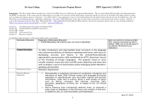 De Anza College Comprehensive Program Review IPBT Approved 11/24/2015 Instructions: The first column below matches key words in TracDat where you will enter the requested information. The second column fully describes the information that the IPBT is requesting. It also represents the information you would see if you pressed the help button (a question mark) by each box in TracDat. The third column is where you can input your data/responses at this time. You will be able to copy and paste or type in your information from the third column directly into the TracDat boxes. Save this Word doc in the following format: sp2016cpr_deptname. Last steps: ALWAYS keep a soft copy of your work in your files to ensure that your work is not lost. Upload a copy of this document into the Trac Dat, “Documents file”. Also upload the Program Review Data sheet(s). If you have questions, please refer to your workshop handout (http://www.deanza.edu/slo/tracdat.html) or contact: papemary@fhda.edu. Section I: Section II: Section III: Section IV: Section V: Overall program description (including CTE) Overall student enrollment and success Equity Assessment Cycle Resource requests In TracDat. Limit narrative to 100 words; bullet points encouraged Information Requested Explanation of Information Requested. ? TracDat Help button will reveal the same cues (sorry no hyperlinks) Program Description Department Name: Program Mission Statement: Input your answers in columns provided. Note: reference documents can also be attached. Make sure to note the name of any reference documents in your explanations. To offer introductory and intermediate level curriculum in the language and culture/contributions of Mandarin-speaking world areas, with focus on developing accuracy and fluency in the (oral/written/culturally appropriate) communication skills established by ACTFL (American Council on the Teaching of Foreign Languages). The program strives to serve transfer students, those who wish to fulfill career objectives and those who wish to deepen a sense of functionality and/or belonging within Mandarinspeaking communities. Mandarin Department Demonstrate a sustained command of vocabulary (recognize and reproduce at least 2000 Chinese words) and language structures necessary to spontaneously and accurately request and provide information, orally and in writing, about a wide variety of topics such as dating, computer and internet, part-time jobs, education, geography of China, etc. It relates to ICC #5 Critical Thinking. Derive meaning from increasingly abstract texts, to interpret a wide range of subtleties of the structure and content of the text. It relates to ICC #1 Communication and Expression. June 27, 2016 1 De Anza College Comprehensive Program Review Compose lengthier and more accurate discourse about familiar topics to reflect a sustained command of vocabulary and language structures. It relates to ICC #2 Information Literacy. Demonstrate a steady grasp of the subtleties in the idiosyncracies of Mandarin-speaking cultures, by analyzing and comparing them to one’s own culture(s). It relates to ICC #4 Civic Capacity for Global, Cultural, Social & Environmental Justice. I.A.1 What is the Primary Focus of Your Program? Transfer I.A.2 Choose a Secondary Focus of Your Program. Career and Personal Enrichment I.B.1 # Certificates of Achievement Awarded # Certificates of Achievement-Advanced Awarded: 1 I.B.3 # ADTs (Associates Degrees for Transfer) Awarded NA I.B.4 # AA and/or AS Degrees Awarded: NA I.C.1 CTE Programs: Impact of External Trends CTE Programs: Advisory Board Input: NA I.D.1 Academic Services and Learning Resources: # Faculty Served NA I.D.2 Academic Services and Learning Resources: # Students Served NA I.B.2 I.C.2 IPBT Approved 11/24/2015 NA NA June 27, 2016 2 De Anza College Comprehensive Program Review I.D.3 Academic Services and Learning Resources: # Staff Served NA I.E.1 Full Time Faculty (FTEF) 2.4 I.E.2 # Student Employees NA I.E.3 Full-time to Part-time ratio % of Full -time Faculty Compared to % Part-time Faculty Teaching # Staff Employees 41% of FT and 59% of PT (2013-14, 2014-15) NA II.A.1 Changes in Employees/Resources Enrollment Enrollment Trends II.B.1 Overall Success Rate II.B.2 Plan if Success Rate of Program is Below 60% II.C Changes Imposed by Internal/External Regulations I.E.4 I.E.5 IPBT Approved 11/24/2015 NA The enrollment increased from 662 (2013-2014) to 705 (2014-2015). The sections was 31 (2013-14) but declined to 22 (2014-15). However, the WSCH, FTES, and Productivity increased 6.5% in 2014-15. The percentage of the students of African Ancestry who enrolled in the Mandarin program was 1% for three years (2010-11, 2011-12, 2012-13) and increased to 2 % in 2014-15. The percentage of the Latino/a students who enrolled in the Mandarin program was 5% (2012-13) and increased to 7% (2014-15). The percentage of the Filipino/a students who enrolled in the Mandarin program was 2% (2012-13, 2014-15). The overall success rate increased from 85% (2013-14) to 87% (2014-15). There is no significant change in student success rates in the last three years. The success rate was at 87%. The cut off day for the classes with lower enrollment has continuously become earlier before the quarter starts. We offered much less sections and cut a combination course (MAND 4, 5 and 6) in 2013-14. Campus-wide June 27, 2016 3 De Anza College Comprehensive Program Review IPBT Approved 11/24/2015 elimination of class material fees caused us a problem. Some of the students couldn’t afford to purchase copies from the printing service. Students were having hard time to keep tracking on the digital materials. Some of them have no printers at home. They used phone to check for the tiny prints instead of getting copies. This disturbed the class environment. The pre-requisites which had become effective three years ago also strongly impacted enrollment. This has been a labor-intensive process requiring many additional hou
