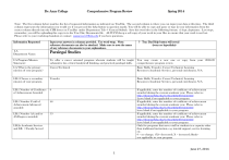 De Anza College Comprehensive Program Review Spring 2014 Note: The first column below matches the list of requested information as indicated on TracDat. The second column is where you can input your data at this time. The third column represents the information you would see if you pressed the help button (a question mark). You will be able to copy and paste or type in your information from the center column directly into the CPR boxes on TracDat under Department Tab -> General Subtab. Save this word doc in the following format: s14cpr_deptname. Last steps, remember, you will be uploading this copy in to the Trac Dat, Documents file. ALWAYS keep a soft copy of your work in your files to ensure that your work is not lost. Please refer to your workshop handout or contact: pappemary@fhda.edu if you have questions. Information Requested Input your answers in columns provided. Use word wrap. Note: reference documents can also be attached. Make sure to note the name of any reference documents in your explanations. ? Trac Dat Help button will reveal (sorry no hyperlinks) I.A Department Name: Paralegal Studies I.A Program Mission Statement: To offer a career oriented program wherein students will be taught substantive law, critical (analytical) thinking, and practical paralegal skills. You may create a new one or copy from your 2008-09 comprehensive program review. I.A What is the primary mission of your program? Career/Technical Basic Skills, Transfer. Career/Technical, Learning Resources/Academic Services, personal enrichment, N/A I.B.1 Choose a secondary mission of your program. Transfer Basic Skills, Transfer. Career/Technical, Learning Resources/Academic Services, personal enrichment, N/A I.B.1 Number of Certificates of Achievement Awarded 0 If applicable, enter the number of certificates of achievement awarded during the current academic year. Please refer to: http://deanza.fhda.edu/ir/AwardsbyDivision.html I.B.1 Number Certif of Achievement-Advanced awarded: 46 I.B.1 Number AA and/or AS Degrees awarded: 53 Leave blank if not applicable to your program If applicable, enter the number of certificates of achievement awarded during the current academic year. Please refer to http://deanza.fhda.edu/ir/AwardsbyDivision.html leave blank if not applicable to your program If applicable, enter the number of certificates of achievement awarded during the current academic year. Please refer to http://deanza.fhda.edu/ir/AwardsbyDivision.html leave blank if not applicable to your program Only for programs that serves staff or students in a capacity other than traditional instruction, e.g. tutorial support, service learning, etc. 0 = no change; (X)= decreased; X = increased; blank= not applicable to your program I.B.2a Academic Services and LR: # Faculty Served June 27, 2016 1 De Anza College Comprehensive Program Review I.B.2a Academic Services and LR: # Student Served I.B.2a Academic Services and LR: # Staff Served II.A.1-Growth and Decline of targeted student populations II.A.2 Trends in equity gap: II.A.3 Closing the student equity gap: II. A.4.a.Plan if success rate of program is below 60% II. A.4.b. Plan if success rate of ethnic group(s) is below 60% The overall success rate for targeted student populations has shown a steady increase from 2010 to 2013. Targeted success rates for 2011 were 72%, for 2012 74%, and for 2013 78%. All individual target groups except Filipino and Native Americans have shown an increase in success between 2011 and 2013 rates. Filipino rates declined from 90% to 85% while Native Americans declined from 83% to 69% over this period. The equity gap overall between targeted and non-targeted groups is above the goal of no greater than a 5% difference as the 2013 gap is 9%. While the gap is above the goal steady progress has been made in closing the gap. The gap in 2011 was 13%, 10% in 2012, and 9% in 2013. The largest gap is for Native Americans where the gap currently is 18%. This is an improvement over 2012 where the gap was 42%. However the gap in 2011 was only 2%. The numbers of students in this group is very small overall and has ranged from 19 to 5 to 9 in 2013. The success rate for targeted groups reported in the 2008-09 Comprehensive Program Review was 77% which is about what it is for 2013. In the 2008-09 Review it was stated that the greatest challenge our students faced was deficiencies in Basic English skills. The students presenting themselves to our program continue to display decreasing Basic English skills. Our plan in 2008-09 was to try and engage in an early intervention and referral to other campus programs and we have done this but it has not been possible to keep up with the continued decline in skills. Not Applicable Not Applicable Spring 2014 Only for programs that serves staff or students in a capacity other than traditional instruction, e.g. tutorial support, service learning, etc. 0 = no change; (X)= decreased; X = increased; blank= not applicable to your program Only for programs that serves staff or students in a capacity other than traditional instruction, e.g. tutorial support, service learning, etc. 0 = no change; (X)= decreased; X = increased; blank= not applicable to your program Briefly, address student success data relative to your program growth or decline in targeted populations (Latina/o, African Ancestry, Pacific Islander, Filipino) refer to the sites: (Program reviews 2008-09 through 2012-13 available at: http://deanza.edu/gov/IPBT/program_review_files.html ) Refer to http://www.deanza.edu/president/EducationalMasterPlan20102015Final.pdf , p.16. Briefly address why this has occurred. What progress or achievement has the program made relative to the plans stated in your program’s 2008 -09 Comprehensive Program Review, Section III.B, towards decreasing the student equity gap? See IPBT website for past program review documentation: http://deanza.edu/gov/IPBT/program_review_files.html If a rationale for your strategies was not stated in th