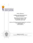 CREST Collaborative COORDINATED PROGRAM REVIEW REPORT OF FINDINGS Dates of Onsite Visit: November 17–19, 2015 Date of Draft Report: December 22, 2014 Date of Final Report: February 3, 2015 Action Plan Due: March 10, 2015 Department of Elementary and Secondary Education Onsite Team Members: Rhonda Mojkowski, Chairperson Timothy Gallagher Christine Romancewicz Mitchell D. Chester, Ed.D. Commissioner of Elementary and Secondary Education MASSACHUSETTS DEPARTMENT OF ELEMENTARY AND SECONDARY EDUCATION COORDINATED PROGRAM REVIEW REPORT CREST Collaborative SCOPE OF COORDINATED PROGRAM REVIEWS ......................................................................... 3 COORDINATED PROGRAM REVIEW ELEMENTS ......................................................................... 3 REPORT INTRODUCTION ..................................................................................................................... 6 DEFINITION OF COMPLIANCE RATINGS ........................................................................................ 9 LEGAL STANDARDS, COMPLIANCE RATINGS AND FINDINGS: ............................................. 10 SPECIAL EDUCATION .......................................................................................................................... 10 CIVIL RIGHTS AND OTHER RELATED GENERAL EDUCATION REQUIREMENTS............. 26 APPROVED PUBLIC DAY PROGRAM STANDARDS……………………………………. 33 MASSACHUSETTS DEPARTMENT OF ELEMENTARY AND SECONDARY EDUCATION COORDINATED PROGRAM REVIEW REPORT CREST Collaborative SCOPE OF COORDINATED PROGRAM REVIEWS The Program Quality Assurance unit (PQA) of the Massachusetts Department of Elementary and Secondary Education oversees compliance with education requirements through its Coordinated Program Review System (CPR), through public school district, charter schools, collaborative, and private special education school program reviews, as well as reviews of certain Special Education in Institutional Schools Settings programs. The collaborative reviews cover selected requirements in the following areas: Special Education (SE) selected requirements from the federal Individuals with Disabilities Education Act (IDEA-2004); the federal regulations promulgated under that Act at 34 CFR Part 300; M.G.L. c. 71B, and the Massachusetts Board of Education’s Special Education regulations (603 CMR 28.00), as amended effective March 1, 2007. Civil Rights Methods of Administration and Other General Education Requirements (CR) selected federal civil rights requirements, including requirements under Title VI of the Civil Rights Act of 1964; the Equal Educational Opportunities Act of 1974; Title IX of the Education Amendments of 1972; Section 504 of the Rehabilitation Act of 1973, and Title II of the Americans with Disabilities Act of 1990, together with selected state requirements under M.G.L. c. 76, Section 5 as amended by Chapter 199 of the Acts of 2011and M.G.L. c. 269 §§ 17 through 19. selected requirements from the Massachusetts Board of Education’s Physical Restraint regulations (603 CMR 46.00). selected requirements from the Massachusetts Board of Education’s Student Learning Time regulations (603 CMR 27.00). various requirements under other federal and state laws. Approved Public Day Program Standards selected requirements from the Massachusetts Board of Elementary and Secondary Education Special Education regulations from 603 CMR 28.09. selected requirements from the Massachusetts Program and Safety Standards for Approved Public or Private Day and Residential Special Education School Programs 603 CMR 18.00 COORDINATED PROGRAM REVIEW ELEMENTS Team: Depending upon the size of and the number of programs to be reviewed, a team of two or more Department staff members, conducts a Coordinated Program Review. Timing: Each collaborative is scheduled to receive a Coordinated Program Review every six years and a mid-cycle follow-up visit three years after the Coordinated Program Review. Criteria: The criteria PQA uses for monitoring the collaborative programs are included in the Collaborative Information Package, along with citations to state and federal statutes and Massachusetts Department of Elementary and Secondary Education – Program Quality Assurance Services CREST Collaborative Coordinated Program Review Report – February 3, 2015 Page 3 of 52 regulations. These criteria cover the areas of special education and civil rights necessary to determine that special education and civil rights are being provided in accordance with applicable state and federal laws and/or regulations. Methods: Methods used in reviewing programs include: Report: Review of documentation about the operation of the collaborative programs. Interviews of administrative, instructional, and support staff across all selected programs and grade levels. Interviews of parent advisory council (PAC) representatives (if the collaborative has a PAC) and other interviews as requested by other parents or members of the general public. Review of student records for special education. The Department selects a representative sample of student records for the onsite team to review, using standard Department procedures, to determine whether procedural and programmatic requirements have been implemented. Surveys of parents of students with disabilities whose files are selected for the record review, as well as the parents of an equal number of other students with disabilities, are sent a survey that solicits information regarding their experiences with the collaborative. Observation of classrooms and other facilities. The onsite team visits a sample of classrooms and other school facilities used in the delivery of programs and services to determine general levels of compliance with program requirements. Preparation: At the end of the onsite visit, the onsite team will hold an informal exit meeting to summarize its preliminary thoughts for the collaborative director and an
