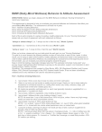 1 BMW (Body-Mind Wellness) Behavior & Attitude Assessment DIRECTIONS: Before you begin, please print the BMW Behavior & Attitude “Scoring Worksheet” to record your responses. This assessment is designed to help you evaluate your personal attitudes and behaviors that affect your overall Body-Mind Wellness. The assessment is divided into 4 parts: Part 1: Nutrition & Eating Behaviors Part 2: Body Acceptance & Non-Dieting Attitudes & Behaviors Part 3: Exercise & Physical Activity Behaviors Part 4: Emotional & Mental Health Attitudes & Behaviors Each of the 4 parts consists of a series of positive, healthy statements. On your “Scoring Worksheet,” please rate your level of agreement with each statement as follows: “always or almost always” (i.e. “I always do this or feel this way”) Worth 2 points “sometimes” (i.e. “I sometimes do this or feel this way”) Worth 1 point “rarely or never” ( i.e. “I rarely do this or feel this way”) Worth 0 points When you’re done, please add up your total points for each part on your “Scoring Worksheet.” The goal is to move towards the highest possible number of final points in each of the 4 parts. In other words, you’re trying to attain all the positive, healthy attitudes and behaviors listed in the assessment in order to attain optimal Body-Mind Wellness. By completing this assessment at the beginning and end of the semester, you can evaluate your personal progress towards this goal. Keep in mind that lasting, meaningful changes take time! This semester will simply “jump-start” your journey toward optimal Body-Mind Wellness by giving you the education, support, and motivation to start making positive, healthy changes. Disclaimer: This assessment was created by Sheri Barke, MPH, RD (Registered Dietitian) and Frances Willson, PhD (Clinical Psychologist) of the COC Student Health Center. It has not been scientifically validated and is only intended to be used for educational purposes. Part 1. Nutrition & Eating Behaviors 1. I eat at least 3 times every day to keep my body and mind well-fueled. 2. I listen to my body and eat mostly to satisfy physical hunger. Rarely do I eat or keep eating for 3. 4. 5. 6. 7. recreational or emotional reasons (i.e. eating when bored, sad, lonely, stressed, angry, just because food is there and it tastes good, etc.). My meals are generally well-balanced (i.e. each meal generally includes a vegetable/fruit + a grain/starch + a protein-rich food). I eat at least 2 different vegetables a day (totaling at least 2 cups). I eat at least 2 different fruits a day (totaling at least 2 cups). NOTE: No more than 1 cup of this comes from 100% fruit juice, unless I have very high energy needs and need the extra concentrated calories. I eat at least 3 ounces of 100% whole grains per day. NOTE: 1 oz. is about 1 slice of 100% whole wheat bread, ½-1 cup of 100% whole grain breakfast cereal, or ½ c. brown/wild rice, whole wheat pasta/cous cous, or cooked oats. I consume at least 3 servings of calcium-rich foods per day or take a calcium supplement to provide a total of 1000 mg calcium daily. NOTE: 1 serving provides about 300 mg calcium. Examples include…1 c. milk or fortified soy milk or OJ, 1 c. yogurt or pudding, 1.5 oz. cheese, 1.5 c. cottage cheese, frozen yogurt, or tofu, 1.5 c. bok choy or turnip greens, 3 c. broccoli, or 1 fortified bar, beverage, or cereal that provides ~30% DV calcium per serving. 2 8. Most of the protein-rich foods that I choose are very low in saturated fats. Specifically, I choose… o o Fat free or 1% low fat milk products (I limit whole fat cheese to < 1 oz. per day). Skinless poultry and fish (I limit red meat - including beef, pork, and lamb - to < 3 meals total per week). o Tofu and other soy products, beans, nuts and nut butters. 9. Most of the fat I consume comes from oily fish, nuts, avocados, and canola or olive oils (rich in monounsaturated or omega 3 fats). I limit solid fats like butter, margarine, shortening, lard, and partially hydrogenated oils (and foods that contain them) since these are high in saturated/trans fat. 10. I limit sodium by avoiding the salt shaker, focusing on more fresh (as opposed to canned, boxed, frozen, or “fast” foods), and reading food labels. 11. I am sensible with “fun foods & beverages” – I eat or drink no more than 1 small serving per day, if that. NOTE: A “fun food or beverage” is something that tastes good but doesn’t deliver a lot of nutrients, just “empty calories.” Examples include sugary or greasy refined foods (candy, cookies, chips, French fries, sugary cereals/bars, frozen desserts) OR high calorie drinks (sodas, fruit punch, gourmet coffee/tea drinks, alcoholic beverages). 12. I stay well-hydrated (urine is pale yellow like lemonade, not dark like apple juice) by drinking plenty of water. 13. I am sensible with caffeine (no more than 100-300 mg a day, depending on personal tolerance). NOTE: 16 oz. Starbucks coffee = 300 mg, 1 NoDoz/Vivarin = 200 mg, 16 oz. Starbuck’s café latte/mocha/cappuccino/frappuccino/2 shots espresso = 130 -180 mg, 8 oz. coffee = 100 mg, 8 oz. Red Bull/“energy drink” = 80 mg, 8 oz. green/black tea = 40 mg, 12 oz. cola = 40 mg, 8 oz. hot chocolate = 10 mg. 14. If I drink alcohol, I am sensible about it. Specifically, I drink no more than 1 drink per day (or occasion) for a woman; no more than 2 drinks per day (or occasion) for a man. NOTE: 1 drink = 12 oz. beer, 5 oz. wine, or 1.5 oz. shot hard liquor 15. I take one daily multiple vitamin/mineral supplement per day (or regularly consume fortified food/beverage products as part of my balanced eating plan). NOTE: If I’m a man or post-menopausal women, I choose a supplement without iron or no more than 10 mg iron. If I am a pre-menopausal woman, I choose a supplement with 100% DV iron (18 mg). Part 2. Body Acceptance & Non-Dieting Attitudes & Behaviors 1. I pay attention to my body and my appearance, but these thoughts only oc