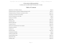 Contribute and Accessible Syllabi Workshop How To Gui de – College of Humanities COLLEGE OF HUMANITIES Contribute and Accessible Syllabi Workshop How To Guide Table of Contents Introduction to Your Website’s Structure Page 2-3 Working From Home or Wirelessly: Installing and Setting Up VPN Page 4-11 Working From Home or Wirelessly: Accessing Your Udrive Page 12-13 Connecting to Your Website with Contribute Page 14-18 Top Three Checkpoints for a New Page Page 19 Creating a New Syllabus Page 20 Editing a Page Page 21-22 Publishing a Page Page 23-25 Inserting a Global Link Page 26-27 Creating a Web Link Page 28-30 Inserting a File Attachment From Your Computer Page 31-33 Creating an E-mail Link Page 34 Creating a List Page 35 Inserting an Image Page 36-38 Creating Section Headings Page 39 Creating Accessible Tables Page 40 Using the Rollback Feature Page 41-42 Editing META Data Page 43-44 Validating a Page Page 45-47 Page 1 Contribute and Accessible Syllabi Workshop How To Gui de – College of Humanities Introduction to Your Website’s Structure Reference: Udrive Structure Handout Each CSUN user has a special storage space called the “Udrive” which is allotted to them by Campus IT. Your Udrive sits on a server on campus and is accessible by any computer which is part of the CSUN network. Instructions on accessing your Udrive are in the sections below. Default URL: http://www.csun.edu/~sn5777/ Proposed URL: http://www.csun.edu/faculty/stephanienguyen/ udrive Your website is located in a special folder within your Udrive called “public_html.” Any files placed inside the public_html folder can be publically accessed through the internet. public_html index.html syllabi Inside of your public_html folder you will find another set of folders which are used to organize and house all of your website’s files. Throughout the workshop you will use your Udrive and its public_html structure to create an online syllabus and homepage. It is very important that you utilize this structure effectively, and no not place your files haphazardly. images documents templates cssfiles Rev. 7/29/08 Page 2 Contribute and Accessible Syllabi Workshop How To Gui de – College of Humanities Introduction to Your Website’s Structure cont. If you have already completed the workshop and are working from your office, feel free to skip to any of the topics in this guide. If you are working from home or from your laptop, it is important that you read the following two sections before continuing on to the others. Reference: Udrive Structure Handout cont. 1. Contribute How To Guide: http://www.csun.edu/~hmnsys/ 2. Resources for building accessible web pages: http://www.csun.edu/accessibility/ 3. Download html templates: http://www.csun.edu/ati/ 4. Software: https://www.csun.edu/itr/downloads/ 5. Syllabus preparation : http://www.csun.edu/facdev/newFaculty_pedagogy_syllabusPrep.htm Bio Page = index.html = Home Page Bio Page Courses Course 1 SYLLABUS 1 Course 2 SYLLABUS 2 Rev. 7/29/08 Page 3 Department Contribute and Accessible Syllabi Workshop How To Gui de – College of Humanities Working From Home or Wirelessly: Installing and Setting Up VPN If you will be working offsite, you will need to launch VPN in order to access your U Drive. Enter your CSUN username and password Download VPN software 1. Download the VPN software from campus IT’s software download website: https://www.csun.edu/itr/downloads/inde x.cgi 2. Log in with your CSUN user ID and password (Figure 1). Figure 1 3. Select Cisco Systems Virtual Private Network Client under Windows. Click here to download VPN 4. Click Download (Figure 2). Figure 2 Page 4 Contribute and Accessible Syllabi Workshop How To Gui de – College of Humanities Working From Home or Wirelessly: Installing and Setting Up VPN cont. 5. A screen will pop up asking you to either run or save this file, click on Save (Figure 3). Click here to save 6. Select a destination on your computer where you would like to store the VPN software (Figure 4). Figure 3 Click here to save Figure 4 Page 5 Contribute and Accessible Syllabi Workshop How To Gui de – College of Humanities Working From Home or Wirelessly: Installing and Setting Up VPN cont. Installing VPN 1. Double click the VPN icon at the location where you saved it on your computer. 2. A message will pop up asking you to run this software or cancel it. Select “Run” (Figure 1). Click here to start installer 3. A win zip self extractor window will open, then select the “Unzip” button (Figure 2). Figure 1 Click here Figure 2 Page 6 Contribute and Accessible Syllabi Workshop How To Gui de – College of Humanities Working From Home or Wirelessly: Installing and Setting Up VPN cont. 4. Click “Next” on the screen which says Welcome to the Install shield Wizard for VPN Client (Figure 3). Click “Next” 5. You will now see a screen which lists out the License Agreement. Read the agreement and click “Yes” (Figure 4). Figure 3 6. Click “Next” to start the installation of the VPN software (Figure 5). Click “Yes” Figure 4 Click “Next” Figure 5 Page 7 Contribute and Accessible Syllabi Workshop How To Gui de – College of Humanities Working From Home or Wirelessly: Installing and Setting Up VPN cont. 7. The next screen tells you where the VPN software will be stored on your computer. Click the “Next” button (Figure 6). 8. The VPN software will now be installed on your computer. 9. After the installation is complete, you will see a screen asking you to restart your computer. Click the “Finish” button on this screen (Figure 7). Click “Next” Figure 6 After your computer has restarted, VPN is now ready to be used. Click “Finish” Figure 7 Page 8 Contribute and Accessible Syllabi Workshop How To Gui de – College of Humanities Working From Home or Wirelessly: Installing and Setting Up VPN cont. Setting Up a New Account on VPN 1. Click on the “All Programs” option on the Start menu. Select “Cisco Sys