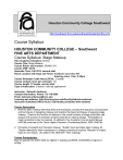 Houston Community College Southwest http://southwest.hccs.edu/southwest/academics/fine-arts Course Syllabus HOUSTON COMMUNITY COLLEGE – Southwest FINE ARTS DEPARTMENT Course Syllabus: Stage Makeup HCC Academic Discipline: Drama Course Title: Stage Makeup Course Rubric and number: DRAM 1341 Course CRN: 32174 Semester Term: Fall 2012, second start Room Location with Days and Times: Stafford Center Rm 108 dressing room 11am -2:45pm Course Semester Credit Hours (SCH): 3 credits Course contact hours per semester: 64 Course length: 12 weeks, second start Type of Instruction: 3 lecture / with lab applications Instructor: Deborah Anderson Contact Information: Phone 713-718-6360 Email: deborah.anderson@hccs.edu Learning web address: http://learning.hccs.edu/faculty/deborah.anderson Instructor Scheduled Office Hours: Individually scheduled with students Course Description 1. Note the basic makeup technical skills and techniques: process the sequence of procedures and techniques in designing makeup and practice the basic techniques of applying stage makeup. Examine the function of makeup in the overall scheme of stage production and analyze the process of character analysis essential to makeup design. Participation in major productions may be required. As defined in the Academic Course Guide Manual (AGCM) produced by the Texas Higher Education Coordinating Board, 2009 (THECB) 2. Principles of straight and character makeup. Student must purchase basic makeup kit. Theatre attendance and/or assistance in college productions required. Required of majors. Open to non-majors. (As listed in the 2009-2011 HCC Catalog.) Course Prerequisites: Must be placed into GUST 0342 (or higher) in reading and ENGL 0310/0349 (or higher) in writing Course Goal: To provide the student with an overview of the basic technical skills related to makeup so that the student will be equipped to intelligently solve concerns of design and application in theatrical makeup situations. Course Student Learning Outcomes: 1. Identify and outline basic makeup techniques and procedures. (Level 1) 2. Comprehend the importance of makeup in the interpretive process of theater and television. (Level 2) 3. Demonstrate the value of professional standards and efficient procedures in the creation of an effective theatre/film makeup endeavor. (Level 3) 4. Display the necessary skills for the translation of a schematic design to an effective creation of character makeup. (Level 3) 5. Create a character “look” by using analysis and proper design/application of makeup. (Level 5) Course Student Learning Objectives: 1. Attend all classes and attend two (2) theatre events 2. Be an active participant during in-class discussions and activities 3. Complete all reading assignments and complete all written assignments: The Makeup Morgue, Makeup Schematics, Subject research, makeup observations, etc. 4. Create, design, and complete planned and developed makeup schematics, with Resource material, and actual applications with hair and costume (photographed) 5. Evaluate/grade – listen to and view yourself and other classroom actors using a ten item evaluation form Core Curriculum: This course fulfills the following core intellectual competencies: reading, writing, speaking, listening, critical thinking and computer literacy. A variety of academic experiences are used to develop these competencies. Reading: Reading at the college level means having the ability to understand, analyze and interpret a variety of printed materials: books, articles, and documents. Writing: Writing at the college level means having the ability to produce clear, correct, and coherent prose adapted to a specific purpose, occasion, and audience. In addition to knowing how to use correct grammar, spelling, and punctuation, students should also become adept with the writing process, including how to determine a topic, how to organize and develop it, and how to phrase it effectively for their audience. These abilities are acquired through practice and reflection. Speaking: Effective speaking is the ability to communicate orally in clear, coherent, and persuasive language appropriate to purpose, occasion, and audience. Listening: Listening at the college level means having the ability to understand, analyze, and interpret various forms of spoken communication. Critical Thinking: Critical thinking embraces methods for applying both qualitative and quantitative skills analytically and creatively to subject matter in order to evaluate arguments and to construct alternative strategies. Problem solving is one of the applications of critical thinking used to address an identified task. Computer Literacy: Computer literacy at the college level means having the ability to use computer-based technology in communicating, solving problems, and acquiring information. Core-educated students should have an understanding of the limits, problems, and possibilities associated with the use of technology and should have the tools necessary to evaluate and learn new technologies as they become available. HCC Calendar: Second Start 12 week session Classes Begin Official Day of Record Holidays and Breaks Priority Deadline to file for graduation Last day to drop classes with a grade of W Instruction ends Final examination ( December 10-16; Monday-Sunday) Week Date Projected: Week 1 Sept. 28 Saturday, September 22 Tuesday, October 2 Wed., Nov.21; No NIGHT Classes Nov. 22-25; Thanksgiving Monday, October 15 Monday, November 12; 4:30 pm Sunday, December 9 Dec. 14th – 11 am Lectures / Topics / Assignments / Projects / Quizzes / Exams Week 2 Oct. 5 Class introduction, syllabus, calendar, curriculum, objectives, make-up kit / supplies, Homework: Print out syllabus, find front and side view of skull, buy Makeup and find book Complete shopping for makeup supplies, Secure the textbook (though you will not need it for this class) ~ Lecture on Facial anatomy, Light and shade (Work sheet), Color (working with your ma
