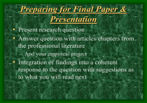 Preparing for Final Paper &