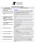 2015 FAFSA HOW-TO SHEET Step to Complete 1. CREATE a pin number- one for the student and a pin for one parent. 2. START the FAFSA (It opens January 1st every year. Do it early. Funds are awarded first come, first served. 3. TROUBLE answering a question on the FAFSA? 4. Be very careful entering your name, date of birth, and social security number. 5. If you are male between 18 and 25 years old, register for Selective Service on the FAFSA! 6. INDICATE APPROPRIATE High School completion status. 7. What GRADE LEVEL will I be in 201516? 8. What DEGREE am I pursuing? 9. Am I interested in WORK STUDY? 10. Entering your HIGH SCHOOL 11. SELECT all of the schools you plan to apply to within the next school year. 12. WHERE AM I LIVING NEXT YEAR? Notes, Links & Information www.pin.ed.gov www.fafsa.gov. Your parent(s) should try to complete their income taxes before doing the FAFSA but if income taxes are not done, parents can still complete their form temporarily using estimated tax figures. You must go into the FAFSA and make corrections soon after taxes are filed if you use estimates. Look at the Help & Hints bar on the right side of the FAFSA form. If you click a box, it will give you information on how to complete that specific step. STILL STUMPED? If you need further assistance, click the Contact Us icon, then Chat with a Live Agent icon. This will appear in the icon bar within the FAFSA form on every page. An error in either your name, date of birth, or social security number can lead to long & significant delays in processing your FAFSA & Financial Aid awards at the colleges! In order to be eligible for financial aid from the government, men between ages 1825 must register for Selective Service. On the FAFSA, if the applicant fits the criteria for Selective Service, they can check a box indicating they want to be signed up. You may also register at www.sss.gov. Even if you register here, it never hurts to register on the FAFS A as well! If you obtained a High School diploma, note it! If you received a GED, make sure you indicate this on your FAFSA. One way is not better than the other but it does matter if you mark the right one or not! In the student demographics section, it will ask what grade level the student will be next year. HS seniors (even Running start or with college credits) will select ‘never attended college/1st year’. Returning Students- it is based on credit status- not the actual number of years in school. If you are going to a university, it will usually be “1st bachelors’ degree” for HS seniors. If you are stating at a community or technical college, it is important to know the type of program you are entering (technical, certificate, transfer degree, etc.) to select the right option. This choice can affect the amount of financial aid you will qualify for. In the student demographics section, you will be asked if you are interested in being considered for Work Study, a type of financial aid you do not pay back after school! You must say YES and indicate you are interested to be considered! Just a note that the names entered on the FAFSA are specific- meaning they may not be what the school is commonly referred to. In the event you type in a school it does not recognize, if you include city/state, it will pull up all schools in the area for you to make a selection from. You can list up to 10 schools on the FAFSA. You are not committing to each schooljust getting in line with their Financial Aid departments. Each school has a school code for faster entry- TCC’s is 003796. (hint: you should apply to colleges before adding them to the FAFSA to avoid lengthy delays in your college admissions!) On the FAFSA, for each college you select, you must list your planned living arrangement (on-campus, off-campus, or with parent). Not all colleges have all living options for their campus (i.e. TCC & most 2-years do not have on-campus housing). 1 13. DEPENDENCY STATUSDo I have to put my parent’s tax information in? 14. Were you found to be an INDEPENDENT STUDENT? 15. My parents are DIVORCED. Which one do I claim on my FAFSA? 16. HOUSEHOLD SIZE 17. TAX STATUS 18. To input tax information using the IRS DATA RETRIEVAL TOOL 19. If I don’t file taxes/ get other income, WHERE DO I REPORT IT? 20. When there is no monetary value for an item in the Financial Information Section, enter a zero (0). DO NOT LEAVE AN ITEM BLANK! 21. The STUDENT must sign the FAFSA 22. ONE parent must sign the FAFSA 23. Print a copy of the CONFIRMATION PAGE at the end! 24. Check your email FREQUENTLY! You will be asked a series of questions in the FAFSA regarding age, if you have dependents/children, were you in foster care/emancipated, etc. At the end of these questions, the FAFSA will then declare you independent (you do not have to list your parental tax information) or dependent (you do have to report your parental tax information). Generally, students under age 25 who are not married, not parents, and live at home will have to report their parent’s tax information. Born before January 1st, 1992? You’re independent. If you were deemed independent after answering the series of questions in the FAFSA, the colleges/universities you apply to will ask you to verify your situation (homelessness, no contact with parents, etc.). Be prepared to have documentation of what qualifies you for the independent student status. If your parents are divorced, you will only have to provide the information about the parent you lived with the majority of the past year. If you lived with both parents for an equal amount of time last year, provide information about the parent who provided the most financial support to you. If that parent has remarried, you report your parent’s status as “married” on the FAFSA and enter tax information for your parent and your step parent. When completing items about household size, read instructions carefully. Do not include parents in the number of students that will be in the hou