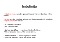 • Indefinite nouns: are the general noun or not yet identified in the