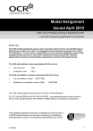 Model Assignment Issued April 2010 OCR Level 2 Principal Learning in Engineering H810 Unit F550: Engineering applications of computers Please note: This OCR model assignment may be used to provide evidence for the unit identified above. Alternatively, centres may ‘tailor’ the assignment within permitted parameters (see ‘Notes for Presenters’). It is the centre’s responsibility to ensure that any adaptations made to this assignment allow learners to meet all the assessment criteria and provide sufficient opportunity for learners to demonstrate achievement across the full range of marks. The OCR administrative codes associated with this unit are: Unit entry code F550 Certification code H810 The QCA accreditation numbers associated with this unit are: Unit accreditation number Qualification accreditation number (QAN) M/501/1885 500/2399/8 This OCR model assignment remains live for the life of this qualification. ALL OF THIS MATERIAL MAY BE PHOTOCOPIED. Any photocopying will be done under the terms of the Copyright Designs and Patents Act 1988 solely for the purposes of assessment. This example assignment has been developed by OCR as part of a QCDA funded project and has been reviewed by practitioners, representatives of sector and awarding organisations and QCDA. © OCR 2010 1 OCR Level 2 Principal Learning in Engineering Contents Page Number(s) LEARNER INFORMATION Model Assignment This section contains the assignment background which learners will need to be familiar with in order to complete the tasks. 3 4 Tasks This section contains all the tasks learners must complete before submission for assessment. 5-6 PRESENTER INFORMATION General guidance on using this model assignment This section provides general guidance to centre staff on the preparation and completion of the assignment. 7 8-9 Instructions for controlled assessment of this model assignment This section provides information on how the controls for the unit are applied to this model assignment. It is not intended for use by learners. 10 - 13 Additional guidance on managing the assessment This section provides additional guidance on managing the assessment. It is not intended for use by learners. 14 Evidence summary This section provides a summary of the evidence it is expected the learner will produce for this model assignment 15 2 Model Assignment – Issued April 2010 Unit F550 – Engineering applications of computers Model Assignment: Learner Information OCR Level 2 Principal Learning in Engineering Unit F550: Engineering applications of computers © OCR 2010 3 OCR Level 2 Principal Learning in Engineering Model Assignment brief for the learner: Computers in engineering Virtual Engineering Productions (VEP) A well known children’s television show has asked a number of well thought of engineering establishments in your area to research and produce information on how children’s toys are manufactured, controlled, quality checked and dispatched by computers for a soon to be screened report on toys by you at VEP. The centre has asked your group to produce a script and story board for the program producer showing how computers have been involved in the production of the toys being investigated, from: Design and Prototyping Manufacturing process Programming control circuits Process and ordering components Checked and packed Pricing and barcodes To the communication of product data around the world Also to make the show more interactive they would like you to analyse and disassemble one of the toys containing a microprocessor, so that a simulation of its functions can be demonstrated by a Programmable Interface Controller or more commonly referred to a PIC chip. Read through the scenario and all of the tasks carefully, so that you know what you will need to do to complete this assignment. 4 Model Assignment – Issued April 2010 Unit F550 – Engineering applications of computers OCR Level 2 Principal Learning in Engineering Tasks Task 1: Analyse the child’s product Assessment criteria 2.1, 2.2, 2.3, 2.4 and 2.5 Analyse the control circuit in a children’s toy and replicate it using a PIC chip. You will need to: select a battery powered children’s toy containing an embedded microprocessor describe the operation of the toy using flow charts or other graphical methods disassemble and photograph the product to identify the inputs and outputs simulate the function or part of the toys function with a PIC chip. Your evidence must include: written analysis of the control system (this should cover AC 2.1) details of the range of inputs and outputs used (this should cover AC 2.2 and AC 2.3) simulation of the control system (this should cover AC 2.2, 2.3, 2.4 and 2.5). Task 2: Produce script/storyboard Assessment criteria 1.1 to 1.4, 3.1, 3.2, 3.3, 3.4 3.5 and 4.1 Produce script/storyboard about the use of computers in engineering from design of chosen product to manufacture and finally to market. You will need to: understand how computers are used in design, production, stock and financial control throughout engineering research the relevant expert systems used for problem solving and maintenance investigate the use of data communications during design, manufacture and maintenance of your chosen product. Your evidence must include: explanation of how computers are used in all of manufacturing from CAD to CAM and JIT (this should cover AC 1.1, 1.2, 1.3 and 1.4) evidence of using an expert system to solve problems (this should cover AC 3.1, 3.2, 3.3, 3.4 and 3.5) details of the use of computer based communications systems to exchange data during design, manufacture and maintenance of the toy (this should cover AC 4.1). Model Assignment – Issued April 2010 Unit F550 – Engineering applications of computers 5 Model Assignment: Presenter Information OCR Level 2 Principal Learning in Engineering Unit F550: Engineering applications of computers © OCR 2010 6 OCR Level 2 Principal Learning in Engineering General guidance on usin