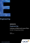 © OCR 2008 OCR GCSE Engineering (Linear 2012) Contents Introduction 3 Sample Scheme of Work: OCR GCSE Engineering J322 J344 Unit A621 1B: Engineering a Product 5 Sample Lesson Plan: OCR GCSE Engineering J322 J344 Unit A621 1B: Engineering a Product 2 of 15 14 GCSE Engineering (Linear 2012) Introduction Background OCR has produced a summary brochure, which summarises the changes to Engineering. This can be found at www.ocr.org.uk along with the new specification. In addition and in response to reforms announced by the Government and in response to Ofqual mandated changes to GCSEs, unitised assessment of this qualification is being replaced by linear assessment from September 2012. This means that candidates commencing a two year course from September 2012 will take all of their GCSE units at the end of the course in June 2014. In order to help you plan effectively for the implementation of the specification we have produced these Schemes of Work and Sample Lesson Plans for Engineering. These Support Materials are designed for guidance only and play a secondary role to the Specification. Our Ethos OCR involves teachers in the development of new support materials to capture current teaching practices tailored to our new specifications. These support materials are designed to inspire teachers and facilitate different ideas and teaching practices. Each scheme of work and sample Lesson Plans are in Word format to be used as a foundation to build upon and amend the content to suit your teaching style and students’ needs. The scheme of work and sample Lesson Plans provide examples of how to deliver these units and suggested teaching hours which could be applicable to your teaching. The Specification is the document on which assessment is based and specifies what content and skills need to be covered in delivering the course. At all times, therefore, this Support Material booklet should be read in conjunction with the Specification. Any clarification should be found in the Specification. © OCR 2009 GCSE Engineering (Linear 2012) 3 of 15 A Guided Tour through the Scheme of Work = Innovative Teaching Idea This icon is used to highlight exceptionally innovative ideas. = ICT Opportunity This icon is used to illustrate when an activity could be taught using ICT facilities. 4 of 15 GCSE Engineering (Linear 2012) Sample GCSE Scheme of Work OCR GCSE ENGINEERING J322 J344 UNIT A621 1B: ENGINEERING A PRODUCT SUGGESTED 50 TEACHING HOURS TIME TOPIC TOPIC OUTLINE SUGGESTED TEACHING AND HOMEWORK ACTIVITIES ENGINEERING A PRODUCT SUGGESTED RESOURCES POINTS TO NOTE Unit Overview: Candidates will select a customer design brief from a list issued by OCR in the Engineering GCSE specification. Candidates are required to analyse the customer design brief, and engineer and evaluate the selected solution. They will also present their selected idea. Portfolio evidence can be submitted on paper or electronically. All electronic evidence must be presented in a format that matches the requirements outlined in Appendix D of the specification: Guidance for the Production of Electronic Controlled Assessment. 1B Engineering a Product (Controlled Assessment) In this unit, the candidate will: Analyse customer design briefs for engineered products Candidates should be able to: provide a detailed and justified analysis of the Acquisition of Practical Skills: 30 hours which should consist of a series of short, highly focused “teaching by demonstration activities” with immediate students “hands on” practice activities. It is not important that the practical activities result in the production of an engineered product or = Innovative teaching idea GCSE Engineering (Linear 2012) The suggested 50 teaching hours assumes some previous knowledge, understanding and working with a range of engineering materials and engineering processes and also with the design process. Previously taught and practised activities should include: Freehand sketching both 2D & 3D orthographic projections isometric projection other engineering drawing styles such as exploded which suit the centre needs annotation analysis writing and using a design specification justification a range of marking out skills a range of practical making skills a range of finishing skills This is a Controlled Assessment Unit which means that a High level of control has to be placed on the Task Setting, a Medium level of control on the task taking and a Medium level of control on the task marking. Task setting: Candidates should select one of the products from the specification, list as a starting point for the controlled assessment project, When analysing the product they will need to identify two similar products that have been subsequently developed using modern technology = ICT opportunity 5 of 15 Sample GCSE Scheme of Work OCR GCSE ENGINEERING J322 J344 UNIT A621 1B: ENGINEERING A PRODUCT SUGGESTED 50 TEACHING HOURS TIME TOPIC TOPIC OUTLINE SUGGESTED TEACHING AND HOMEWORK ACTIVITIES customer brief produce and fully apply a justified design specification part of a product but that the process is experienced, understood and recorded by the student. Develop design solutions for engineered products Candidates should be able to: develop a wide range of annotated design ideas and use appropriate engineering drawings to current industry standards present and fully justify SUGGESTED RESOURCES POINTS TO NOTE evaluation organisational skills and presentation skills In this way, assuming that the demonstration last no longer than 15 minutes with 45 minutes student activity, some 30+ processes can be covered or reinforced in a relatively short period of time. Homework – Immediate record making: The write up of the lessons individual practical activity using either sketches and notes, photos of key stages preprinted on a worksheet with space for students comments or students fully taking responsibility of recording their practical activity using digital technology and then fully 