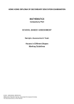 HONG KONG DIPLOMA OF SECONDARY EDUCATION EXAMINATION MATHEMATICS Compulsory Part SCHOOL-BASED ASSESSMENT Sample Assessment Task Houses in Different Shapes Marking Guidelines 教育局 課程發展處 數學教育組 Mathematics Education Section, Curriculum Development Institute The Education Bureau of the HKSAR Assessment Scale The assessment scale for tasks on Problem-solving is shown in the following table. Level of Performance Very good Good Fair Weak Marks Mathematical Knowledge and Problem-solving Skills 13–16 The student demonstrates a complete understanding of the underlying mathematical knowledge and problem-solving skills which are relevant to the task, and is consistently competent and accurate in applying them in handling the task. Typically, the student is able to formulate a correct strategy, carry out the strategy and demonstrate a complete understanding of the significance and possible limitations of the results obtained. 9–12 The student demonstrates a substantial understanding of the underlying mathematical knowledge and problem-solving skills which are relevant to the task, and is generally competent and accurate in applying them in handling the task. Typically, the student is able to formulate a correct strategy and attempts to carry out the strategy for completing the task. 5–8 The student demonstrates a basic understanding of the underlying mathematical knowledge and problem-solving skills which are relevant to the task, and is occasionally competent and accurate in applying them in handling the task. Typically, the student has a basic understanding of the task and is able to formulate a correct strategy for solving the task. 1–4 The student demonstrates a limited understanding of the underlying mathematical knowledge and problem-solving skills which are relevant to the task, and is rarely competent and accurate in applying them in handling the task. Typically, the student has a bare understanding of the task and can only attempt to complete the simplest part of the task. Marks Mathematical Communication Skills 4 The student communicates ideas in a clear, well organised and logically true manner through coherent written/verbal accounts, using appropriate and correct mathematical presentation to express, interpret and critically review the results obtained. 3 The student is able to communicate ideas properly through written/verbal accounts, using appropriate forms of mathematical presentation such as mathematical formulae or geometric facts. 2 The student is able to communicate basic ideas with limited success in using appropriate mathematical terms and terminology. 1 The student attempts to communicate ideas using some basic forms of mathematical presentation such as symbols, notations, diagrams, tables, graphs etc., but has little success in doing so. The full mark of a SBA task on Problem-solving submitted should be scaled to 20 marks, of which 16 marks are awarded for the mathematical knowledge and problem-solving skills while 4 marks are awarded for the communication skills. Teachers should base on the above assessment scale to design SBA tasks for assessing students with different abilities and to develop the marking guidelines. Houses in Different Shapes_Marking Guidelines 2 Marking Guidelines Solution Performance Part A 1. (a) (b) (c) The area of DEF 1 x x sin 60 2 3 2 2 x m 4 Evidence: The solutions In order to make the area of DEF greatest, E must be the mid-point of AB and F must be the mid-point of CB. Then, EF = 5 m. The capacity of the building DEFGHI 3 2 5 3 4 75 3 3 m 4 Weak: Attempt the questions but the working is incorrect Fair: Some mistakes are found in the working and not all the answers are correct Good: All answers are correct but minor mistakes are found in the working Very good: All answers and working are correct ___________________________________________________________________________________________________________ Part B 2. Evidence: 1. Locations of D, E, F and G 2. The shape of the figure B (a) Some locations and the shape of the figure are incorrect. Fair: All locations are correct but inaccurate shape of the figure Good: Correct locations of D, E, F and G and accurate shape of the figure, but wrong labelling F E A Weak: C G D Very good: Correct locations of D, E, F and G and accurate shape of the figure ___________________________________________________________________________________________________________ (b) Let DE be x m. Then AD 10 x m. 2 Evidence: The solutions x 10 x 2 3 10 x 2 x tan 60 Weak: Attempt the question but the working is incorrect Fair: Some mistakes are found in the working and the answer is incorrect Good: The answer is correct but minor mistakes are found in the working 10 3 x 2 3 10 3 2 3 Hence, the length of each side of DEFG = 10 3 2 3 m Very good: The answer and working are correct Houses in Different Shapes_Marking Guidelines 3 Marking Guidelines Solution (c) Performance The capacity of the house with the greatest square base DEFG 10 3 2 3 3 Evidence: 1. The comparison result 2. The explanation 900 7 4 3 m3 Weak: Wrong comparison result Fair: Correct comparison result but with little explanation Good: Correct comparison result with some explanation 2 900 4 4 3 3 From Question 1(c), the capacity of the house with the greatest equilateral 75 3 3 triangular base DEF m 4 Since 900 7 4 3 75 3 , the capacity of the house with the greatest square 4 base is greater than the one with the greatest equilateral triangular base. Very good: Correct comparison result with thorough explanation ___________________________________________________________________________________________________________ Evidence: 1. Location of the figure 2. The shape of the figure Part C 3. B (a) Weak: Incorrect location of the figure and inaccurate shape of the figure Fair: Correct location of the figure but inaccurate shape of the figure Good: Incorrect location of the figure but accurate shape of the figure Very good: Correct loc