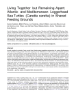 Living Together but Remaining Apart: Atlantic and Mediterranean Loggerhead Sea Turtles (Caretta caretta) in Shared Feeding Grounds C ARLOS C ARRERAS, MARTA PASCUAL, LUIS C ARDONA, ADOLFO MARCO, JUAN JESÚ S BELLIDO, JUAN JOSÉ C ASTILLO, JESÚ S TOMÁ S, JUAN ANTONIO RAGA, MANUEL SANFÉ LIX, GLORIA FERNÁ NDEZ, AND ALEX AGUILAR From the Department of Animal Biology, Faculty of Biology, University of Barcelona, Avda Diagonal 645, E-08028 Barcelona, Spain (Carreras, Cardona, and Aguilar); the Biological Station of Doñana-CSIC-Apdo, 1056-E-41013 Sevilla, Spain (Carreras and Marco); the Department of Genetics, Faculty of Biology, University of Barcelona, Avda Diagonal 645, E-08028 Barcelona, Spain (Pascual); the Centro de Recuperación de Especies Marinas de Andalucı́a—Avda, Manuel Agustı́n Heredia n° 35, E-29001 Málaga, Spain (Bellido and Castillo); the Marine Zoology Unit, Cavanilles Institute of Biodiversity and Evolutionary Biology, University of Valencia, Aptdo 22085, E-46071 Valencia, Spain (Tomás and Raga); the Marine Biology Laboratory, Department of Zoology, Faculty of Biology, University of Valencia, C/Dr Moliner 50, E-46100 Burjasot, Valencia, Spain (Sanfélix); and the Aspro-Ocio Foundation, C/Garcilaso de la Vega, 9 E-07181 Costa d’en Blanes, Calvià, Spain (Fernández) Address correspondence to Luis Cardona at the address above, or e-mail: luis.cardona@ub.edu. Abstract Juvenile loggerhead sea turtles (Caretta caretta) from Atlantic nesting populations migrate into the western Mediterranean, where they share feeding grounds with turtles originating in the Mediterranean. In this scenario, male-mediated gene flow may lead to the homogenization of these distant populations. To test this hypothesis, we genotyped 7 microsatellites from 56 Atlantic individuals sampled from feeding grounds in the western Mediterranean and then compared the observed allele frequencies with published data of 112 individuals from Mediterranean nesting beaches. Mediterranean populations were found to be genetically differentiated from the Atlantic stock reaching the western Mediterranean (Fst 5 0.029, P , 0.001); therefore, the possible mating events between Atlantic and Mediterranean individuals are not sufficient to homogenize these 2 areas. The differentiation observed between these 2 areas demonstrates that microsatellites are sufficiently powerful for mixed stock analysis and that individual assignment (IA) tests can be performed in combination with mitochondrial DNA (mtDNA) analysis. In a set of 197 individuals sampled in western Mediterranean feeding grounds, 87% were robustly assigned to Atlantic or Mediterranean groups with the combined marker, as compared with only 52% with mtDNA alone. These findings provide a new approach for tracking the movements of these oceanic migrants and have strong implications for the conservation of the species. Key words: gene flow, isolation, microsatellite DNA, mitochondrial DNA Loggerhead sea turtles (Caretta caretta) carry out vast migrations across oceans throughout their lives (Bolten 2003). These fascinating migrations have been studied using a large variety of techniques, including capture-taggingrecapture methods (Revelles et al. 2008), genetics (Bowen and Karl 2007; Lee 2008), and satellite telemetry (Cardona et al. 2005; Hawkes et al. 2007), but many important questions remain unanswered. One of the most challenging of these migrations is that undertaken by hatchlings from nesting beaches in the northwestern Atlantic to foraging grounds in the western Mediterranean (Bolten et al. 1998), where they mix with juveniles born in Mediterranean nesting areas (Carreras et al. 2006). Previous studies of Atlantic nesting areas revealed that populations of sea turtles sharing common feeding grounds are usually homogeneous at nuclear DNA (nDNA) loci due to male-mediated gene flow, although they may differ in mitochondrial DNA (mtDNA) haplotype frequencies (Bowen et al. 2005). However, the possibility of male-mediated gene flow from the Atlantic into the Mediterranean remains to be tested. Analyses using mtDNA markers have demonstrated that Atlantic females do not nest in the eastern Mediterranean, as some haplotypes that are frequent (i.e., CC-A1) in Atlantic beach populations (Encalada et al. 1998; Monzon-Argü ello et al. 2010) are not detected in the Mediterranean (Carreras et al. 2007; Garofalo et al. 2009). However, the actual degree of genetic isolation of the Mediterranean populations from the Atlantic ones could not be properly assessed in these analyses because only maternally inherited markers were used (Bowen et al. 1993; Laurent et al. 1993, 1998; Encalada et al. 1998). Male-mediated gene flow is common in loggerhead sea turtles (Bowen et al. 2005; Carreras et al. 2007), and the coexistence of Atlantic and Mediterranean loggerhead sea turtles in feeding grounds in the western Mediterranean presents the possibility of a genetic connection between these very distant groups of populations. Hormone levels, which were determined to sex Atlantic loggerhead sea turtles from the western Mediterranean feeding grounds, indicate an unusually high frequency of males in this population, thus suggesting the possibility that this migration into the western Mediterranean is male biased (Casale et al. 2002). Hormone sex determination in marine turtles can be imprecise and should be validated by laparoscopy (Diez and van Dam 2003; Braun-McNeill et al. 2007; Blanvillain et al. 2008) or histology (Mrosovsky and Benabib 1990). However, direct gonadal examination of stranded turtles from the western Mediterranean supported the hypothesis of male-biased migration to the Mediterranean, as sex ratio was not significantly different from 1:1 in that region (Casale et al. 2006), whereas the primary sex ratio of these turtles is highly female biased in Mediterranean nesting areas (Casale et al. 2006), Atlantic nesting areas, and eastern Atlantic feeding grounds (Delgado et