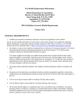 For Health Requirement Information: Illinois Department of Agriculture Bureau of Animal Health and Welfare State Fairgrounds P.O. Box 19281 Springfield, IL 62794-9281 Phone (217) 782-4944 2016 Exhibition Livestock Health Requirements County Fairs GENERAL REQUIREMENTS 1. Exhibitors are required to familiarize themselves with all rules applicable to their exhibits. All out-of-state animals shall require an entry permit. Entry permit numbers are available by calling the Illinois Department of Agriculture, Monday through Friday from 8:00 AM to 4:30 PM, at 217/782-4944. Permits may also be obtained online at: http://www.agr.state.il.us/AnimalHW/animalregistry/login.php 2. All animals, except as noted, shall be accompanied by a Certificate of Veterinary Inspection (CVI) which shows that the animal meets all health requirements for the State of Illinois. CVI’s shall be made available to Bureau of Animal Health Personnel on request. CVI means a legible record made on an official form from the state of origin which has been issued, signed and dated by an accredited veterinarian and which shows the name and address of the animal’s owner or exhibitor and the results of all required tests or vaccinations. A CVI shall list only one animal identification per line; shall be presented on the form on which it was initially issued; and shall not be corrected, changed or altered in any manner. 3. All animals shall be officially identified. The animal(s) official identification shall be recorded on the CVI. 4. If animals are from tuberculosis accredited, brucellosis certified, pseudorabies qualified, or brucellosis validated herds, the identifying herd number(s) along with the date of the last herd test(s) shall appear on the CVI. 5. CVI for out-of-state livestock shall be void thirty (30) days after issuance. 6. CVI for Illinois-origin livestock shall be void ninety (90) days after issuance. 7. All livestock shall be subject to examination upon entry to any Illinois fair or exhibition. Any animal showing evidence of infectious, contagious or communicable diseases shall be immediately withdrawn and held in quarantine at the owner’s risk and expense until properly treated and recovered, or until the animal is released to return to the owner’s premise. Any livestock infected with scabies, mange, active lesions of ringworm, soremouth, or multiple warts which are easily visible without close examination shall not be permitted to exhibit and are subject to quarantine or removal from the fairgrounds. Sheep and goats with caseous lymphadenitis as evidenced by draining abscesses shall not be exhibited and are subject to immediate quarantine or removal from the fairgrounds. 8. Illinois Department of Agriculture personnel or designee may collect blood, tissue, milk or urine samples from any animal being exhibited and/or raced at any Illinois fair to test for the presence of illegal drugs or banned substances. New examination techniques, such as ultrasound, may also be used at anytime while the animals are on the grounds of any Illinois fair or exhibit. The Illinois Department of Agriculture or designee may collect urine, blood, tissue or other test samples from exhibition animals at the time of slaughter. 9. All exhibitors of animals at any Illinois fair or exhibition shall comply with the provisions of the Illinois Humane Care for Animals Act. If violations are observed, the animals(s) will be excused from exhibition and ordered removed from the grounds with all awards being forfeited. Any practice or deviation from normal, accepted care, including physical, medical or mechanical application, shall constitute a violation of show rules and may result in the animal(s) disqualification and removal from the fairgrounds. 10. Any Illinois cattle, bison, cervidae or goats being exhibited in non-accredited free states must be isolated from the remainder of the herd/flock upon return to Illinois and retested for tuberculosis 60-120 days post-entry. CATTLE Identification Individual identification of each animal shall be either a fully healed and legible tattoo, approved official ear tag, registration number (can only be used if the tattoo is recorded on the registration certificate or for breeds where pictures are acceptable), or individual brands, if brand is recorded on the registration certificate. Illinois Cattle Brucellosis Illinois is a Bovine Brucellosis Class-Free State. Brucellosis testing is not required for Illinois cattle. Tuberculosis Illinois is an Accredited Tuberculosis- Free State. Tuberculin testing is not required for Illinois cattle. Please note: Illinois calves under 6 months of age, and Illinois steers are not required to have a Certificate of Veterinary Inspection. Out-of-State-Cattle All out-of-state cattle are to be accompanied by an entry permit. Entry permit numbers are available by calling the Illinois Department of Agriculture, Monday through Friday from 8:00 AM to 4:30 PM, at 217/782-4944. Permits may also be obtained online at: http://www.agr.state.il.us/AnimalHW/animalregistry/login.php Brucellosis 1. Female cattle six (6) months of age and older and bulls eighteen (18) months of age and older shall be negative to an official test for brucellosis within thirty (30) days prior to entry, unless exempt by one (1) of the following: A. Originate directly from a certified brucellosis-free herd. B. Official vaccinates of dairy breeds under twenty (20) months of age or official vaccinates of beef breeds under twenty-four (24) months of age. C. Animal originated from a “Class Free” state (if entire state is so classified) D. Steers and spayed heifers are not required to be tested for brucellosis. 2. The negative brucellosis test shall be conducted at a state or federal laboratory within 30 days prior to exhibition. Tuberculosis 1. Accredited Tuberculosis Free States A. No tuberculin test required. All cattle, including steers, originating from an Accredited Tuberculosis Free State, may enter