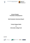 Univers’Emploi Transition to Employment: Irish Evaluation Summary Report Trinity College Dublin & University College Cork July 2012 Contents Introduction: .......................................................................................................... 4 Leonardo Project - Univers’ Emploi: .................................................................... 4 Starting Process: .................................................................................................. 4 National Sample: .................................................................................................. 4 Needs Assessment: ............................................................................................. 5 Pilot process: ....................................................................................................... 5 Feedback from Stakeholders: .............................................................................. 6 Benefits of the Project - Students Perspectives: .................................................. 6 Challenges Experienced by Students during Participation in the Project: ............ 7 Benefits of the Project – University Professionals ............................................... 7 Challenges experienced by University Professionals during the Project .............. 7 Challenges Experienced By Mentors ................................................................... 8 Recommendations: .............................................................................................. 8 Proposal for Dissemination Strategy .................................................................... 9 Appendix – Detailed description of the Proposal of Structure for Presenting Research Results. ............................................................................................... 10 1. The Irish Context: ........................................................................................ 10 1.1 Introduction: ............................................................................................ 10 1.2 Sample: .................................................................................................. 13 1.3 Needs Assessment and Invitation to Participate: ................................... 14 1.4 Purpose of Assessment and Coaching: .................................................. 15 1.5 Feedback from Stakeholders: ................................................................. 18 1.6 Methodology: .......................................................................................... 19 1.7 Preliminary Analysis of Data: .................................................................. 19 1.8 Discussion: ............................................................................................. 20 2. Characteristics of participants and organisations:........................................ 23 2.1 Student and Mentor Characteristics: ...................................................... 23 2.2 University Counsellor and Disability Employment Agency Characteristics: 2.3 Student and Mentor Characteristics TCD: .............................................. 25 2.4 University Counsellor and Disability Career Coach Characteristics TCD: ... 3. Commitment and perception of the project .................................................. 27 3.1: Perception of the Students: .................................................................... 27 3.2: Perception of the University Counsellor: ................................................. 31 3.3: Perception of the Mentor: ....................................................................... 34 2 4. Cooperaation and partnership / joint-venture .............................................. 37 4.1 Perception of the Students: .................................................................... 37 5. Guidance methodology ............................................................................... 38 5.1 Perception of the Students: .................................................................... 38 5.2 Perception of the University Counsellor: ................................................. 41 5.3 Perception of the Mentor: ....................................................................... 43 6. The effects of the project............................................................................... 44 6.1 For the Student: ...................................................................................... 44 6.2 For the University Counsellor: ................................................................ 45 6.3 For the Mentor: ....................................................................................... 46 7. Conclusion .................................................................................................... 47 7.2 Challenges Experienced During Participation in the Project: .................. 52 References....................................................................................................... 74 3 Introduction As a result of national strategies, the number of disabled students participating in third level education in Ireland has grown significantly in the last decade from 450 in 2000, to over 6,000 in 2010 (Ahead 2010). Consequently, the number of disabled graduates entering the labour market is at unprecedented levels. The Disability Support Services in TCD and UCC assist students with developing self-awareness, self-determination and self-advocacy skills, and supports students in the acquisition of transferable skills. Despite this support, the transition to employment can be particularly challenging for students with sensory and physical disabilities and those with mental health difficulties Leonardo Project - Univers’ Emploi TCD and UCC became partners in the Leonardo funded employment transfer project ‘Univers’ Emploi’ in 2010. The project aimed to enhance the employability skills of students with high end disabilities and e