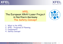 XFEL The European XRAY-Laser Project in Northernn Germany The Safety-Concept Stefan Schrader April 2005 2