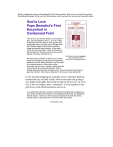 Read a condensed version of Pope Benedict XVI's first encyclical, God Is Love. In this first encyclical, Pope Benedict speaks of the love that God provides, which we must turn around and share with others. God Is Love Pope Benedict’s First Encyclical in Condensed Form “God is love, and he who abides in love abides in God, and God abides in him” (1 Jn 4:16). These words from the First Letter of John express with remarkable clarity the heart of the Christian faith: the Christian image of God and the resulting image of mankind and its destiny. In the same verse, St. John also offers a kind of summary of the Christian life: “We have come to know and to believe in the love God has for us.” Each issue carries an imprimatur from the Archdiocese of We have come to believe in God’s love: In these Cincinnati. Reprinting prohibited words the Christian can express the fundamental decision of his life. Being Christian is not the result of an ethical choice or a lofty idea, but the encounter with an event, a person, which gives life a new horizon and a decisive direction. John’s Gospel describes that event in these words: “God so loved the world that he gave his only Son, that whoever believes in him should...have eternal life” (3:16). In acknowledging the centrality of love, Christian faith has retained the core of Israel’s faith, while at the same time giving it new depth and breadth. Since God has first loved us (see 1 Jn 4:10), love is now no longer a mere “command”; it is the response to the gift of love with which God draws near to us. In a world where the name of God is sometimes associated with vengeance or even a duty of hatred and violence, this message is both timely and significant. For this reason, I wish in my first encyclical to speak of the love which God lavishes upon us and which we in turn must share with others. SPONSORED LINKS The unity of love God’s love for us is fundamental for our lives, and it raises important questions about who God is and who we are. In considering this, we immediately find ourselves hampered by a problem of language. Today, the term “love” has become one of the most frequently used and misused of words, a word to which we attach quite different meanings. Let us first of all bring to mind the vast semantic range of the word “love”: We speak of love of country, love of one’s profession, love between friends, love of work, love between parents and children, love between family members, love of neighbor and love of God. Amid this multiplicity of meanings, however, one in particular stands out: love between man and woman, where body and soul are inseparably joined and human beings glimpse an apparently irresistible promise of happiness. This would seem to be the very epitome of love; all other kinds of love immediately seem to fade in comparison. So we need to ask: Are all these forms of love basically one, so that love, in its many and varied manifestations, is ultimately a single reality, or are we merely using the same word to designate totally different realities? Eros and agape That love between man and woman which is neither planned nor willed, but somehow imposes itself upon human beings, was called eros by the ancient Greeks. Let us note straightaway that the Greek Old Testament uses the word eros only twice, while the New Testament does not use it at all: Of the three Greek words for love—eros, philia (the love of friendship) and agape—New Testament writers prefer the last, which occurs rather infrequently in Greek usage. As for the term philia, the love of friendship, it is used with added depth of meaning in John’s Gospel in order to express the relationship between Jesus and his disciples. The tendency to avoid the word eros, together with the new vision of love expressed through the word agape, clearly points to something new and distinct about the Christian understanding of love. In the critique of Christianity which began with the Enlightenment and grew progressively more radical, this new element was seen as something thoroughly negative. Doesn’t the Church, with all her commandments and prohibitions, turn to bitterness the most precious thing in life? Doesn’t she blow the whistle just when the joy which is the Creator’s gift offers us a happiness which is itself a certain foretaste of the Divine? But is this the case? Did Christianity really destroy eros? Let us take a look at the pre-Christian world. The Greeks—not unlike other cultures—considered eros principally as a kind of intoxication, the overpowering of reason by a “divine madness” which tears man away from his finite existence and enables him, in the very process of being overwhelmed by divine power, to experience supreme happiness. In the religions, this attitude found expression in fertility cults, part of which was the “sacred” prostitution which flourished in many temples. Eros was thus celebrated as divine power, as fellowship with the Divine. The Old Testament firmly opposed this form of religion. But it in no way rejected eros as such; rather, it declared war on a warped and destructive form of it, because this counterfeit divinization of eros actually strips it of its dignity and dehumanizes it. Indeed, the prostitutes in the temple, who had to bestow this divine intoxication, were not treated as human beings and persons, but simply used as a means of arousing “divine madness”: Far from being goddesses, they were human persons being exploited. An intoxicated and undisciplined eros, then, is not an ascent in “ecstasy” towards the Divine, but a fall, a degradation of man. Two things emerge clearly from this rapid overview. First, there is a certain relationship between love and the Divine: Love promises infinity, eternity—a reality far greater and totally other than our everyday existence. Yet we have also seen that the way to attain this goal is not simply by submitting to instinct. Purification and growth in 
