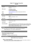 English 101, First Year Composition Fall 2015 Course Syllabus Instructor: Ms. Sasha Litzenberger, MA Room 224 Office Hours: 7:15-8:00a.m.; M,T,Th,Fri By appointment preferably. 2nd Lunch by appointment ONLY Email: sdlitzenberger@mpsaz.org (please arrange appts by email only) Phone: 480.472.7004 Class Meeting Class Days: Mon-Fri August 12 to December 17, 2015 Class Time: 1st, 2nd, 3rd Course Information Credit Hours: ½ Mountain View; 3 MCC Course Title: English 101 Course Description: English 101 emphasizes rhetoric and composition with a focus on expository writing and understanding writing as a process. The course encourages the development of effective college-level writing through the writing of at least four or more writing projects comprising at least 3,000 words in total. Text Book Roen, Duan, Gregory R. Glau, and Barry M. Maid. The McGraw-Hill Guide: Writing for College, Writing for Life. 3rd ed. New York: McGraw-Hill, 2013. Materials Writing utensils-pencils black and/or blue pens Colored Pencils or Highlighters (for editing) Composition Book Loose-leaf paper – NO SPIRAL; COLLEGE RULED ONLY Course Competencies MCCCD Official Course Competencies ENG 101: First Year Composition 1. Analyze specific rhetorical contexts, including circumstances, purpose, topic, audience, and writer, as well as the writing’s ethical, political, and cultural implications. (I, III) 2. Organize writing to support a central idea through unity, coherence, and logical development appropriate to a specific writing context. (II, V) 3. Use appropriate conventions in writing, including consistent voice, tone, diction, grammar, and mechanics. (I, V). 4. Integrate sources through summarizing, paraphrasing, and quotation from sources to develop and support one’s own ideas. (III, IV) 5. Use feedback obtained through peer review, instructor comments, and/or other sources to revise writing.(II) 6. Assess one’s own writing strengths and identify strategies for improvement through instructor conference, portfolio review, written evaluation, and/or other methods.(II) 7. Generate, format, and edit writing using appropriate technologies. (II, V) After completing this course, you should be able to: 1. Understand that writing and critical reading is interrelated to critical thinking. 2. Understand the rhetorical situations of communication (including purpose, audience, and role of writer) and respond to them effectively in their writing tasks. 3. Use appropriate conventions of format, structure, voice, and tone according to the rhetorical situation. 4. Critically read and respond to texts. 5. Use multiple strategies to explore and develop ideas. 6. Compose in several genres. 7. Understand that writing is a process that involves multiple drafts, including prewriting, composing, reviewing, revising, and editing. 8. Understand the collaborative value of the peer review process to help writers address the needs of readers. 9. Compose a focused and clearly stated thesis for a paper or presentation. 10. Develop an informal outline for organizing an academic paper or presentation. 11. Use electronic environments to develop their essays and projects, research their topics, and present their texts. 12. Use Standard English in your own academic writing. Course Requirements/Expectations 1. Class participation: A large part of understanding the concepts comes from discussing them with others and engaging in in-class activities. Therefore, participation is essential to success in class. To effectively participate, you will need to complete the assignments before class begins. 2. Reading assignments: You will be responsible for completing the reading assignments prior to the class period. If there is any material that you do not understand, please see me, email me, or make a note so that it may be discussed in class. Remember that other students may have similar questions, so sharing your questions is as important as sharing your ideas. 3. Quizzes: In-class quizzes make up a portion of your final grade. These quizzes will be based on reading assignments, class discussions, and homework assignments. They will be given at any time with or without notice. 4. Writing assignments: Throughout the course, you will write at least four formal assignments/projects. All formal assignments must be typed and formatted according to MLA style guidelines. You must save all writing assignments on a computer, flash drive, Google Docs, or any other method in which they are easily retrieved again. All papers must be completed to pass this class with a grade of C or better. 5. Group work: There will be group exercises and peer reviews of all formal assignments. In all activities, please be helpful, honest, and respectful in all comments to your classmates. Please know that all rough drafts and peer review sheets are submitted with final drafts, and are graded separately from the class participation grade. 6. Classroom Behavior: Be respectful and mindful of others and the space you are using. 7. Plagiarism & Turnitin.com: Plagiarism includes, but is not limited to, the use of paraphrase or direct quotation of the published or unpublished work of another person without full and clear acknowledgment. It also includes the unacknowledged use of materials prepared by another person or agency engaged in the selling or sharing of term papers or other academic materials. Information gathered from the Internet and not properly identified is also considered plagiarism. We expect every student to produce his/her original, independent work. Any student whose work indicates a violation of the MCCCD Academic Misconduct Policy (including cheating and plagiarism) can expect sanctions as specified in the college catalog (2.3.11), or online at the following site: http://www.maricopa.edu/publicstewardship/governance/adminregs/students/2_3.php Plagiarism, cheating, or other forms of academic dishonesty on any assignment will result in failure (a grade of zero) for that a