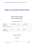 Connection Engineering Study Report for AUC Application: Error! Reference source not found. Stage 3 Connection Study Scope [Insert Customer Name] [Insert Project Name] AESO Project Number: [000] Company Name Engineer Name P.Eng. Date Engineer Signature Date Signature [Studies Consultant] [AESO (Project Studies Engineer)] Company Name Name [Insert Customer Name] Document Release [R1] [insert date] Page 1 Project and System Access Studies (PSAS) Group Public R3-2016-01-01 Connection Engineering Study Report for AUC Application: Error! Reference source not found. Page 2 Project and System Access Studies (PSAS) Group Public R3-2016-01-01 Connection Engineering Study Report for AUC Application: Error! Reference source not found. Contents Introduction ......................................................................................................................................... 5 1.1. Project............................................................................................................................................ 5 1.1.1. Project Overview.................................................................................................................... 5 1.1.2. Load Component ................................................................................................................... 5 1.1.3. Generation Component ......................................................................................................... 6 1.2. Study Scope .................................................................................................................................. 7 1.2.1. Study Objectives .................................................................................................................... 7 1.2.2. Study Area ............................................................................................................................. 7 1.2.3. Studies Performed ............................................................................................................... 10 1.2.4. Studies Excluded ................................................................................................................. 11 2. Connection Alternatives Selected for Studies ............................................................................... 12 3. Criteria, System Data, and Study Assumptions ............................................................................. 13 3.1. Criteria, Standards, and Requirements ....................................................................................... 13 3.1.1. Transmission Planning Standards and Reliability Criteria................................................... 13 3.1.2. AESO Rules ......................................................................................................................... 14 3.1.3. Other Requirements ............................................................................................................ 14 3.2. Study Scenarios .......................................................................................................................... 15 3.3. Load and Generation Assumptions ............................................................................................. 15 3.3.1. Load Assumptions ............................................................................................................... 15 3.3.2. Generation Assumptions ..................................................................................................... 16 3.3.3. Intertie Flow Assumptions ................................................................................................... 17 3.3.4. HVDC Power Order (if applicable) ....................................................................................... 18 3.4. System Projects ........................................................................................................................... 18 3.5. Customer Connection Projects .................................................................................................... 19 3.6. Facility Ratings and Shunt Elements ........................................................................................... 19 3.7. Protection Fault Clearing Times .................................................................................................. 21 3.8. Voltage Profile Assumption ......................................................................................................... 21 3.9. Motor Starting Assumptions ........................................................................................................ 22 4. Study Methodology ........................................................................................................................... 22 4.1. Connection Studies Carried Out .................................................................................................. 22 4.2. Load Flow Analysis ...................................................................................................................... 23 4.2.1. Contingencies Studied ......................................................................................................... 23 4.3. Voltage Stability (PV) Analysis .................................................................................................... 23 4.3.1. Contingencies Studied ......................................................................................................... 23 4.4. Transient Stability Analysis ......................................................................................................... 24 4.4.1. Contingencies Studied ......................................................................................................... 25 4.5. Short-Circuit Analysis .................................................................................................................. 25 4.6. Motor Starting Analysis [as required] ...................................