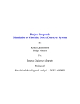 Project Proposal: Simulation of Cheshire Direct Conveyor System By: Kosta Karachristos Ralph Minaya For: Ernesto Gutierrez-Miravete Professor of: Simulation Modeling and Analysis – DSES-6620H01 ACKNOWLEDGEMENTS We would like to give special thanks to the Cheshire Direct Management Team for their involvement in our project for Course DSES-6906 Simulation & Modeling Analysis at Rensselaer Hartford. 2 TABLE OF CONTENTS Abstract 4 1.0 Introduction 4 2.0 Objective 5 3.0 Background 5 4.0 Scope 6 4.1 Receiving 6 4.2 Automatic Conveyor 6 4.3 Stock Put-away 7 5.0 Requirements 7 5.1 Receiving 7 5.2 Automatic Conveyor 7 5.3 Stock Put-away 8 6.0 Data Collection 8 6.1 Receiving 8 6.2 Automatic Conveyor 8 6.3 Stock Put-away 9 7.0 Model Definition 9 8.0 Current and Proposed System Behavior 11 8.1 Current System Results 11 8.2 Proposed System Results 11 9.0 Model Validation and Verification 12 10.0 Conclusion and Recommendations 13 11.0 References 13 Appendix A: Flow Diagram of System 14 Appendix B: Pictures of System Components 16 Appendix C: Data Collection Tables 20 Receiving, Conveyor, & Stock Put Away Appendix D: Fitted Distributions 23 Receiving & Stock Put-away Appendix E: Current and Proposed Models Output 28 3 ABSTRACT This report determined the daily schedule between the receiving work centers and the put-away work centers to minimize bottlenecks on the automatic conveyor at Cheshire Direct. With observations of the system, it was concluded that imbalances between the rate bin boxes were loaded vs. the time required to unload the bin boxes caused bottlenecks. Defining the speed and loading/unloading rates of work centers assisted in simulating the existing conveyor system. With the assistance of the simulation software, it was evident that the rate that receiving inputs merchandise far exceeded the rate that the put away personnel can stock into location. The existing system loads merchandise onto the conveyor at a rate of 0.55 boxes/min, creating bottlenecks that would leave 200 bin boxes still on the conveyor after an 8hr shift. Receiving should load 0.7 boxes/min in order for the automatic conveyor system to run without major bottlenecks. Running at 0.7 boxes/min enables the conveyor to run with constant flow and minimal bottlenecks of only leaving 5 bin boxes in system after an 8hr shift. 1.0 INTRODUCTION Cheshire Direct is a distribution center that supports catalog operations for Bloomingdale’s by Mail (BBM), Macy’s By Mail (MBM), and Macys.com. These catalogs and web sites offer products in home-furnishings, men’s and women’s designer clothing, jewelry, lingerie, cosmetics and fragrances. Consumers can place orders by phone, mail in forms, or electronically through the web site. Once customers place their orders, they must be packed and shipped within 24hrs, creating a tremendous demand on the work centers. The centers consist of receiving, 4 automatic conveyors, and stock put-away areas. In the receiving area, merchandise is processed in two different locations, and released to the subsequent work center. Items move from one work center to the next through the automated conveyor system, which diverts the products to the proper stock area via barcode scanners. In the put-away area goods are stored in the appropriate shelving locations. Adhering to an hourly schedule at the receiving end, all processed merchandise is presented to the automated conveyor regardless of its existing utilization. Despite the current conveyor capacity, the product is released, causing bottlenecks when the system is busy. As a result, many man-hours are spent clearing bottlenecks in the system. 2.0 OBJECTIVE The goal was to coordinate the workload between the receiving and stock putaway work centers, based on system capacity, to minimize bottlenecks in the downstream process. 3.0 BACKGROUND This section describes the process flow before merchandise can be shipped to customers. The process consists of receiving, automatic conveyors, and stock put-away areas. See Appendix A for a simplified schematic of the real world system applied to our project. Also, Appendix B shows pictures of each process area. 3.1 Receiving This aspect of the process allots to the receiving of merchandise from various product manufacturers. Merchandise is prepared for put-away in the receiving prep mezzanine, and at the pallet receiving areas. Receiving packs the merchandise into bin boxes, which are labeled with bar codes and proper storage location information. 3.2 Automatic Conveyors 5 Once the boxes are on the conveyor system, the barcode system directs them to the put-away location. 3.3 Stock Put-away Stock put-away personnel (3 persons) remove boxes from the conveyor and transport them to the proper storage locations. 4.0 SCOPE Our methodology will consist of modeling the existing conveyor system with specific assumptions, and based on the results, adjustments will be made to achieve the desired results. Assumptions, necessary data, and performance metrics are described in the sections following: 4.1 Receiving Assumptions: Merchandise is readily available, no transport time required to conveyor There is no box in the system initially No operators are included in this activity Receiving prep mezzanine, and pallet receiving areas considered as one processing area Boxes are pulled via FIFO Never experience failure Data Collection: Arrival time based on existing production data -Boxes/Min 4.2 Conveyor Assumptions: Conveyor will serve as input queue Entities (boxes) will move at constant rate (ft/min), & no distance between each other Never mechanical experiences failures, except bottlenecks Data Collection: Conveyor speed (ft/min) – defines entity speed Conveyor length (ft) – defines queue length Conveyor capacity – defines max number of boxes that fit into queue length Performance Metrics: Bottlenecks/Day – when entity number in conveyor is > than conveyor capacity Conveyor downtime – waiting time in queue/conveyor 