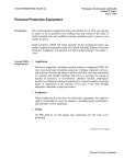 STATE PERSONNEL MANUAL Workplace Environment and Health Section 8, Page 4 July 1, 1995 Personal Protective Equipment Introduction The North Carolina Occupational Safety and Health Act of 1973 was enacted to assure so far as possible every working man and woman in the State of North Carolina safe and healthful working conditions and to preserve our human resources. North Carolina’s OSHA bill which specifies all the occupational safety and health standards promulgated under the Federal Standard, Subpart-I-Personal Protective Equipment, was adopted in North Carolina effective November 1, 1994. General OSHA Requirements 1. Application Protective equipment, including personal protective equipment (PPE) for eyes, face, head and extremities, protective clothing, respiratory devices, and protective shields and barriers, shall be provided, used and maintained in a sanitary and reliable condition wherever it is necessary by reason of hazards of processes or environment, chemical hazards, radiological hazards or mechanical irritants encountered in a manner capable of causing injury or impairment in the function of any part of the body through absorption, inhalation or physical contact. 2. Equipment Where employees provide their own protective equipment, the employer shall be responsible to assure its adequacy, including proper maintenance, and sanitation of such equipment. 3. Design All PPE shall be of safe design and construction for the work to be performed. Continued on next page Personal Protective Equipment STATE PERSONNEL MANUAL Workplace Environment and Health Section 8, Page 5 July 1, 1995 Personal Protective Equipment, Continued General OSHA Requirements (continued) 4. Hazard Assessment and Equipment Selection The employer shall assess the workplace to determine if hazards are present, or likely to be present, and will necessitate the use of PPE. If such hazards are present, or likely to be present, the employer shall: Select and have each affected employee use the types of PPE that will protect the affected employee from the hazards identified in the hazard assessment; Communicate selection decisions to each employee; and Select PPE that properly fits each affected employee. The employer shall verify that the required workplace hazard assessment has been performed through a written certification that identifies the workplace evaluated, the person certifying that the evaluation has been performed, the dates of the hazard assessment, and which identifies the document as a certification of hazard assessment. 5. Defective and Damage Equipment Defective or damaged PPE shall not be used. 6. Training The employer shall provide training to each employee who is required to use PPE. Each employee shall be trained to know at least the following: when PPE is necessary, what PPE is necessary, how to properly don, doff, adjust, and wear PPE, the limitations of the PPE, and the proper care, maintenance, useful life and disposal of the PPE. Each affected employee shall demonstrate an understanding of the training and the ability to use PPE properly, before being allowed to perform work requiring the use of PPE. Continued on next page Personal Protective Equipment STATE PERSONNEL MANUAL Workplace Environment and Health Section 8, Page 6 July 1, 1995 Personal Protective Equipment, Continued General OSHA Requirements (continued) When the employer has reason to believe that any affected employee who has already been trained does not have the understanding and skill required, the employer shall retrain each such employee. Circumstances where retraining is required, includes but are not limited to the following situations: changes in the workplace, rendering previous training obsolete; changes in the type of PPE to be used, rendering previous training obsolete; and inadequacies in an affected employee’s knowledge or use of assigned PPE indicates that the employee has not retained the requisite understanding or skill. The employer shall verify that each affected employee has received and understood the required training through a written certification that contains the name of each trained employee, the dates of training, and that identifies the subject of the certification. Policy In compliance with the provisions of the Occupational Safety and Health Administration (OSHA) the following shall apply to personal protective equipment. The State as an employer will furnish, at no cost to the employee, certain personal protective equipment required by the job. Included as part of this policy is the “General Personal Protective Equipment Guide” as established by the North Carolina Department of Labor. The State’s policy in providing this equipment is noted in each category. Continued on next page Personal Protective Equipment STATE PERSONNEL MANUAL Workplace Environment and Health Section 8, Page 7 July 1, 1995 Personal Protective Equipment, Continued GENERAL PERSONAL PROTECTIVE EQUIPMENT GUIDE Equipment Eye Protection Safety Glasses Safety Glasses with side shields Goggles Chemical/Dust Nuisance Welding Goggles Indirect Ventilation Funding 100% State funded except that employees who wear prescription glasses pay for the cost of the exam Guide As required to protect employee form eye hazards, such as optical radiation or glare when only frontal protection is required. Shaded or special purpose lenses may be required. 100% State funded except that employees who wear prescription glasses pay for the cost of the exam As required to protect employee form flying fragments, objects, large chips, particles, sand, dirt, etc. For severe exposure, add face-shield over safety glasses. 100% State funded 100% State funded Cup Goggles - Direct 100% State funded Ventilation Cup Goggles Indirect Ventilation As required to protect employee form chemical splashes, mist, sprays or nuisance dust. For severe exposure, add face shield over goggles. As required to protect employee against hazards of welding, cutting, and brazing