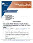 FOCUS GROUP TOOLKIT Sample Focus Group Report Focus Group Report Format: 1. Summary of Project 2. Introduction with list of outcomes 3. Participant demographics 4. Summary of findings within each outcome, including representative quotes, results of yes or no questions, and quantitative data 5. Recommendations Sample Focus Group Report Summary of Project: [Name of College] held a series of focus groups in [months and year] involving various student populations represented at the college, including: day students, evening students, Russian students, previously enrolled students, and students from Johnson High School (a feeder school to the college). Through the focus groups, the college gathered information to help administrators, faculty, and staff. [List outcomes from discussion guide] Introduction [Name of College] held a focus group discussion with [number of students] students on [date]. The focus group was conducted as part of the College’s involvement in [name of initiative, if applicable]. Participants provided information in two ways: written responses and group discussion. The discussion was designed to gather information from the students in regard to the following outcomes: 1. To understand what motivates students to pursue higher education 2. To understand how students perceive the college’s effectiveness in meeting their needs 3. To understand what impact responsibilities outside of school have on a student’s potential for academic success 4. To understand the importance of various college services in helping students reach their academic goals 5. To understand students’ academic experience at the college and what helps or hinders their success 6. To understand the role of relationships in student persistence and success 7. To understand what the college does well to help students succeed and what the college needs to improve to help students succeed The University of Texas at Austin • Center for Community College Student Engagement • 1 University Station, D5650 • Austin, TX 78712-0378 Ph: 512-471-6807 • Fax: 512-471-4209 • Email: info@cccse.org • Web site: www.cccse.org Participant Demographics [Summarize data from response sheets in this section.] Ten participants took part in the focus group: Five women and five men 4 students were 18-21 years old; 3 were 22-24 years old; 3 were 25-44 years old 2 students identified themselves as black non-Hispanic, 3 as white non-Hispanic; 4 as Hispanic; 1 student did not respond 7 of the 10 students are employed while attending St. Philip’s 3 of the 10 students have children or other dependents living with them 4 of the 10 students have completed 1-14 credit hours; 2 have completed 15-29 credit hours; 2 have completed 30-44 credit hours; 2 have completed 45-60 credit hours 6 of the 10 students had started college immediately after high school 4 students have taken a developmental reading course; 4 have taken a developmental math course; 3 have taken a developmental writing course; 3 are in the honors program; 3 have taken a study skills course; 5 have participated in academic advising/planning 5 students are liberal arts majors; 3 students are nursing majors, 2 students are majoring in computer science 9 of the 10 students indicated that they plan to pursue a bachelor’s degree; 1 student had received a bachelor’s degree; 3 students indicated plans to pursue a master’s or professional degree 6 students were enrolled full-time; 4 students indicated part-time enrollment All 10 students are using some type of financial aid. Student Perspectives [Organize by outcome, identify any key themes under each outcome then summarize the discussion under each outcome. Use student quotes to enhance the narrative.] Outcome 1: To understand what motivates students to pursue higher education Why are the students in college? Four of the 10 participants decided to go on to college while in high school and began college the semester after graduating from high school. The remaining six students worked after finishing high school and later made the decision to continue their education. The students offered a number of reasons for their decision to go to college: To transfer to a four-year college or university To focus on academics To pursue a specific career To learn new job-related skills for promotion To broaden their social circle and gain opportunities for networking They were encouraged by parents or friends They were encouraged by high school teachers or counselors The students had specific reasons for choosing a community college: Cost Location close to home Family responsibilities Need to attend part-time while working Availability of specific program ©Copyright 2010, Center for Community College Student Engagement. Permission granted for unlimited copying with appropriate citation. December, 2010 Eight out of 10 of those participating indicated that their goals have changed since coming to the college because of courses they have taken at the college. One participant stated, “I didn’t know how interesting psychology could be! Now I want to go on to get my bachelor’s degree in psych.” Outcome 2: To understand how students perceive the college’s effectiveness in meeting their needs What are students’ perceptions of the college? In general, students were extremely positive when talking about the college. They used various words to describe their experience at the college, “[include quotes from students].” They cited a number of the college’s strengths, including (list them). All the students agreed that the college has two significant weaknesses, including [list them]. Other weaknesses cited by individual students include: [list them] Positive Features of the College The one overwhelmingly positive attribute mentioned by participants is the beautiful campus. “The campus is so beautiful that it makes you want to hang out here after class or between classes and do your work or visit with classmates. I like wh