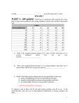 NAME:________________________ Ec.2100-Tansey July 17, 2016 EXAM 3 PART 1. (40 points) Following is a production table showing how many pairs of jeans can be produced with sewing machines (vertical axis) and labor (horizontal) axis: Labor Sewing Machines 0 4 8 12 16 0 0 4 7 12 13 3 2 8 9 13 14 6 4 9 10 14 15 9 6 10 11 15 16 12 8 11 12 16 18 15 10 12 13 17 20 18 12 13 15 18 21 21 14 15 17 19 22 24 16 17 18 20 23 A. What is the marginal physical product of 12 units of labor when there are 12 sewing machines? (Show how you get your answer):__________________________ B. What is the marginal physical product of 12 sewing machines when there are 12 units of labor? (Show how you get your answer):__________________________ C. Which of the following best characterizes the jean production? (circle one) a) perfect substitutability between sewing machines and labor. b) imperfect substitutability between sewing machines and labor. c) no substitutability between sewing machines and labor. 1 point for each question on this page. D. Suppose a unit of labor cost $5 and each sewing machine costs $4 to use. In the following table, show the cost of using different combinations of sewing machines and labor: 1 Labor Sewing Machines 0 price of sewing machine = $4.00 (wage= 4 $5.00 ) 8 12 16 0 3 6 9 12 15 18 21 24 E. The above table shows the firm’s variable costs. Using the least cost technique shown in class, fill in the following table on the basis of your calculations in the previous two tables. Fill in the blanks of the following table based on the total cost, variable cost (least cost!), and revenue information in the following table (if you can’t make the final numeric calculation just show what computations with what numbers would have to be made): Quan Tity (Q) Total Revenue ($) Total Costs ($) 0 4 8 12 16 20 Variable Costs ($) Price ($/Q) Marginal Revenue ($/Q) Average Total Cost ($/Q) Average Variable Cost ($/Q) Marginal Cost ($/Q) Profit ($) AveRage proFit ($/Q) Elasticity 48 0 4 8 12 16 20 q Fixed Costs ($) 11 10 9 8 7 TC 48 68 80 108 144 188 FC 48 48 48 48 48 48 VC 0 20 32 60 96 140 ATC AVC MC Price 17 10 9 9 9.4 5 4 5 6 7 5 3 7 9 11 11 10 9 8 7 TR 0 44 80 108 128 140 MR 11 9 7 5 3 Profit -48 -24 0 0 -16 -48 Av Profit Elasticity -6 0 0 -1 -2.4 1 -7 -3.8 -2.43 -1.67 1 point for each column beginning with fixed costs F. Graph the Average total cost, average variable cost, marginal cost, marginal revenue and demand curve in the following graph. Make sure you label each axes and fit the graphs to the maximum possible space (not all scrunched up!): 2 G. Graph top of next page (make sure to label the graph to include negative values if there are any) ! ? [ ] 2 points for each question on this page (including symbols in the graph) D. With an arrow ( )point to the output on the X-axis where profit will be maximized E. Circle the output at which revenue will be maximized. F. Put an exclamation point (!) where the greatest efficiency of production can be achieved. G. [Bracket] the shutdown point (corresponding to the shutdown price on the Y-axis and output at the shutdown price) H. Place a question mark () where output would have to be to minimize total cost. I. Place a rectangle around the OUTPUT at which average profit would be maximized. I. At what output level would a firm with the above cost and revenue curves end up producing, based on their long run incentives? 12 to 16 units in a competitive market. 20 units for an oligopoly. 8-12 units for a monopoly. 3 J. Which of the following types of markets is the above diagram most likely to represent if it is in long run equilibrium? (b) A monopolistically competitive market downward sloping demand and zero profit) K. Which of the following is NOT true of producing at an output of 20 units in the above table? (3 pts. For this question) A) Demand is elastic. B) Marginal revenue is negative. C) profits are negative D) Average revenue is positive. PART II. (60 points) Figure 1. Shifts of Supply and Demand (A) (B) SUPPLY SHIFTS: LEFTWARD (up) (up) P Supply Q (C) (D) RIGHTWARD (down) DEMAND SHIFTS: LEFTWARD (down) RIGHTWARD P P P Supply Q Demand Demand Q Q I. (35 pts) Following are several articles. For each article answer the questions that follow given the underlined market in the article and the event in bold italic letters: 1 pt. for each question! ARTICLE 1. Steve Jobs, Price Fixer? Wall Street Journal, March 12, 2012 … No one knows the next chapter in the future of books, but lawyers in the Antitrust Division of the Justice Department claim to know precisely how this industry in 4 transition must be structured and operated, down to the correct price for an e-book. The government's certainty is the basis of a threatened price-fixing lawsuit against Apple and top book publishers. At issue is an agreement publishers made with Steve Jobs in 2010, as he was about to launch the iPad. At that time, Amazon's Kindle had 90% of the market for e-books. Book publishers had imported the "wholesale model" from the print world, where they sold retailers books for roughly half the recommended cover price. This made sense in the bricks-and-mortar world of returns of unsold books and expensive inventory. It was in the interests of publishers and booksellers to sell at whatever the market would bear. But in the e-reader world, Amazon could sell e-books at very low prices, usually for $9.99, losing money on many of them. Amazon's strategy was to price books as loss leaders to support sales of the Kindle, hoping to keep the device's near-total market share…. Steve Jobs was at the center of one of the better known disconnects between Silicon Valley and Washington. President Obama had asked him for a one-on-one meeting in 2010. Jobs told the president he was "headed for a one-term presidency" because Washington was smothering the innovation that had been the country's growth engine. The introduction of Kindle to the traditional “bricks-andmortar” book market most likel