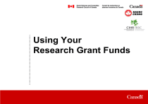 Using Your Research Grant Funds Date Agenda • The Financial Investment in Research • The Accountability Partnership • The Roles & Responsibilities of the Partners • The Requirements for Using Grant Funds Investment in Research 2007-08 Fiscal Year (in millions) $ 927 $ 970 $ 660 NSERC SSHRC CIHR Total : 2.56 Billion $ Accountability Partnership Grant Holders Institutions Agencies Parliament Tax payers The Memorandum of Understanding (MOU) on the Roles and Responsibilities in the Management of Federal Grants and Awards Roles and Responsibilities Agencies • Timely release of approved grant funding • Detailed grant fund payment information • Clear, concise requirements for fund use • Timely response to inquiries • Consultation on program changes • Monitoring reviews on management of grant funds Roles and Responsibilities Institutions • Infrastructure support • Effective administration policies, systems & controls • Ongoing oversight of grant fund use • Administrative support to grant holders • Liaison with granting Agencies • Monitoring eligibility status of grant holders • Annual reporting to granting Agencies. Roles and Responsibilities Grant Holders • Day to day management of their grant funds • Compliance with grant fund use requirements • Timely notification of eligibility status change • Provision of required annual reports • Recognition of Agencies’ funding support. Roles and Responsibilities Grant Holders • The Grantee (or his/her delegate) is responsible for authorizing ALL expenditures from his/her account. • The signature certifies that: – All expenditures on the claim are for the purpose for which the grant was awarded – The charges included have not been claimed for reimbursement from other sources – Reimbursements for expenditures received from other sources or institutions must be disclosed to the administering institution The Tri-Agency Financial Administration Guide Use of Grant Funds - General Principles • For direct costs of the research only • Effective and economic use of funds • Equipment purchased belongs to the Institution • If no written Agency policy, the Institution’s policy applies • Agencies defer to Institutions’ conflict of interest policies to ensure accountable & responsible use of grant funds • Institutions can withhold payment of expenses approved by grant holders that contravene Agencies’ requirements or Institutions’ policies. Categories of Expenses Compensation-Related Expenses (NSERC Grants) Eligible Ineligible • • • • • • • • • • Salaries, stipends for research personnel Institutional non-discretional benefits Salary/stipend yearly maximums - Master’s students $16,500 - Doctoral students $19,000. Salary/stipend yearly minimum - Doctoral fellows $25,000 Stipend monthly maximum - Visiting Researchers $2,000 Consulting fees Fees paid to research subjects Subcontract costs Clerical salaries directly related to dissemination activities Honoraria for guest lecturers. • Grant holders or persons eligible to apply for funding from Agencies • Students holding a master’s or doctoral scholarship • Administrative charges and fees • Discretionary severance and separation packages. Compensation-Related Expenses (SSHRC Grants) Eligible Ineligible • • • • • • • • • Salaries, stipends for research personnel Institutional non-discretionary benefits Stipend yearly maximums – Master’s students $12,000 – Doctoral students $15,000 – Postdoctoral fellows $31,500 Salaries to students or postdoctoral fellows (per Institutions’ salary scale) Consulting fees Research subject fees Subcontract costs Clerical salaries directly related to dissemination activities. Research Time Stipend Grants (program ended). • Grant holders or persons eligible to apply for funding from Agencies • Stipends to students holding a master’s, doctoral, or postdoctoral award from the Agencies • Administrative charges and fees • Discretionary severance and separation packages. Compensation-Related Expenses (CIHR Grants) Eligible • • • • • • • • • • • Salaries of research associates, assistants, technicians & trainees, per Institution’s rates Institutional non-discretionary benefits Stipend yearly minimums – Graduate students $17,850 – Postdoctoral fellows with a PhD $36,750 Stipend yearly minimum for fellows with a health professional degree and not holding a Canadian licence From $17,850 to $46,750 per Institutions’ policy Stipend yearly minimum for fellows with a health professional degree and holding a Canadian licence – 0-2 years postgrad academic experience $36,750 – 2 plus years postgrad academic experience $47,250 Stipend monthly minimum for undergrads training in research in summer $1,313 Consulting fees Research subject fees Subcontract costs Clerical salaries directly related to dissemination Honoraria for guest lecturers. Ineligible • Grant holders or persons eligible to apply for funding from Agencies • Payments to practicing clinicians participating in the research on a part-time basis • Payments to individuals participating in the research as an investigator and who receive remuneration for teaching or service work • Administrative charges and fees • Discretionary severance and separation packages. Compensation-Related Expenses Supporting Evidence Requirements • • • • • • Name of the person Position or category of employment Salary or stipend Duration of compensation Details of supplementary benefits Authorization of grant holder or delegate. Travel and Subsistence Expenses Eligible • • • • Transportation Meals & accommodation Travel cancellation insurance Travel health insurance (if not provided by employer or other sources, NSERC/CIHR grants only) • Child care expenses as specified by the Agencies (For traveling nursing mothers or single parents) • Relocation (NSERC/CIHR grants onl