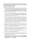 Inter-Governmental Working Group (IGWG) on the elaboration of an international legally-binding instrument on transnational corporations and other business enterprises with respect to human rights SUBMISSION OF THE EUROPEAN UNION The EU is supportive of a consensual track at the UN level. The EU supported Human Rights Council resolution 26/22 presented by the core group (Argentina, Ghana, Norway, Russian Federation). Accordingly, the EU is firmly committed to the implementation of the “UN Guiding Principles on Business and Human Rights (UNGPs)” endorsed by consensus by the UN Human Rights Council in 2011. The EU supports the UN Working Group in all its activities, including the annual Forum on Business and Human Rights. The EU and its Member States actively participated in all Forums on Business and Human Rights held since 2012. In 2012 and 2014, the EU Special Representative for Human Rights attended, to discuss and promote the EU agenda. Other institutions, including the European Commission and the European Parliament, were also actively present. The EU is also actively engaged with the OHCHR project ”Legal options and practical measures to improve access to remedy for victims of business-related human rights abuses”, which is currently operationalized in line with resolution 26/22 requesting "the United Nations High Commissioner for Human Rights to continue work to facilitate the sharing and exploration of the full range of legal options and practical measures to improve access to remedy for victims of business-related human rights abuses, in collaboration with the Working Group, to organize consultations with experts, States and other relevant stakeholders to facilitate mutual understanding and greater consensus among different views" [OP7]. The EU has stated clearly that civil society and human rights defenders working for the implementation of the UN Guiding Principles should not be subjected to harassment, persecution and retaliation. Human rights defenders and civil society actors working in this sensitive area of work need particular attention and protection. Furthermore, to make practical advances on business and human rights requires the active engagement of all stakeholders; Government, business and civil society needs to work together. The EU has therefore been consistent in stating the need for all stakeholders to be actively engaged in discussions at the international level, including the IGWG. This paper outlines the rationale for the EU’s position as regards the current process for the elaboration of an international legally binding instrument The paper also recalls the EU's strong support and commitment to the implementation of the UN Guiding Principles. Furthermore, it sets out the EU's main achievements and policy initiatives –both binding and non-binding- in this respect. A. The EU's position on the current process to elaborate an international legally binding instrument on transnational corporations and other business enterprises with respect to human rights 1 By their very nature, the UN Guiding Principles on Business and Human Rights constitute a policy framework/guidance and a compilation of existing international obligations. By means of organising and subsuming all existing state and corporate obligations in a single, comprehensive document, the UNGPs allow for the identification of loopholes and grey areas of the current national and international regulatory framework with regard to corporate conduct and human rights. As the UNGPs reveal, human rights abuses do not result from a lack of international rules and obligations but rather stem from a failure in implementing the existing ones. National governments have an important role to play in this respect and they should ensure the translation of the UNGPs into practical measures. The EU has supported the adoption of HRC resolution 26/22 which mandates further work on exploring the full range of legal options and practical measures to improve access to remedy for victims of business-related human right abuses. Furthermore, the EU is committed to engaging in the debate about effective remedy for the victims of business related human rights abuses. As stated above, the EU is actively engaged with the OHCHR project “Legal options and practical measures to improve access to remedy for victims of business-related human rights abuses”, with the aim of achieving a fairer and more effective system of domestic law remedies. The UNGPs, along with the process of organizing a framework conducive to responsible business involve a long but balanced process which is built on multi-stakeholder consensus involving governments, industry and civil society. The promotion of the UNGPs should be prioritized as an authoritative and thorough set of guidelines for governments and enterprises alike. As the UNGPs provide a coherent policy framework which is endorsed by concerned international actors, the focus should now be on their effective implementation and on supporting states and corporations in the alignment of their activities in accordance with the framework provided. The European Union also duly noted the recommendations of the Chair of the Forum on Business and Human Rights on "the need to establish a regular and systematic process for measuring and reporting on progress made by States and business enterprises in implementing the Guiding Principles" [para. 9 of A/HRC/29/29]. The focus on solely transnational corporations, as foreseen in the process set out by resolution 26/9 which divided the Human Rights Council, neglects the fact that many abuses are committed by enterprises at the domestic level, thus undermining a fundamental element of the UNGPs that cover all businesses, regardless of whether firms are transnational. Likewise, small and medium-sized enterprises (SMEs) are seemingly absent from this debate. In real terms, SMEs represent an overwhelming percentage of all domestic economies, regardless of whet
