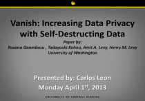 • Vanish Introduces the notion of VDO (Vanishing Data Object):