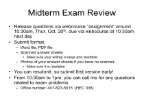 10:30am, Thur. Oct. 20 th , due via webcourse at 10:30am next day