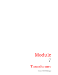 Module 7 Transformer Version 2 EE IIT, Kharagpur Lesson 24 Practical Transformer Version 2 EE IIT, Kharagpur Contents 24 Practical Transformer 4 24.1 Goals of the lesson …………………………………………………………………. 4 24.2 Practical transformer ………………………………………………………………. 4 24.2.1 Core loss………………………………………………………………….. 7 24.3 Taking core loss into account ……………………………………………………… 7 24.4 Taking winding resistances and leakage flux into account ……………………….. 8 24.5 A few words about equivalent circuit ……………………………………………... 10 24.6 Tick the correct answer ……………………………………………………………. 11 24.7 Solve the problems ………………………………………………………………… 12 Version 2 EE IIT, Kharagpur 24.1 Goals of the lesson In practice no transformer is ideal. In this lesson we shall add realities into an ideal transformer for correct representation of a practical transformer. In a practical transformer, core material will have (i) finite value of μr , (ii) winding resistances, (iii) leakage fluxes and (iv) core loss. One of the major goals of this lesson is to explain how the effects of these can be taken into account to represent a practical transformer. It will be shown that a practical transformer can be considered to be an ideal transformer plus some appropriate resistances and reactances connected to it to take into account the effects of items (i) to (iv) listed above. Next goal of course will be to obtain exact and approximate equivalent circuit along with phasor diagram. Key words : leakage reactances, magnetizing reactance, no load current. After going through this section students will be able to answer the following questions. • How does the effect of magnetizing current is taken into account? • How does the effect of core loss is taken into account? • How does the effect of leakage fluxes are taken into account? • How does the effect of winding resistances are taken into account? • Comment the variation of core loss from no load to full load condition. • Draw the exact and approximate equivalent circuits referred to primary side. • Draw the exact and approximate equivalent circuits referred to secondary side. • Draw the complete phasor diagram of the transformer showing flux, primary & secondary induced voltages, primary & secondary terminal voltages and primary & secondary currents. 24.2 Practical transformer A practical transformer will differ from an ideal transformer in many ways. For example the core material will have finite permeability, there will be eddy current and hysteresis losses taking place in the core, there will be leakage fluxes, and finite winding resistances. We shall gradually bring the realities one by one and modify the ideal transformer to represent those factors. Consider a transformer which requires a finite magnetizing current for establishing flux in the core. In that case, the transformer will draw this current Im even under no load condition. The level of flux in the core is decided by the voltage, frequency and number of turns of the primary and does not depend upon the nature of the core material used which is apparent from the following equation: V1 φmax = 2π fN1 Version 2 EE IIT, Kharagpur Hence maximum value of flux density Bmax is known from Bmax = φmax , where Ai is the net cross Ai sectional area of the core. Now Hmax is obtained from the B – H curve of the material. But we NI know Hmax = 1 m max , where Immax is the maximum value of the magnetizing current. So rms li I value of the magnetizing current will be Im = m max . Thus we find that the amount of magnetizing 2 current drawn will be different for different core material although applied voltage, frequency and number of turns are same. Under no load condition the required amount of flux will be produced by the mmf N1Im. In fact this amount of mmf must exist in the core of the transformer all the time, independent of the degree of loading. Whenever secondary delivers a current I2, The primary has to reacts by drawing extra current I’2 (called reflected current) such that I’2N1 = I2N2 and is to be satisfied at every instant. Which means that if at any instant i2 is leaving the dot terminal of secondary, i2′ will be drawn from the dot terminal of the primary. It can be easily shown that under this condition, these two mmfs (i.e, N2i2 and i2′ N1 ) will act in opposition as shown in figure 24.1. If these two mmfs also happen to be numerically equal, there can not be any flux produced in the core, due to the effect of actual secondary current I2 and the corresponding reflected current I 2′ B B N1i′2 N2 i2 i2 i′2 N1 N2 Figure 24.1: MMf directions by I2 and I 2′ The net mmf therefore, acting in the magnetic circuit is once again ImN1 as mmfs I 2′ N1 and I2N2 cancel each other. All these happens, because KVL is to be satisfied in the primary demanding φmax to remain same, no matter what is the status (i., open circuited or loaded) of the secondary. To create φmax, mmf necessary is N1Im. Thus, net mmf provided by the two coils together must always be N1Im – under no load as under load condition. Better core material is used to make Im smaller in a well designed transformer. Keeping the above facts in mind, we are now in a position to draw phasor diagram of the transformer and also to suggest modification necessary to an ideal transformer to take magnetizing current I m into account. Consider first, the no load operation. We first draw the φmax phasor. Since the core is not ideal, a finite magnetizing current I m will be drawn from supply and it will be in phase with the flux phasor as shown in figure 24.2(a). The induced voltages in primary E1 and secondary E2 are drawn 90º ahead (as