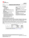 UC2625-EP www.ti.com .................................................................................................................................................................................................. SLUS802 – MARCH 2008 BRUSHLESS DC MOTOR CONTROLLER FEATURES 1 • • • • • (1) Controlled Baseline – One Assembly Site – One Test Site – One Fabrication Site Extended Temperature Performance of –55°C to 125°C Enhanced Diminishing Manufacturing Sources (DMS) Support Enhanced Product-Change Notification Qualification Pedigree (1) Component qualification in accordance with JEDEC and industry standards to ensure reliable operation over an extended temperature range. This includes, but is not limited to, Highly Accelerated Stress Test (HAST) or biased 85/85, temperature cycle, autoclave or unbiased HAST, electromigration, bond intermetallic life, and mold compound life. Such qualification testing should not be viewed as justifying use of this component beyond specified performance and environmental limits. • • • • • • • • • • • Drives Power MOSFETs or Power Darlingtons Directly 50-V Open Collector High-Side Drivers Latched Soft Start High-speed Current-Sense Amplifier with Ideal Diode Pulse-by-Pulse and Average Current Sensing Over-Voltage and Under-Voltage Protection Direction Latch for Safe Direction Reversal Tachometer Trimmed Reference Sources 30 mA Programmable Cross-Conduction Protection Two-Quadrant and Four-Quadrant Operation DESCRIPTION/ORDERING INFORMATION The UC2625 motor controller integrates most of the functions required for high-performance brushless dc motor control into one package. When coupled with external power MOSFETs or Darlingtons, this device performs fixed-frequency PWM motor control in either voltage or current mode while implementing closed loop speed control and braking with smart noise rejection, safe direction reversal, and cross-conduction protection. Although specified for operation from power supplies between 10 V and 18 V, the UC2625 can control higher voltage power devices with external level-shifting components. The UC2625 contains fast, high-current push-pull drivers for low-side power devices and 50-V open-collector outputs for high-side power devices or level shifting circuitry. The UC2625 is characterized for operation over the military temperature range of –55°C to 125°C. ORDERING INFORMATION (1) TA –55°C to 125°C (1) (2) ORDERABLE PART NUMBER TOP-SIDE MARKING PDIP – N UC2625MNEP UC2625EP SOIC – DW UC2625MDWREP UC2625EP PACKAGE (2) For the most current package and ordering information, see the Package Option Addendum at the end of this document, or see the TI website at www.ti.com. Package drawings, thermal data, and symbolization are available at www.ti.com/packaging. 1 Please be aware that an important notice concerning availability, standard warranty, and use in critical applications of Texas Instruments semiconductor products and disclaimers thereto appears at the end of this data sheet. PRODUCTION DATA information is current as of publication date. Products conform to specifications per the terms of the Texas Instruments standard warranty. Production processing does not necessarily include testing of all parameters. Copyright © 2008, Texas Instruments Incorporated Copyright © 2008, Texas Instruments Incorporated UC2625-EP SLUS802 – MARCH 2008 .................................................................................................................................................................................................. www.ti.com Typical Application +15 V +5 V TO HALL SENSORS VREF 100 nF 100 nF 20 m F 3 kW ROSC 33 kW 10 kW 2 2N3904 10 W 19 11 22 DIR 3 kW 1k 17 1 28 4 kW 18 UC3625 14 27 13 25 2200 pF COSC TO MOTOR TO OTHER CHANNELS 10 W 15 REQUIRED FOR BRAKE AND FAST REVERSE TO OTHER CHANNELS 12 BRAKE 2N3906 IRF9350 16 6 100 nF + 100 m F 3 kW + 20 m F 10 kW QUAD VMOTOR IRF532 20 21 26 3 24 23 8 9 10 4 5 7 100 nF 5 nF 3 nF CT 68 kW RT 10 kW FROM HALL SENSORS 100 nF 2 nF 51 kW 5 nF 2 nF REQUIRED FOR AVERAGE CURRENT SENSING 240 W 240 W 0.02 W RS 0.02 W RD 2 nF VREF ABSOLUTE MAXIMUM RATINGS (1) over operating free-air temperature range (unless otherwise noted) VALUE VCC PWR VCC UNIT 20 Supply voltage 20 PWM IN –0.3 to 6 E/A IN(+), E/A IN(–) –0.3 to 12 ISENSE1, ISENSE2 –1.3 to 6 OV-COAST, DIR, SPEED-IN, SSTART, QUAD SEL H1, H2, H3 –0.3 to 8 –0.3 to 12 PU Output Voltage –0.3 to 50 PU +200 continuous PD ±200 continuous E/A ±10 Output current ISENSE –10 TACH OUT (1) 2 mA ±10 VREF TJ V –50 continuous Operating temperature range –55 to 125 °C Currents are positive into and negative out of the specified terminal. Submit Documentation Feedback Copyright © 2008, Texas Instruments Incorporated Product Folder Link(s) :UC2625-EP UC2625-EP www.ti.com .................................................................................................................................................................................................. SLUS802 – MARCH 2008 CONNECTION DIAGRAM A. E/A IN(+) 1 28 E/A IN(-) VREF 2 27 E/A OUT ISENSE 3 26 PWM IN ISENSE1 4 25 RC-OSC ISENSE2 5 24 SSTART DIR 6 23 OV-COAST SPEED-IN 7 22 QUAD SEL H1 8 21 RC-BRAKE H2 9 20 TACH-OUT H3 10 19 VCC PWR VCC 11 18 PUA PDC 12 17 PUB PDB 13 16 PUC PDA 14 15 GND This pinout applies to the SOIC (DW) package. Submit Documentation Feedback Copyright © 2008, Texas Instruments Incorporated Product Folder Link(s) :UC2625-EP 3 UC2625-EP SLUS802 – MARCH 2008 .................................................................................................................................................................................................. www.ti.com ELECTRICAL CHARACTERISTICS Unless otherwise stated, these specifications apply for: TA = 25°C; Pwr VCC = VCC = 12 V; ROSC = 20 kΩ to VREF; COSC = 2 nF; RTACH = 33 kΩ; CTACH = 10 nF; and all outputs unloaded. TA = TJ. PARAMETER TEST CO