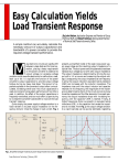 Easy Calculation Yields Load Transient Response By John Betten, Application Engineer and Member of Group Technical Staff, and Robert Kollman, Distinguished Member of Technical Staff, Texas Instruments, Dallas A simple method can accurately calculate the necessary amount of output capacitance and bandwidth of a power converter to provide the required voltage transient performance. presents a simplified model of the open-loop power supply power stage and the resulting output impedance of a typical filter. The buck power switching elements have been replaced by a voltage source with zero output impedance. The output impedance is determined by driving the output with a 1-A ac source and measuring the output voltage. Consequently, the output impedance at low frequency is set by the output inductor’s equivalent series resistance (ESR) and increases with the inductor impedance. The impedance rises until the output inductor and capacitor resonate. At this frequency, the magnitude of the impedance is determined by the Q of the circuit and can be many times the impedance of the filter elements. Once past resonance, the output impedance drops with increasing frequency until the capacitor’s ESR is reached. Finally, at higher frequencies, there is a parasitic or equivalent series inductance (ESL) in the capacitor that causes the impedance to increase. From Fig. 1, the output-voltage variation to a rapid load step can be quickly estimated, neglecting any electronic circuits can rapidly shift between a sleep state and full load operation, placing a heavy requirement on the power converter to stabilize its output voltage. An excessive voltage variation could cause the electronics to malfunction, reset, latch up or fail. It is typically the function of the power converter’s output capacitance to provide output voltage holdup during any heavy load steps. The amount of capacitance placed on the converter’s output often is miscalculated, increasing overall cost if too much capacitance is used and compromising system performance if too little is used. In addition, the effect of the output capacitance is frequently overlooked, and too much effort is spent trying to increase the converter’s bandwidth to improve the load transient response. Quite simply, the power supply’s voltage variation to a load transient is its peak output impedance (in the frequency domain) times the change in load current. Fig. 1 M E1 ++ - - LOUT ResrL 4.7 uH 0.015 0 10 COUT 0 100 uF -10 0.005 1 Aac + 0 Adc - I1 dB Ohms ResrC Lesl -20 LOUT -30 COUT 2 nH -40 0 0 Lesl ResrL -50 100 Hz VDB (R8:2) 1.0 KHz 10 KHz Frequency 100 KHz ResrC 1.0 MHz Fig. 1. Simplified voltage-mode buck power stage model and output impedance. Power Electronics Technology February 2005 40 www.powerelectronics.com G1 10 COUT 100 uF ResrC 0.005 1 Aac 0 Adc + - 0 I1 -10 dB Ohms 0 ++ - - TRANSIENT PERFORMANCE 0 -20 Cout -30 Lesl Lesl -40 2 nH ResrC -50 100 Hz 1.0 KHz 0 10 KHz 100 KHz Frequency 1.0 MHz Fig. 2. Simplified current-mode buck power stage model and output impedance. the effect of any feedback network. If the load step has a rate of rise much greater than one divided by the filter resonant frequency, the filter characteristic impedance sets the maximum impedance and the voltage variation in the open circuit case is just Zout × Istep, where: The step-load repetition rate may play an important role and needs to be identified. If the pulse-load repetition rate is equal to the resonance frequency of the output filter, then the Q of the filter will make the output impedance much greater than Zout defined in Equation 1 and a rather large voltage variation can result. If the repetition rate is at a rapid rate and is above the bandwidth of the power supply, the ESL sets the maximum output impedance. However in Zout = Lout/C out (1) Need More Power From Your Solid State Relay? Introducing Clare’s New Power Family This unique family of 1-Form-A high power Solid State Relays (SSRs) combines Clare’s proven optical isolation with IXYS advanced power MOSFET devices to deliver the industry’s highest power MOSFET based SSRs. The combination of low on resistance and high load current handling capabilities makes these relays suitable for a variety of high performance switching applications. As with all Clare SSRs, they are ideal EMR replacements and offer higher reliability, lower drive current, no contact bounce and peak performance in the harshest shock, vibration and magnetic environments. Features: Applications: • Solid State Reliability • Handle loads up to 15Arms • Voltage ratings from 60V - 1000V • Low On Resistance • Compact i4-PAC™ Package • Industry Standard 4-Pin SIP Package • Low input control current ( 10mA) • UL 508 Approval Pending • Motor controls • Power Supplies • Robotics • Medical equipment • Consumer appliances • Industrial control • Aerospace/Defense Specifications for i4-PAC™, ISOPLUS264, and Power SIP relays Part Number Output Blocking Load On Type Voltage Current Resistance (VP) (Arms) (Ohms) TON/TOFF (ms) CPC1908J AC/DC 60 8 0.3 20/5 CPC1786J DC 1000 1.5 1.5 20/5 i4-PAC™ CPC1709J DC 60 15 15 0.05 25/10 ISOPLUS264 CPC1988J AC/DC 1000 1000 1.5 2.5 25/10 ISOPLUS264 0.18 18 10/5 Power SIP CPC1981Y AC/DC Switching Speeds Package i4-PAC™ Listed above are 5 of the 29 different Power Relay Products. Visit Clare’s complete product listing below. 78 Cherry Hill Drive, Beverly, MA 978-524-6768 www.clare.com CIRCLE 232 on Reader Service Card or freeproductinfo.net/pet Power Electronics Technology February 2005 42 www.powerelectronics.com TRANSIENT PERFORMANCE 7 60 6 5 Peaking dB Ohms and dB gain 40 Loop gain 0 4 3 2 1 Z OUT open loop 0 -40 0 20 40 60 80 100 Phase Margin Z OUT closed loop Fig. 4. Good phase margin reduces peaking at crossover. -80 100 Hz 1.0 KHz 10 KHz Frequency 100 KHz have as a constant current source feeding the output filter capacitor, negating its effect in the ac model. At low freque