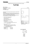 TLP183 TOSHIBA Photocoupler InGaAs Infrared LED & Photo Transistor TLP183 Office Machine Programmable Controllers AC Adapter I/O Interface Board Unit: mm TLP183 consist of a photo transistor optically coupled to an InGaAs infrared emitting diode. TLP183 is a low input type phototransistor coupler that housed in the very small and thin SO6 package. It is guaranteed wide operating temperature (Ta = -55 to 125 ˚C) and high isolation voltage (3750Vrms). TLP183 is smaller than DIP package; it’s suitable for high-density surface mounting applications such as programmable controllers • Collector−emitter voltage: 80V (min) • Current transfer ratio: 50% (min) Rank GB: 100% (min) • Isolation voltage: 3750Vrms (min) • Operation Temperature:-55 to 125 ˚C • Safety Standards UL recognized: UL1577, File No. E67349 cUL approved: CSA Component Acceptance Service No. 5A File No. E67349 • Option (V4) type - JIETA - TOSHIBA 11-4M1S Weight: 0.08 g (Typ.) VDE approved: DIN EN60747-5-5, File No. 40009347 • JEDEC (Note): When a EN60747-5-5 approved type is needed, Please designate “Option(V4)” Construction mechanical rating Creepage distance : 5.0 mm(min) Clearance : 5.0 mm(min) Insulation thickness : 0.4 mm(min) 1 Pin Configuration 2013-9-11 TLP183 Current Transfer Ratio (Unless otherwise specified, Ta = 25°C) Current Transfer Ratio Rank (Note1) Blank Y IC / I F Test Condition IF = 5 mA, VCE = 5 V IF = 0.5 mA, VCE = 5 V IF = 5 mA, VCE = 5 V Marking Of Classification Min Max 50 600 50 150 YE 100 300 GR 100 600 GB 200 600 BL 75 150 Y+ 100 200 G 150 300 G+ 200 400 B Blank, YE, GR, GB, BL, Unit Y+, G, G+, B IF =0.5 mA, VCE = 5 V GR IF = 5 mA, VCE = 5 V IF =0. 5 mA, VCE = 5 V GB IF = 5 mA, VCE = 5 V IF = 0.5 mA, VCE = 5 V BL IF = 5 mA, VCE = 5 V IF = 0.5 mA, VCE = 5 V YH GRL GRH BLL IF = 0.5 mA, VCE = 5 V IF = 0.5 mA, VCE = 5 V IF = 0.5 mA, VCE = 5 V IF =0.5 mA, VCE = 5 V % Note1: Specify both the part number and a rank in this format when ordering (e.g.) rank GB: TLP183 (GB,E For safety standard certification, however, specify the part number alone. (e.g.)TLP183 (GB,E: TLP183 2 2013-9-11 TLP183 Absolute Maximum Ratings (Unless otherwise specified, Ta = 25°C) Characteristic Symbol Rating Unit IF 50 mA ΔIF / ΔTa -1.5 mA / °C 1 A Input forward current Detector LED Input forward current derating (Ta ≥ 90°C) Note Input forward current (Pulsed) IFP (Note2) Input reverse voltage VR 5 V Junction temperature Tj 125 °C Collector−emitter voltage VCEO 80 V Emitter−collector voltage VECO 7 V Collector current IC 50 mA Collector power dissipation PC 150 mW ΔPC / ΔTa -1.5 mW / °C Tj 125 °C Operating temperature range Topr −55 to 125 °C Storage temperature range Tstg −55 to 125 °C Lead soldering temperature Tsol 260 (10s) °C Total package power dissipation PT 200 mW ΔPT / ΔTa -2.0 mW / °C 3750 Vrms Collector power dissipation derating (Ta ≥ 25°C) Junction temperature Total package power dissipation derating (Ta ≥ 25°C) Isolation voltage BVS (Note 3) Note: Using continuously under heavy loads (e.g. the application of high temperature/current/voltage and the significant change in temperature, etc.) may cause this product to decrease in the reliability significantly even if the operating conditions (i.e. operating temperature/current/voltage, etc.) are within the absolute maximum ratings. Please design the appropriate reliability upon reviewing the Toshiba Semiconductor Reliability Handbook (“Handling Precautions”/“Derating Concept and Methods”) and individual reliability data (i.e. reliability test report and estimated failure rate, etc). Note 2: Pulse width ≤ 100 μs,f=100 Hz Note 3: AC, 1min., R.H.≤ 60%, Device considered a two terminal device: LED side pins shorted together and detector side pins shorted together. 3 2013-9-11 TLP183 Individual Electrical Characteristics (Unless otherwise specified, Ta = 25°C) Detector LED Characteristic Symbol Test Condition Min Typ. Max Unit 1.1 1.25 1.4 V Input forward voltage VF IF = 10 mA Input reverse current IR VR = 5 V - - 5 μA Input capacitance CT V = 0V, f = 1 MHz - 30 - pF Collector−emitter breakdown voltage V(BR) CEO IC = 0.5 mA 80 - - V Emitter−collector breakdown voltage V(BR) ECO IE = 0.1 mA 7 - - V VCE = 48 V - 0.01 0.08 μA VCE = 48 V, Ta = 85°C - 2 50 μA V = 0V, f = 1 MHz - 10 - pF Unit Dark current IDARK Collector-emitter capacitance CCE Coupled Electrical Characteristics (Unless otherwise specified, Ta = 25°C) Characteristic Symbol Test Condition Saturated current transfer ratio Collector−emitter saturation voltage Off−state collector current IC / IF IC / IF (sat) VCE (sat) IC (off) Typ. Max 50 - 600 Rank GB 100 - 600 IF = 0.5 mA, VCE = 5 V Rank GB 50 - 600 100 - 600 - 60 - 30 - - IF = 5 mA, VCE = 5 V Current transfer ratio MIn IF = 1 mA, VCE = 0.4 V Rank GB % % IC = 2.4 mA, IF = 8 mA - - 0.3 IC = 0.2 mA, IF = 1 mA Rank GB - 0.2 - - - 0.3 VF = 0.7V, VCE = 48 V - - 10 μA Min Typ. Max Unit - 0.8 - pF - Ω V Isolation Characteristics (Unless otherwise specified, Ta = 25°C) Characteristic Total capacitance (input to output) Isolation resistance Symbol CS RS Test Condition VS = 0V, f = 1 MHz VS = 500 V, R.H. ≤ 60% AC, 1 minute Isolation voltage BVS 1×10 12 10 14 3750 - - AC, 1 second, in oil - 10000 - DC, 1 minute, in oil - 10000 - 4 Vrms Vdc 2013-9-11 TLP183 Switching Characteristics (Unless otherwise specified, Ta = 25°C) Characteristic Symbol Rise time tr Fall time tf Turn−on time ton Test Condition VCC = 10 V, IC = 2 mA RL = 100Ω Min Typ. Max - 2 - - 3 - - 3 - Turn−off time toff - 3 - Turn−on time ton - 0.4 - Storage time ts - 20 - Turn−off time toff - 35 - Turn−on time ton - 4 - - 7 - - 30 - Storage time ts Turn−off time toff Fig. 1 RL = 1.9 kΩ VCC = 5 V, IF = 16 mA (Fig.1) RL = 1.9 kΩ VCC = 5 V, IF = 16 mA (Fig.1) μs μs Switching time test circuit IF IF Unit RL VCC VCE VCE tton ON 5 tS VCC 4.5V 0.5V off ttOFF 2013-9-11 TLP183 Characteristics Curves (Note) P C - Ta PC Colle