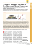 Field-Effect Transistors Built from All Two-Dimensional Material Components Tania Roy,†,‡,§ Mahmut Tosun,†,‡,§ Jeong Seuk Kang,†,‡,§ Angada B. Sachid,† Sujay B. Desai,†,‡,§ Mark Hettick,†,‡,§ Chenming C. Hu,† and Ali Javey†,‡,§,* ARTICLE Terms of Use † Electrical Engineering and Computer Sciences, University of California, Berkeley, California 94720, United States, ‡Materials Sciences Division, Lawrence Berkeley National Laboratory, Berkeley, California 94720, United States, and §Berkeley Sensor and Actuator Center, University of California, Berkeley, California 94720, United States ABSTRACT We demonstrate field-effect transistors using heterogeneously stacked two-dimensional materials for all of the components, including the semiconductor, insulator, and metal layers. Specifically, MoS2 is used as the active channel material, hexagonal-BN as the top-gate dielectric, and graphene as the source/ drain and the top-gate contacts. This transistor exhibits n-type behavior with an ON/OFF current ratio of >106, and an electron mobility of ∼33 cm2/V 3 s. Uniquely, the mobility does not degrade at high gate voltages, presenting an important advantage over conventional Si transistors where enhanced surface roughness scattering severely reduces carrier mobilities at high gate-fields. A WSe2MoS2 diode with graphene contacts is also demonstrated. The diode exhibits excellent rectification behavior and a low reverse bias current, suggesting high quality interfaces between the stacked layers. In this work, all interfaces are based on van der Waals bonding, presenting a unique device architecture where crystalline, layered materials with atomically uniform thicknesses are stacked on demand, without the lattice parameter constraints. The results demonstrate the promise of using an all-layered material system for future electronic applications. KEYWORDS: layered materials . transition metal dichalcogenides . graphene . hexagonal boron nitride . MoS2 . heterolayers T wo-dimensional (2-D) material systems have aroused immense interest in research due to the possibility of obtaining thickness uniformity down to a monolayer without surface dangling bonds. Graphene (Gr), as a two-dimensional semimetal has been studied extensively for the purpose of analog and digital applications. However, the absence of an intrinsic bandgap in Gr overshadows its attractive properties of small quantum capacitance and extremely high mobilities in scaled transistors.13 Transition metal dichalcogenides (TMDC), with an inherent bandgap, tunable by composition and the number of layers, have ignited significant interest and promise over the past few years for both ROY ET AL. electronic and optoelectronic applications.47 For instance, MoS2 and WSe2 have been used to obtain excellent switching current ratios (up to 108), and ideal subthreshold slope (60 mV/decade).812 One of the primary advantages of layered materials is, in principle, the absence of dangling bonds, which rules out performance degradation due to interface states.13 Uniquely, heterostructures using two-dimensional materials would not suffer from constraints of lattice mismatch. A layered material can be seamlessly transferred onto another, and bond by van der Waal's (vdW) forces, leaving the interface pristine. An ideal transistor structure would, therefore, be composed of a TMDC material as the channel, with a VOL. 8 ’ NO. 6 ’ * Address correspondence to ajavey@eecs.berkeley.edu. Received for review March 28, 2014 and accepted April 29, 2014. Published online April 29, 2014 10.1021/nn501723y C 2014 American Chemical Society 6259–6264 ’ 2014 6259 www.acsnano.org ARTICLE Figure 1. Schematics (not to scale) of the fabrication process steps (top) and the corresponding optical microscope images (bottom) of a representative all-2D FET. (i) Transfer of large-area CVD grown bilayer graphene onto a Si/SiO2 substrate. (ii) Bilayer graphene patterning by O2 plasma to define S/D contacts. (iii) Transfer of a few-layer MoS2 flake on top of the patterned grahene S/D contacts. (iv) Transfer of a few-layer h-BN gate dielectric, overlapping the MoS2 channel. (v) Transfer of a multilayer graphene top gate electrode. (vi) Optical microscope image of a fully fabricated all-2D transistor. Scale bar is 5 μm for all images. layered insulator as the gate dielectric, and layered metallic source/drain and gate contacts. Atomically thin p-n diodes have been reported, using MoS2 and WSe2 monolayers as the electron and hole conducting layers, respectively.1416 These vdW heterostructure diodes have exhibited excellent rectification behavior owing to the abruptness of the 2D2D interface, with ideality factor of 1.2. MoS2 transistors with graphene source/drain contacts have been used to fabricate flexible, transparent transistors.17 Also, flexible and transparent MoS2 transistors with graphene source/ drain contacts were fabricated with h-BN as back gate dielectric, demonstrating negligible hysteresis in transport characteristics.18 Heterostructures with 2D materials have been used for memory applications and tunnel transistors. Gr/MoS2 heterostructures have been used for nonvolatile memory cells.19 Tunnel transistors fabricated with Gr/hexagonal-BN (h-BN)/Gr and Gr/MoS2/Gr open the prospect of obtaining steep transistors with such an architecture.20 Vertical Gr/hBN/Gr heterostacks have also exhibited negative differential resistance, allowing the prospect of vdW heterostructures in analog electronics.21 Gr/WS2/Gr heterostructures have demonstrated strong lightmatter interactions, leading to enhanced photon absorption and electronhole creation.22 This has opened the possibility of flexible photovoltaic devices with layered 2D materials. Heterobilayers of WSe2 and MoS2 have shown strong interlayer coupling with spatially direct absorption and spatially indirect emission, exhibiting yet another unique property of TMDC heterostructures. TMDC heterojunct