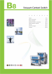 B8 Vacuum Contact Switch C O N T E Features N T S B8-2 Structure & Accessories B8-6 Rating & Specification B8-8 Application & Selection / Characteristics B8-10 Ordering Information & Dimension B8-12 Dimension B8-14 Control Circuit Diagram B8-20 Certificates B8-29 Vacuum Contactor Switch _ Feature Draw-Out Type VITZRO TECH Vacuum Contact Switch is a miniature, high-performance HV VCS. It is highly reliable and stable and easy to use. There are 2 types fixed excitation mode and instantaneous excitation mode that do not require maintenance. It is a switch for high voltage motor, transformer and condenser circuits and it contributed greatly to the modernization and simplification of the equipment. B8-4 VITZROTECH Standard Draw-Out Type B8 ▶ External Draw-Out Type It is compact and light-weighted so 3 of them can be loaded based in the circuit breaker within the cubicle and it can save the space. In addition, it is suitable to install an enclosed panel. ▶ Individual Draw-Out Type The inner width is smaller than that of the standard draw-out type. A potential transformer and power fuse cannot be installed. ▶ Mechanical Interlock Mounting Type It is used for「commercial」and「emergency」power transfer and「power failure」and「reverse power」transfer. It performs a mechanical interlock of 2 fixed-type contact switches using a connecting bar. (However, use VTS when disconnecting is required.) ▶ Vacuum Contact Switch B8-5 Vacuum Contact Switch It is compatible with draw-out type power fuse. It can be installed with up to 2 potential transformers. A draw-out unit is same as the fuse-mounting type. Configuration Power fuse Protective cover Fuse check Molded case Potential transformer(inside) Counter Control circuit connector Draw-out grip Grounding contact Stopper pin Bus Barrier Draw-out unit Guide rail Earth B8-6 VITZROTECH Vacuum Contact Switch Accessories Our VCS performs the short circuit protection at the power fuse and the general load switching is performed at high-voltage VCS. It is an optimal product as a combination starter. It can install up to 2 short-circuit potential transformers and it is fully equipped with the draw-out unit. Standard Accessories Item Name Quantity Purpose Remarks Manual Closing Handle 1ea/set For manual closing Mounted when it is an instantaneous excitation mod Control Circuit Connec ting Cable 1ea/set For power connection Standard Product1.5m The following accessories are supplied based on the requirements of the demanding part. Item Name Specification/Rating Position Detector Condenser Trip Device AC 100/110V Vacuum Checker AC 110V Mounted on the Body Power Fuse(PF) Cam and Limit S/W is attached to connecting main unit and draw-out unit and the wire is directly connected to the Limit S/W 3.6kV 5~250A 40kA 7.2kV 5~250A40kA Single-Phase full wave rectifier mounted with a surge absorber Silicon Rectifier(Si-Rf) For both AC100~220V Potential Transformer(PT) 3300V/110V 100VA 6600V/110V 100VA PF Fuse mounted, Rating 3.6/7.2kV. 1A, 40kA Counter 5Digits(0-99999) Mechanical counter Power Fuse Melting Detector Switch(1C contact) mounted Refer to connection diagram Vacuum Contact Switch B8-7 Vacuum Contact Switch Mounted outside the Body Draw-Out Unit Limit Switch is operated at 「connecting」and「testing/ disconnecting」positions. B8 Remarks Individual Type Structure Type Fixed Type Draw-Out Type Fixed Excitation Mode KVP-322E KVP-342E Instantaneous Excitation Mode KVS-342E KVS-625E KVS-645E KVSD-322E KVSD-342E KVSD-625E KVSD-645E KVP-322E KVP-625E 3.3 / 3.6 KVP-645E KVPD-322E KVPD-342E KVPD-625E KVPD-645E 6.6 / 7.2 3.3 / 3.6 6.6 / 7.2 Rated Voltage kV Rated Current A Rated Frequency Hz 50, 60 50, 60 Short Circuit Breaking Current kA 4 4 2sec kA 4 4 0.5cycle kA Impulse kV *45 **60 *45 **60 Power Frequency kV 10 20 10 20 Short Time Current Endurance Withstand Voltage 200 400 40 50 Fixed Excitation 10,000 Mode times 10,000 Excitation Mode times 10,000 Electrical times Mechanical Instantaneous Closing Coil 200 400 40 50 200 400 40 200 50 400 40 250 250 25 25 25 25 50 V DC, 24, 48/50, 100/110, 115/125, 200/220, 230/250, ***AC(Single phase)100/110, 200/220 V DC, 24, 48/50, 100/110, 115/125, 200/220, 230/250, ***AC(Single phase)100/110, 200/220 Operating Voltage Trip Coil (Instantaneous Excitation Mode) 2a2b Auxiliary Contact Power Fuse Rated Voltage kV - - - - - - - - Rated Current - - - - - - - - A Rated Breaking kA Current Weight(Body) - - kW 750 1500 1500 3000 750 1500 1500 3000 Transformer kVA 1000 2000 2000 4000 1000 1000 2000 4000 Motor Power Load Capacity 2a2b Condenser kVA 1000 2000 2000 4000 1000 2000 2000 4000 Fixed Excitation Mode R 22 23 22 23 28 29 28 29 Applied Draw-Out Unit Type kg UVSDE-3-2 UVSDE-3-4 UVSDE-6-2 UVSDE-6-4 (Note) (1) The impulse withstand voltage between phases of in-phase main circuit marked with * is 30kV. (2) The impulse withstand voltage between phases of in-phase main circuit marked with ** is 45kV. (3) When the operating voltage (single-phase AC) is marked as ***, a silicon rectifier should be installed on the VC. (4) 2 operating and potential transformers can be installed on the draw-out type VC or VC with power fuse. (5) The maximum weight is measured with 2 operating transformers installed and when the power fuse in the VC is the maximum rated current. B8-8 VITZROTECH Vacuum Contact Switch Standard Type Power Fuse When not installed KVN-322E KVN-342E KVR-342E KVR-625E 400 40 KVR-645E 6.6 / 7.2 3.3 / 3.6 200 KVN-645E 200 VVCI-625E-6 KVPM-322E KVPM-342E KVPM-625E KVPM-645E KVSM-322E KVSM-342E KVSM-625E KVSM-645E 6.6 / 7.2 400 200 3.3 200 6.6 400 50, 60 50, 60 50, 60 4 4 4 4 4 4 50 40 50 40 40 200 400 40 50 50 *45 **60 60 *45 **60 10 20 20 10 20 250 250 250 25 25 25 25 25 25 DC, 24, 48/50, 100/110, 115/125, 200/220, 230/250, ***AC(Single phase)100/110, 200/220 DC, 24, 48/50, 100/110, 115/125, 200/220, 230/250, ***AC(Single phase)100/110, 200/220 2a2b 2a2b 2a2b - - - - - - - - - - - - - - - - - - - - - 750 1500 1500 3000 15