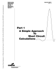 Courtesy of Steven Engineering, Inc. Ÿ 230 Ryan Way, South San Francisco, CA, 94080-6370 Ÿ Main Office: (650) 588-9200 Ÿ Outside Local Area: (800) 258-9200 Ÿ www.stevenengineering.com Engineering Dependable Protection For An Electrical Distribution System Bulletin EDP-1 (2004-1) Part 1 A Simple Approach To Short Circuit Calculations Bussmann Courtesy of Steven Engineering, Inc. Ÿ 230 Ryan Way, South San Francisco, CA, 94080-6370 Ÿ Main Office: (650) 588-9200 Ÿ Outside Local Area: (800) 258-9200 Ÿ www.stevenengineering.com Electrical Distribution System Basic Considerations of Short-Circuit Calculations Why Short-Circuit Calculations Several sections of the National Electrical Code relate to proper overcurrent protection. Safe and reliable application of overcurrent protective devices based on these sections mandate that a short circuit study and a selective coordination study be conducted. Sources of short circuit current that are normally taken under consideration include: - Utility Generation - Local Generation - Synchronous Motors and - Induction Motors These sections include, among others: 110-9 Interrupting Rating 110-10 Component Protection 230-65 Service Entrance Equipment 240-1 Conductor Protection 250-95 Equipment Grounding Conductor Protection 517-17 Health Care Facilities - Selective Coordination Capacitor discharge currents can normally be neglected due to their short time duration. Certain IEEE (Institute of Electrical and Electronic Engineers) publications detail how to calculate these currents if they are substantial. Asymmetrical Components Short circuit current normally takes on an asymmetrical characteristic during the first few cycles of duration. That is, it is offset about the zero axis, as indicated in Figure 1. Compliance with these code sections can best be accomplished by conducting a short circuit study and a selective coordination study. The protection for an electrical system should not only be safe under all service conditions but, to insure continuity of service, it should be selectively coordinated as well. A coordinated system is one where only the faulted circuit is isolated without disturbing any other part of the system. Overcurrent protection devices should also provide shortcircuit as well as overload protection for system components, such as bus, wire, motor controllers, etc. To obtain reliable, coordinated operation and assure that system components are protected from damage, it is necessary to first calculate the available fault current at various critical points in the electrical system. Once the short-circuit levels are determined, the engineer can specify proper interrupting rating requirements, selectively coordinate the system and provide component protection. C U R R E N T TIME Figure 1 In Figure 2, note that the total short circuit current Ia is the summation of two components - the symmetrical RMS current IS, and the DC component, IDC. The DC component is a function of the stored energy within the system at the initiation of the short circuit. It decays to zero after a few cycles due to I2R losses in the system, at which point the short circuit current is symmetrical about the zero axis. The RMS value of the symmetrical component may be determined using Ohm`s Law. To determine the asymmetrical component, it is necessary to know the X/R ratio of the system. To obtain the X/R ratio, the total resistance and total reactance of the circuit to the point of fault must be determined. Maximum thermal and mechanical stress on the equipment occurs during these first few cycles. It is important to concentrate on what happens during the first half cycle after the initiation of the fault. General Comments on Short-Circuit Calculations Short Circuit Calculations should be done at all critical points in the system. These would include: - Service Entrance - Panel Boards - Motor Control Centers - Motor Starters - Transfer Switches - Load Centers Normally, short circuit studies involve calculating a bolted 3-phase fault condition. This can be characterized as all three phases “bolted” together to create a zero impedance connection. This establishes a “worst case” condition, that results in maximum thermal and mechanical stress in the system. From this calculation, other types of fault conditions can be obtained. 3 Courtesy of Steven Engineering, Inc. Ÿ 230 Ryan Way, South San Francisco, CA, 94080-6370 Ÿ Main Office: (650) 588-9200 Ÿ Outside Local Area: (800) 258-9200 Ÿ www.stevenengineering.com Electrical Distribution System Basic Considerations of Short-Circuit Calculations Interrupting Rating, Interrupting Capacity and Short-Circuit Currents Interrupting Rating can be defined as “the maximum short-circuit current that a protective device can safely clear, under specified test conditions.” Interrupting Capacity can be defined as “the actual short circuit current that a protective device has been tested to interrupt.” The National Electrical Code requires adequate interrupting ratings in Sections 110-9 and 230-65. To accomplish this, study Figure 2, and refer to Table 8. IP = 115,450A Ia Ia = 66,500A IDC Is = 50,000A C U R R E N T TIME Is Section 110-9 Interrupting Rating. Equipment intended to break current at fault levels shall have an interrupting rating sufficient for the system voltage and the current which is available at the line terminals of the equipment. Ia - Asymmetrical RMS Current IDC - DC Component Section 230-65. Available Short-Circuit Current. Service Equipment shall be suitable for the short circuit current available at its supply terminals. Is - Symmetrical RMS Component IP - Instantaneous Peak Current Figure 2 Low voltage fuses have their interrupting rating expressed in terms of the symmetrical component of shortcircuit current, I S . They are given an RMS symmetrical interrupting rating at a specific power factor. This means that the fuse can interrupt any asymmetrical current associated with this rating. Thu