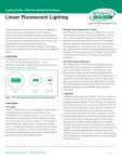 Lighting Guide – Efficient Lighting Technologies Linear Fluorescent Lighting Linear fluorescent lamps are the dominant type of lighting currently used in business applications. Recent advances in fluorescent lamps and electronic ballasts have created the opportunity for significant energy savings when replacing any prior generation of fluorescent lighting. Linear fluorescent lighting systems can be upgraded by installing High Performance T8 lamps and electronic ballasts in the existing fixtures or by installing new T5 or High Performance T8 lighting fixtures. Lamp Sizes Fluorescent lamp diameters are measured in increments of 1/8 of an inch. This number follows the letter “T” which signifies a tubular lamp. Therefore a T8 lamp is a tubular lamp that measures 8/8" (or 1") in diameter. 3.81cm (1.5") T12 2.54cm (1") T8 1.59cm (0.625") T5 Figure 1. The relative diameter of popular linear fluorescent lamps. Lamp Types T12 Lamps These 1.5" diameter lamps were the standard commercial and industrial fluorescent lamps for several decades. They are available in many lengths, including: 1, 2, 3, 4, 6, and 8 foot lengths, and are produced in many variations by numerous manufacturers. Two common versions of 4' T12 lamps are 40-watt lamps, and “energy-saver” 34-watt lamps. Energysaver T12 lamps reduce energy consumption and light output by about 15%. Although T12 lamps are sometimes powered by electronic ballasts (lighting transformers), they are typically powered by less efficient magnetic ballasts. Standard (First Generation) T8 Lamps Over the last few years, T8 lamps have replaced T12s as the standard fluorescent lamp for commercial lighting, as well as some industrial lighting. Compared with T12 lamps, these 1" diameter lamps offer improved performance including higher efficacy, better lumen maintenance and truer color rendering. Although T8 lamps can be operated on some magnetic ballasts, they are rarely installed with magnetic ballasts as they are designed to be powered by electronic ballasts. Electric ballasts further enhance the efficiency of T8 lamps and eliminate all lamp flicker. High Performance T8 Systems Often called “Super T8” these recently developed lamp and ballast systems offer performance levels higher than those achieved by standard T8 systems. The lamps offer higher efficacy levels, longer lamp life, and longer warranties than their standard counterparts. High performance T8 systems are available in versions that operate at a variety of system wattages, however, they all operate more efficiently than standard T8 systems. Selected carefully, Super T8 systems can provide dramatic savings when compared with other fluorescent technologies. T5 Systems T5 fluorescent lamps are 5/8" in diameter. They are constructed in metric lengths (45.2" for a nominal 4' lamp) and therefore not designed to directly replace 4' T12 or T8 lamps. T5 systems are often promoted as being the next step up in efficiency from T8 systems. For most applications, this is not true. T5 systems are no more efficient than standard T8 systems and are less efficient than High Performance T8 systems. However, because of the optical advantages obtained when using smaller diameter lamps, T5 lamps are very effectively used in special fixtures that shape light to deliver it greater distances, or to spread light across a surface (a ceiling, for example). T5 systems are available in standard and high output versions, and can be very useful for high ceiling applications such as gymnasium and warehouse lighting. They also work very well in lighting fixtures specially designed to spread light evenly across ceilings and/or throughout a space. Efficiency Maine is a statewide effort to promote the more efficient use of electricity, help Maine residents and businesses reduce energy costs, and improve Maine’s environment. efficiencymaine.com • 866-376-2463 page 1 of 6 Linear Fluorescent Lighting High Performance T8 Systems Qualifying for Efficiency Maine Incentives The Efficiency Maine Business Program offers incentives for High Performance T8 (HPT8) lighting systems (sometimes referred to as “Super T8” systems) with electronic ballasts. The incentives are available for participants that are replacing older T12 systems, renovating spaces, or are planning a new construction project. HPT8 systems offer higher efficiency levels, longer lamp life, and longer lamp warranties than their standard counterparts. The systems are available in versions that operate at a variety of system wattages, however, they all operate more efficiently than standard T8 systems. Selected carefully, Super T8 systems can provide dramatic savings when compared with other fluorescent technologies. In order to qualify for an incentive, all HPT8 systems must include both a High Performance ballast and High Performance lamps. The ballasts and lamps must meet the Consortium for Energy Efficiency (CEE) specifications for High Performance Lighting Systems. For eligible High Performance T8 Lamp click here. For eligible electronic ballasts - 1 Lamp Systems click here. For eligible electronic ballasts - 2 Lamp Systems click here. For eligible electronic ballasts - 3 Lamp Systems click here. For eligible electronic ballasts - 4 Lamp Systems click here. Efficiency Maine is a statewide effort to promote the more efficient use of electricity, help Maine residents and businesses reduce energy costs, and improve Maine’s environment. efficiencymaine.com • 866-376-2463 page 2 of 6 Linear Fluorescent Lighting Incentives for Linear Fluorescent Lighting Efficiency Maine offers incentives for the following linear fluorescent lighting measures: Measure Code L10 – High Performance T8 Relamp and Reballast If the existing lighting fixtures are in good condition, a good option for T12 fixtures is to retrofit them by replacing the existing T12 lamps and ballasts with qualifying High Performance T8 lamps and electronic ballasts. This measure results in a 25 to 30