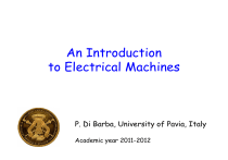 An Introduction to Electrical Machines P. Di Barba, University of Pavia, Italy Academic year 2011-2012 Contents Transformer • 1. An overview of the device • 2. Principle of operation of a single-phase transformer • 3. Power (three-phase) transformer, signal transformer, autotransformer Rotating electrical machines (REM) • 1. Ampère law, Faraday principle, Lorentz force • 2. An overview of REM • 3. Rotating magnetic field Asynchronous machine: induction motor Synchronous machine: alternator DC machine: commutator motor, dynamo Permanent magnet motor Stepping motor Transformer: static electrical machine operating in AC regime. It converts electric power into electric power, by varying the power factors (V,I) and keeping the power (approximately) constant. 1 : primary circuit (power in) 2 : secondary circuit (power out) Single-phase Three-phase Applications Power transformer • Production systems operate at a reduced voltage in order to decrease dielectric material size • Transmission systems operate at a low current in order to decrease conducting material size • User systems operate at a low voltage in order to increase safety Signal (and power) transformer • Adapts the voltage of two systems to be connected • Adapts the impedance of two systems to be connected • Couples two systems, keeping them electrically disconnected Step up transformer: increases V and decreases I Step down transformer: decreases V and increases I Power range: from 1 VA to 1000 MVA Voltage range: from 1 V to 400 kV Basically, a transformer is composed of: • a magnetic circuit; • (at least) two magnetically-coupled electric circuits. Single-phase power transformer (25 Hz < f < 400 Hz) 1 2 limb yoke 1 2 windings high-voltage terminal lamination package (core) low-voltage terminal A<25 kVA natural cooling A>25 kVA forced cooling Three-phase power transformer (f=50 Hz) : three pairs of windings a b c Three primary windings 1a,1b,1c and three secondary windings 2a,2b,2c Used connections: star-delta, delta-delta, delta-star. closed magnetic circuit Signal transformer single phase 20 Hz < f < 20 kHz 1 2 open magnetic circuit (f>20 kHz, core made of Fe2O3) Operating principle (ideal case) Model assumptions: infinite core permeability, zero losses in the magnetic circuit and in the two electric circuits. F I2 2 Z 1 I1 1: N1 turns 2: N2 turns Transformer equations 1 N1 V V , k 2 1 k N2 1 I I2 1 k A1 A 2 V1I1 V2 I 2 Transformer laws (ideal model) I No-load operation (I2=0) Let a sinusoidal voltage source v1(t) supply winding 1 Then, an infinitesimal magnetizing current I10 flows in winding 1 and gives rise to a magnetomotive force (mmf) Hopkinson law: magnetic flux N1 I10 F infinitesimal mmf infinitesimal reluctance non-infinitesimal sinusoidal flux Transformer laws (ideal model) II Flux F links both windings 1 and 2 Faraday-Lenz law: induced emf dF e1 N1 dt KVL e2 N 2 dF dt v1=-e1 , v2=-e2 In phasor notation: V 1 jN1 F V 2 jN 2 F In terms of RMS values, it turns out to be: V1 N1 k V2 N 2 transformer voltage law Primary circuit: supplied by V1 Secondary circuit: open circuited F 2 1 2 1 I10 Kirchhoff voltage law V1 E1 0 V2 E2 0 I10 magnetizing current Terminal marking: currents entering the marked terminals originate like fluxes in the magnetic core. Transformer laws (ideal model) III On-load operation Current I2 is delivered by winding 2 to load Z mmf N2I2 originates a secondary flux F2 opposing the primary flux F1 = FM , but V1 FM 4.44 N1 f cannot vary due to the applied primary voltage V1 Transformer laws (ideal model) IV Consequently, voltage source V1 is forced to deliver an additional current I1 to winding 1 in order to compensate the flux mismatch: N1I1-N2I2=N1I10=0 It turns out to be: I1 N 2 1 I 2 N1 k transformer current law Finally, the complex power conservation holds: V1 I1 V2 I 2 Vector diagram (Kapp diagram) A resistive-inductive load is assumed A more realistic model - 1 In a real transformer, power losses are not zero: P0=GV2 active power in the magnetic core (eddy current and hysteresis) Pc=RI2 active power in the electric circuits due to the Joule effect Moreover, the finite magnetic permeability of the core causes a non-zero magnetizing power: Q0=BV2 reactive power in the magnetic circuit of main flux (inside the core) QC=XI2 reactive power in the magnetic circuit of stray flux (outside the core) P0 and Q0 dominate in the no-load operation (measured in the open-circuit test) Pc and Qc dominate in the on-load operation (measured in the short-circuit test) A more realistic model - 2 As a consequence, in a real transformer: V1 is different from –E1 due to voltage drops caused by R and X of the windings F is not constant with respect to E1 because E1 varies with I1 for a given V1 V1 is different from kV2 due to on-load voltage drops I1 is different from I2/k due to no-load primary current A1 is different from A2 due to active and reactive power losses Transformer equations based on the ideal model are valid as a first approximation only A more realistic model - 3 main flux power loss (eddy currents, hysteresis) stray flux power loss (Joule effect) A more realistic model - 4 1 V 2 k V1 ZI 2 I1 1 I 2 Y V1 k 2 2 P P RI GV 1 2 2 1 Q1 Q 2 XI22 BV12 Z R jX Y G jB Primary winding admittance Secondary winding impedance A more realistic model - 5 Modified Kapp diagram Impedance adaption - 1 Problem: how to modify the value of an impedance Z to be connected at a terminal pair A-B ? V1 I1 Zk 2 Impedance adaption - 2 1 V 2 1 V1 1 1 V1 I1 I 2 k k Z k k2 Z Z k Signal transformer: frequency response - 1 Signal transformer: frequency response - 2 Xm Xc Voltage drop - 1 V V20 V2 1 V 1 V 20 V 2 ( R jX ) I 2 V2 R jX I 2 cos jI 2 sen k Voltage drop - 2 V V20 V2 RI 2 cos XI 2 sin Insulation transformer - 1 Measurement Insulation transformer - 2 Safety Insulation transformer - 3 Damping Auto-transformer V1 N 2 N1 k N2 V2 I1 N2 1 I 2 N 2 N1 k A1 V1I1 V2I2 A2 A Ad (V1 V2 ) I1 ( I 2 I1 )V2 Ad 1 A Rotating E