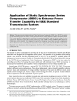 I J C T A, 8(5), 2015, pp. 2029-2036 © International Science Press Application of Static Synchronous Series Compensator (SSSC) to Enhance Power Transfer Capability in IEEE Standard Transmission System Aswathi Krishna D.* and M.R. Sindhu** Abstract: This paper presents implementation of Static Synchronous Compensator (SSSC) in an IEEE 5 bus system for real and reactive power flow control, to meet constraints on bus voltage magnitude, stability and thermal limits. This is made possible by appropriately controlling the magnitude and phase angle of injected voltage of series compensator. Simulation results obtained after performance study of SSSC in MATLAB/SIMULINK validate the effectiveness of the controller. The comparative study of the simulation results before and after compensation shows reduction in losses, overloading and improvement in bus voltage profile attained with SSSC compensation. Keywords: Static Synchronous Series Compensator, Real Power Flow Control, Reactive Compensation, Voltage stability, FACTS. 1. INTRODUCTION The demand on power consumption is growing day by day due to modernization. Smooth and efficient controllers were designed for the equipment in the system. The expansion or up gradation of the existing system is not preferred from the economical point of view [1]. As an attempt to optimally utilize the existing power system resources, Flexible AC Transmission System (FACTS) has been initiated [2]. Among all the FACTS devices implemented, Static Synchronous Compensator (SSSC) is the best option for controlling power flow by keeping the system stable and with minimum losses. SSSC can increase or decrease power transferred and is capable of series compensation as well as voltage regulation [3]. Several cases of FACTS devices – such as SVC [2], STATCOM [2], TCSC [2], TSSC [2] etc were studied in different system configurations. These show enhancement in power transfer capability, reduction in power losses and maintenance of voltage stability. Operation of the system in different modes needs separate control strategies [4]. Hence a unique control strategy for SSSC, to operate it under different modes is required to meet the requirement of power system. Many research works were published in steady state and dynamic modeling and control of SSSC. The control methods discussed are traditional PI/PID control [4], Automatic Voltage Control [2], Quantitative Feedback Theory (QFT) [5], Reactive Power Control [2], Adaptive Neuro Fuzzy Interference Controller (ANFIC) [6], Direct Power Control [2] etc. Each controller technique has its own advantages as well as disadvantages. This paper presents results of SSSC implementation in IEEE standard system. The paper is organized as follows:-Section 2 explains the specifications and characteristics of IEEE 5 bus system. Section 3 explains * Dept of Electrical and Electronics Engineering, Amrita School of Engineering, Coimbatore, Amrita Vishwa Vidyapeetham, Amrita University, India, Email: achu.akd.92@gmail.com ** Dept of Electrical and Electronics Engineering, Amrita School of Engineering, coimbatore, Amrita Vishwa Vidyapeetham, Amrita University, India, Email: sindhumadassery@gmail.com 2030 Aswathi Krishna D. and M.R. Sindhu in detail the control strategy of SSSC. Section 4 presents simulation results after the installation of SSSC in the IEEE standard 5 bus system. 2. TEST SYSTEM IEEE standard 5 bus system shown in Figure.1 is the selected test system. It consists of 2 generating plants, 3 load buses, 1 PV bus and 7 transmission lines [7]. Bus 1 is set as swing bus. Base kV and base MVA for the system is selected as 100kV and 100 MVA respectively. Therefore base impedance and base current are 100Ù and 1000A respectively. Bus data, Transmission line parameters and load flow analysis results in IEEE standard 5 bus system are shown in table 1 and 2. Figure 1: IEEE 5 Bus System Table 1 Bus data Node 1 2 3 4 5 P (p.u) (generated) Q (p.u) (generated) P (p.u) (demand) Q(p.u) (demand) 1.526 0.3 0 0 0 0.6584 -0.6512 0 0 0 0 0 0.45 0.80 0.50 0 0 0.20 0.30 0.25 Table 2 Transmission Line Parameters Transmission Line 1-2 1-3 2-3 2-4 2-5 3-4 4-5 Impedance (p.u) Line Charging (y/2)(p.u) 0.02+j0.06 0.08+.j0.24 0.06+j0.18 0.06+j0.18 0.04+j0.12 0.01+j0.03 0.08+j0.24 j0.03 j0.025 j0.020 j0.020 j0.015 j0.010 j0.025 Application of Static Synchronous Series Compensator (SSSC) to Enhance Power Transfer... 2031 Waveforms of each of the Bus voltages are shown in the figure 2. From the above results, it is seen that the system attains steady state. Power generation and power demand are balanced. Voltage angle difference between two neighboring buses exceeding 6� results in overloading [8]. Hence from the results, line 2-4 is overloaded. SSSC is implemented to enhance power transfer capability in line 2-4 3. CONTROL STRATEGY OF SSSC Load flow equations that regulate power system are: Table 3 Power Flow in Transmission Lines Node 1 Node 2 S12(p.u) S21(p.u) 1 2 1.0087+0.5250i –0.9846–0.5158i 1 3 0.5173+0.1333i –0.4960–0.1210i 2 3 0.3376+0.0087i –0.3307+0.0099i 2 4 0.4022+0.0149i –0.3925+0.0049i 2 5 0.5448–0.1118i –05326+0.1188i 3 4 0.3768–0.0691i –0.3752+0.0545i 4 5 –0.0323–0.0727i 0.0326+0.0250i Figure 2: Bus Voltages in IEEE 5 Bus System 2032 Aswathi Krishna D. and M.R. Sindhu n PGi � PDi � � | Vi || V j || Yij | cos(�ij � � i � � j ) � 0 j �i (1) n QGi � QDi � � | Vi || V j || Yij | sin(�ij � � i � � j ) � 0 j �1 (2) Where PGi = Real power generation at i th bus. PDi = Real power demand at i th bus. QGi = Reactive power generation at bus. QDi = reactive power demand at bus. The load flow in the system should satisfy a set of constraints-constraints on real and reactive generator power outputs, bus voltage magnitude constraints, constraints on tap setting transformers, capacitor bank reactive power specifications, loading limit on transmission lines and voltage stability limits. The constrain