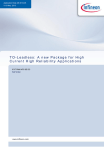 Application Note AN 2013-05 V1.0 May. 2013 TO-Leadless: A new Package for High Current High Reliability Applications IFAT PMM APS SE DC Ralf Walter TO-Leadless: A new Package for High Current High Reliability Applications Application Note AN 2013-05 V1.0 May 2013 Edition 2011-02-02 Published by Infineon Technologies Austria AG 9500 Villach, Austria © Infineon Technologies Austria AG 2011. All Rights Reserved. Attention please! THE INFORMATION GIVEN IN THIS APPLICATION NOTE IS GIVEN AS A HINT FOR THE IMPLEMENTATION OF THE INFINEON TECHNOLOGIES COMPONENT ONLY AND SHALL NOT BE REGARDED AS ANY DESCRIPTION OR WARRANTY OF A CERTAIN FUNCTIONALITY, CONDITION OR QUALITY OF THE INFINEON TECHNOLOGIES COMPONENT. THE RECIPIENT OF THIS APPLICATION NOTE MUST VERIFY ANY FUNCTION DESCRIBED HEREIN IN THE REAL APPLICATION. INFINEON TECHNOLOGIES HEREBY DISCLAIMS ANY AND ALL WARRANTIES AND LIABILITIES OF ANY KIND (INCLUDING WITHOUT LIMITATION WARRANTIES OF NON-INFRINGEMENT OF INTELLECTUAL PROPERTY RIGHTS OF ANY THIRD PARTY) WITH RESPECT TO ANY AND ALL INFORMATION GIVEN IN THIS APPLICATION NOTE. Information For further information on technology, delivery terms and conditions and prices please contact your nearest Infineon Technologies Office (www.infineon.com). Warnings Due to technical requirements components may contain dangerous substances. For information on the types in question please contact your nearest Infineon Technologies Office. Infineon Technologies Components may only be used in life-support devices or systems with the express written approval of Infineon Technologies, if a failure of such components can reasonably be expected to cause the failure of that life-support device or system, or to affect the safety or effectiveness of that device or system. Life support devices or systems are intended to be implanted in the human body, or to support and/or maintain and sustain and/or protect human life. If they fail, it is reasonable to assume that the health of the user or other persons may be endangered. AN 2013-05 Revision History: 13-05-10, V1.0 Subjects: TO-Leadless: A new Package for High Current High Reliability Application Authors: Ralf Walter We Listen to Your Comments Any information within this document that you feel is wrong, unclear or missing at all? Your feedback will help us to continuously improve the quality of this document. Please send your proposal (including a reference to this document) to: Ralf.Walter@infineon.com 2 TO-Leadless: A new Package for High Current High Reliability Applications Application Note AN 2013-05 V1.0 May 2013 Table of contents 1 Introduction .................................................................................................................................................. 5 2 Mechanical dimensions .............................................................................................................................. 5 2.1 Space reduction ................................................................................................................................. 5 2.2 High Continuous Current ................................................................................................................... 6 2.3 Automatic Optical Inspection (AOI) .................................................................................................... 7 3 Package Handling ........................................................................................................................................ 9 3.1 ESD-Protective Measurement ........................................................................................................... 9 3.1.1 ESD-Protective Measure in the Workplace .................................................................................... 9 3.1.2 Equipment for Personnel ................................................................................................................ 9 3.1.3 Production Installations and Processing Tools .............................................................................. 9 3.2 Packing of Components ...................................................................................................................10 3.3 Moisture Sensitivity Level ................................................................................................................10 3.4 Storage and Transportation Conditions ...........................................................................................11 3.5 Handling Damage and Contamination .............................................................................................11 3.6 Component Solderability ..................................................................................................................11 4 Printed Circuit Board ................................................................................................................................12 4.1 Routing .............................................................................................................................................12 4.2 PCB Pad Design ..............................................................................................................................12 4.3 Pad Surfaces....................................................................................................................................13 5 PCB Assembly ...........................................................................................................................................14 5.1 Solder Stencil ...................................................................................................................................14 5.2 Solder Paste.....................................................................................................................................15 5.3 Component Placement ....................................................................................................................15 5.4 Sold