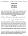 Industrial Applications of a Fiber Optic Emissivity Measuring Infrared Thermometer SPIE – The International Society for Optical Engineering Boston, Massachusetts Edward K. Matthews The Pyrometer Instrument Company, Inc. Northvale, New Jersey www.pyrometer.com ABSTRACT In 1987 the first laser-based emissivity measuring infrared thermometer was introduced. This instrument is currently in worldwide use in industrial and research applications. In 1990 a fiber optic sensor version was developed; this provided broader temperature measurement ranges, smaller target sizes, lower cost and most importantly flexibility of sensor head size, shape and materials. Furthermore the fiber optic sensor version meets the requirements for on-line infrared temperature measurement and temperature control in metallurgical, chemical, ceramic and electronics manufacturing where portable instrument access is prohibited and where the sensor environment is harsh. The convenience and reliableness of the fiber optic version is now a reality. Diffuse target temperatures from 200° to 3000°C with emissivities from 0.05 to 1.0 can be measured at multiple locations with stand-alone or computer controlled instruments. INTRODUCTION Since this discussion deals with the manufacturing applications of fiber optic sensors and more specifically with the infrared temperature measurements, it is not necessary to present at length the well-documented development of the radiation energy equations upon which the pyrometer is based. 1, 2 Infrared pyrometers are based on Planck’s equation: where (El ) is the spectral emittance of the target. For the measurement situation we have one equation with two unknowns. The pyrometer senses the target radiant energy Wl 1 but the second unknown emissivity ( El ) has typically prevented precise determination. In the early 1980’s with the availability of small, low powered pulsed lasers a direct means to determine the spectral emissivity of opaque diffuse surfaces was developed which subsequently resulted in a practical emissivity measuring pyrometer, PYROLASER®. 3 In 1991, it was recommended in a report prepared for the Department of Energy that the technology be enhanced via a fiber optic sensor version.4 In the same period the former National Bureau of Standards (NBS) development of optical fiber thermometry (OFT) was being commercialized 6. The (OFT) technology significantly advanced the utilization of fiber optic sensors and in this case via a coated precious metal tip behaves as a blackbody radiator thus resolving the emissivity problem for cases where the sensor can be in contact with the target. For most practical industrial temperature measurement applications non-contact infrared thermometers are required due to concern for product contamination, inaccessibility and or questionable sensor life such as frequently experienced with thermocouples. The spectral emissivity (El ) of most materials is not constant; it changes with the method of shaping or forming, the temperature, the atmosphere and the length of time in that atmosphere. It also varies with wavelength.7 Emissivity does not always increase with temperature and time and there is no visual means to intuitively estimate emissivity (snow is a good example). Even if a target is in an open environment i.e. no surrounding reflective walls, temperature errors due to emissivity errors are significant. If surrounding walls exist or if there are nearby other objects at or above the target, we have the additional error of reflected extraneous energy reaching the pyrometer causing erroneously high target temperatures. This is a very common problem in industrial furnaces which PYROFIBER ® can handle. Figure 1. Temperature and Emissivity Values – Hydrogen Furnace FIBER OPTIC SENSOR DESIGN PARAMETERS Before detailing specific desired sensor and fiber characteristics, it is first necessary to select the wavelengths to be used and the bandwidths. Two considerations are important: (1) avoidance of interfering gases and (2) availability of pulsed lasers and detectors that meet performance and economic requirements. On the first issue, industrial processes frequently involve absorbing gases in the region between the target and the sensor. Given sufficient abundance and path length these gases can significantly compromise the radiance and emissivity measurements and in turn the temperature determination. Figure 2 shows the emissivity of common gases found in a gas or oil fired furnace. We obviously wish to select the least interfering wavelengths; considering the laser availability wavelengths of 0.865 and 1.55 microns are obvious choices. Typically bandwidths of ± 0.0.5 and ± 0.050 micron respectively are utilized. Selection of the wavelength fixes the lowest temperature achievable and laser power influences the allowable target distances. WAVELENGTH TEMPERATURE RANGE DISTANCE RANGE DISTANCE nm °C cm 865 600 – 1500 0.1 – 1000 850 – 3000 1.0 – 110 200 - 700 .03 - 400 1550 Upper temperature limits are based on the desired instrument resolution and saturation of the detector excluding filtering. Target temperature and distance of course influence the materials of construction of the sensor and the possible need for cooling. SYSTEM OPERATION A schematic of the emissivity measuring fiber optic pyrometer is shown in Figure 3 . In this case a two- lens sensor head is illustrated, one for the laser outgoing pulse and the other for the radiance plus the laser return pulse. A single detector arrangement is used for these input signals with the radiance treated as a (dc) slowly varying input and the (ac) rapid laser pulse return signal. The speed of the system is fixed by the calculations rather than by the detection system; with calculations the unit cycle time is 28.6 ms. Since the laser output power can vary a sample of every pulse is internally taken facilitating a ratio treatment for each laser return pulse. It is possible from the key 