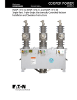 Reclosers MN280046EN Effective May 2016 Supersedes S280-44-1 COOPER POWER NOVA™ STS-15, NOVA™ STS-27, and NOVA™ STS-38 Single-Tank, Triple-Single, Electronically Controlled Recloser Installation and Operation Instructions SERIES DISCLAIMER OF WARRANTIES AND LIMITATION OF LIABILITY The information, recommendations, descriptions and safety notations in this document are based on Eaton Corporation’s (“Eaton”) experience and judgment and may not cover all contingencies. If further information is required, an Eaton sales office should be consulted. Sale of the product shown in this literature is subject to the terms and conditions outlined in appropriate Eaton selling policies or other contractual agreement between Eaton and the purchaser. THERE ARE NO UNDERSTANDINGS, AGREEMENTS, WARRANTIES, EXPRESSED OR IMPLIED, INCLUDING WARRANTIES OF FITNESS FOR A PARTICULAR PURPOSE OR MERCHANTABILITY, OTHER THAN THOSE SPECIFICALLY SET OUT IN ANY EXISTING CONTRACT BETWEEN THE PARTIES. ANY SUCH CONTRACT STATES THE ENTIRE OBLIGATION OF EATON. THE CONTENTS OF THIS DOCUMENT SHALL NOT BECOME PART OF OR MODIFY ANY CONTRACT BETWEEN THE PARTIES. In no event will Eaton be responsible to the purchaser or user in contract, in tort (including negligence), strict liability or other-wise for any special, indirect, incidental or consequential damage or loss whatsoever, including but not limited to damage or loss of use of equipment, plant or power system, cost of capital, loss of power, additional expenses in the use of existing power facilities, or claims against the purchaser or user by its customers resulting from the use of the information, recommendations and descriptions contained herein. The information contained in this manual is subject to change without notice. INSTALLATION AND OPERATION INSTRUCTIONS MN280046EN May 2016 i Contents DISCLAIMER OF WARRANTIES AND LIMITATION OF LIABILITY . . . . . . . . . . . . . . . . . . . . . . . . . . . . . . . . . . . . I SAFETY FOR LIFE . . . . . . . . . . . . . . . . . . . . . . . . . . . . . . . . . . . . . . . . . . . . . . . . . . . . . . . . . . . . . . . . . . . . . . . . . IV SAFETY INFORMATION . . . . . . . . . . . . . . . . . . . . . . . . . . . . . . . . . . . . . . . . . . . . . . . . . . . . . . . . . . . . . . . . . . . . IV Safety instructions. . . . . . . . . . . . . . . . . . . . . . . . . . . . . . . . . . . . . . . . . . . . . . . . . . . . . . . . . . . . . . . . . . . . . . . . . . . . . . . iv PRODUCT INFORMATION. . . . . . . . . . . . . . . . . . . . . . . . . . . . . . . . . . . . . . . . . . . . . . . . . . . . . . . . . . . . . . . . . . . . 1 Introduction. . . . . . . . . . . . . . . . . . . . . . . . . . . . . . . . . . . . . . . . . . . . . . . . . . . . . . . . . . . . . . . . . . . . . . . . . . . . . . . . . . . . 1 Acceptance and initial inspection . . . . . . . . . . . . . . . . . . . . . . . . . . . . . . . . . . . . . . . . . . . . . . . . . . . . . . . . . . . . . . . . . . . 1 Handling and storage. . . . . . . . . . . . . . . . . . . . . . . . . . . . . . . . . . . . . . . . . . . . . . . . . . . . . . . . . . . . . . . . . . . . . . . . . . . . . 1 Standards . . . . . . . . . . . . . . . . . . . . . . . . . . . . . . . . . . . . . . . . . . . . . . . . . . . . . . . . . . . . . . . . . . . . . . . . . . . . . . . . . . . . . 1 Description . . . . . . . . . . . . . . . . . . . . . . . . . . . . . . . . . . . . . . . . . . . . . . . . . . . . . . . . . . . . . . . . . . . . . . . . . . . . . . . . . . . . 1 RATINGS AND SPECIFICATIONS. . . . . . . . . . . . . . . . . . . . . . . . . . . . . . . . . . . . . . . . . . . . . . . . . . . . . . . . . . . . . . 2 Check recloser ratings prior to installation . . . . . . . . . . . . . . . . . . . . . . . . . . . . . . . . . . . . . . . . . . . . . . . . . . . . . . . . . . . . 2 RECLOSER DIMENSIONS. . . . . . . . . . . . . . . . . . . . . . . . . . . . . . . . . . . . . . . . . . . . . . . . . . . . . . . . . . . . . . . . . . . . 3 INSTALLATION PROCEDURE . . . . . . . . . . . . . . . . . . . . . . . . . . . . . . . . . . . . . . . . . . . . . . . . . . . . . . . . . . . . . . . . . 4 Moving the recloser . . . . . . . . . . . . . . . . . . . . . . . . . . . . . . . . . . . . . . . . . . . . . . . . . . . . . . . . . . . . . . . . . . . . . . . . . . . . . 4 Lifting the recloser. . . . . . . . . . . . . . . . . . . . . . . . . . . . . . . . . . . . . . . . . . . . . . . . . . . . . . . . . . . . . . . . . . . . . . . . . . . . . . . 4 Remove recloser from service . . . . . . . . . . . . . . . . . . . . . . . . . . . . . . . . . . . . . . . . . . . . . . . . . . . . . . . . . . . . . . . . . . . . . 6 Grounding the NOVA STS recloser. . . . . . . . . . . . . . . . . . . . . . . . . . . . . . . . . . . . . . . . . . . . . . . . . . . . . . . . . . . . . . . . . . 7 RECLOSER OPERATION . . . . . . . . . . . . . . . . . . . . . . . . . . . . . . . . . . . . . . . . . . . . . . . . . . . . . . . . . . . . . . . . . . . . . 8 Vacuum interrupter . . . . . . . . . . . . . . . . . . . . . . . . . . . . . . . . . . . . . . . . . . . . . . . . . . . . . . . . . . . . . . . . . . . . . . . . . . . . . . 8 Mechanism tripping and closing. . . . . . . . . . . . . . . . . . . . . . . . . . . . . . . . . . . . . . . . . . . . . . . . . . . . . . . . . . . . . . . . . . . . 8 Electronic control. . . . . . . . . . . . . . . . . . . . . . . . . . . . . . . . . . . . . . . . . . . . . . . . . . . . . . . . . . . . . . . . . . . . . . . . . . . . . . . . 9 Manual operation of energized recloser. . . . . . . . . . . . . . . . . . . . . . . . . . . . . . . . . . . . . . . . . . . . . . . . . . . . . . . . . . . . . . 9 3-Phase trip/3-phase lockout or 1-phase trip/3-phase lockout. . . . . . . . . . . . . . . . . . . . . . . . . . . . . . . . . . . . . . . . . . . . . . 9 1-Phase trip/1-phase lockout . . . . . . . . . . . . . . . . . . . . . . . . . . . . . . . . . . . . . . . . . . . . . . . . . . . . . . . . . . . 
