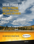 SOLAR POWER GIVES YOU FREEDOM TO CAMP ANYWHERE AND SAVES YOU MONEY. ® THE SMART WAY TO POWER YOUR RV. powered by gpelectric.com YOUR RV IS ALL ABOUT FREEDOM. TO GO WHERE YOU WANT, WHEN YOU WANT. To enjoy all the comforts of your RV, you need power. A generator can provide you power, but they’re noisy and expensive to fuel and maintain. Solar power is a quiet, reliable and cost-effective alternative. As long as there is daylight – your solar panels will charge your battery, providing you power during the day and night. 200 watt Solar Flex Kit SO L A R K E E P S YO U R BAT T E R I E S H E A LT H Y! Healthy batteries are the heart of your RV’s electrical system. Keeping batteries consistently charged is key to maximizing their lifespan. Solar keeps working even when you are parked by topping up your batteries during daylight to ensure they are always full. Go Power! SOLAR CHARGING KITS GIVE YOU FREEDOM TO ROAM. FREEDOM QUIET SAVINGS ZERO FUEL RENEWABLE Leave the grid behind knowing you’ll have all the power you need for almost everything. Many campsites restrict use of noisy generators. Go Power! solar is silent. Solar kits keep batteries charged which prolongs lifespan and reduces replacement frequency. Solar also saves you site hook-up fees. With Go Power! solar, the sun is your fuel source – and it’s free! Solar is the safest, cleanest and simplest source of power available. *Air conditioners generally excluded. BACK UP POWER Solar prepares you for emergencies, or for overnights in a parking lot away from shore power. RV Solar Power is in Demand Many new RVs come with or are pre-wired for Go Power! solar kits. Look for the “Solar On Board”, “Wired for Solar” or “Solar on the Side” sticker on your dealer’s lot. A pre-wired system is a great way to save on installation costs! S AV E M O N E Y W IT H S O L A R Solar kits cost as little as a portable generator and are maintenance free. HOW SOLAR WORKS This diagram shows the components of the Go Power! Solar Elite System. Go Power! offers a selection of solar kits and systems to suit your power needs and budget. Solar Panels* Panels convert the sun’s energy to electricity, which charges the battery bank. Panels may be mounted to the rooftop, or choose a portable solar kit. Cable Entry Plate Optional component that provides a water-tight, vibration proof connection (sold separately). Solar Controller* Regulates the amount of electricity sent from the panels to the batteries. Protects batteries from overcharging damage. Battery Converter / Charger Allows for shore power to charge your batteries. DC Pow er Inverter remote Shore power er ow P AC Inverter fuse and cable kit Transfer Switch Automatically selects shore or inverter power to feed into your AC breaker panel. *Solar kit components (DC power only) Inverter Converts DC (12V) battery power to AC (120V) power to use common household electronics, devices and appliances. Batteries High efficiency batteries (1 to 4+ needed) are the system’s DC power reservoir. Batteries store the electricity generated from the solar panels. SOLAR PANEL SENSE What should you look for in a solar panel? Look for high-quality panels that are: Manufactured with durable tempered glass Hail and weather proof - factory tested to 1” hail stones @ 50 mph Reliable – with a low incident rate (Go Power!’s is less than 1/1000 of 1%) Strong and durable - heavy duty frame to withstand rough roads and high winds Warranty from reputable manufacturer (one that will be around in 25 years) How much solar do I need? Sizing solar for your RV is a balance between your estimated power consumption and the right number of solar panels and batteries. We offer a variety of solar kits and systems that can be easily matched to your needs. For a detailed recommendation, please refer to the solar sizing worksheet on the back cover of this brochure, or ask your dealer. 120 watt Portable Solar Kit A C O M PA N Y YO U CA N T R U S T ® Since 1996, Go Power! has provided solar power solutions to RVers, campers and boaters. We have industry leading warranties and excellent technical support. powered by GO POWER! SOLAR SOLUTIONS Solar Kits (DC Power Only) Go Power! Solar Kits keep your batteries charged and run the essentials such as lights, fans and water pumps on DC 12 volt power. Kits are expandable as your power needs grow. Overlander Kit: Our most popular single 12V solar charging kit on the market. Retreat Kit: Ideal for RVs with limited roof space. Solar Flex Kit: Mounts on curved rooftops with screws or adhesive. Portable Solar Kit: Park in the shade, while the Portable Solar Kit is set up in the sun. No installation required. Eco Series Kit: Our economical 80 watt Eco Kit is a great starter kit for light power needs or for small RVs. WH AT ’ S IN C L U D E D I N A S O L A R K I T ? Solar panel, mounting hardware (if required), UL rated solar cables and a pulse width modulated (PWM) digital solar controller. Complete Solar + Inverter Systems (DC and AC Power) Go Power! Complete Systems charge your batteries and give you freedom to run your DC and AC appliances, devices and electronics anywhere – without starting your generator or connecting to the grid. Solar Extreme: Our largest solar and inverter system, with maximum flexibility for full time living off the grid. Solar Elite: Great for RVing off the grid for up to a week without worrying about power. Weekender SW: Ideal for weekend RVing. An economical way to enjoy most of the comforts you need while off the grid, yet easily expandable. WH AT ’ S IN C L U D E D I N A C O M P L E T E S YS TEM? Solar panel(s), pulse width modulated (PWM) digital solar controller, inverter, inverter remote, transfer switch, battery converter/charger (not included in Weekender SW), cables and mounting hardware. the Solar Extreme INVERTER POWER WHAT IS AN INVERTER? An inverter lets you run your AC powered 120V household appliances and electronics from your RV’s 12V 
