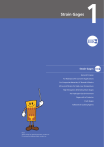 Strain Gages 1 Strain Gages General Purpose For Waterproof & Concrete Applications For Composite Materials, PC Boards & Plastics Ultra-small Strains for High, Low Temperature High Elongation & Bending Strain Gages For Hydrogen Gas Environment Gages with a Protector Crack Gages Adhesives & Coating Agents Note When using for special purposes, contact us. For prices and delivery date, contact us. 1 -1 STRAIN GAGES Strain Gages ■Strain, Stress, and Poisson's Ratio D P ΔL 2 D− ΔD − ΔD 2 Fig. 1 − ΔD 2 STRAIN GAGES When a material receives tensile force P, it has stress σ that corresponds to the applied force. In proportion to the stress, the cross section contracts and the length elongates byΔL from the length L the material had before receiving the tensile force (See illustration in Fig. 1) below. P For example, if tensile force makes 100 mm long material elongate by 0.01 mm, the strain initiated in the material is as follows: ε= ΔL L σ = Eε ΔD 2 D Δ − L 2 D+Δ D ΔD 2 P L− ΔL P Δ − L 2 L (Compression) The ratio of the elongation to the original length is called a tensile strain and is expressed as follows: ε= ΔL L ε:Strain L:Original length ΔL:Elongation See the lower illustration in Fig. 1. If the material receives compressive force, it bears compressive strain expressed as follows: ε= -ΔL L 1-1 σ: Stress E: Young's modulus ε: Strain L+Δ L (Tension) 0.01 = 0.0001 = 100 μm/m 100 Thus, strain is an absolute number and is expressed with a numeric value with x10 -6 strain, με or μm/m suffixed. Based on Hooke's law, the relation between stress and the strain initiated in a material by the applied force is expressed as follows: ΔL 2 L = Stress is thus obtained by multiplying strain by the Young's modulus. When a material receives tensile force P, it elongates in the axial direction while contracting in the transverse direction. Elongation in the axial direction is called longitudinal strain and contraction in the transverse direction, transverse strain. The absolute value of the ratio between the longitudinal strain and transverse one is called Poisson's ratio, which is expressed as follows: ε2 ν= ε1 ν:Poisson's ratio ε1:Longitudinal strain ΔLL ΔL(See Fig. 1) or L Δ D Δ D (See Fig. 1) ε2:Transverse strain - D or D Poisson's ratio differs depending on the material. For major industrial materials and their mechanical properties including Poisson's ratio, refer to page 9-1. 1 -2 A strain gage detects a minute dimensional change (strain) as an electric signal. By measuring strain strain gage is used in various industries including machinery, automobile, electric, civil engineering, medical, and food. The strain gage is also adopted as a sensing element of force, pressure, acceleration, vibration, displacement, and torque transducers used for various purposes including measurement and control of production lines. Kyowa produced the first Japanese-made strain gages in 1951, and based on the abundant STRAIN GAGES with the gage bonded to a material or structure, the strength or safety can be known. Thus, the experience and technology accumulated for these years, the company manufactures a variety of high-performance, environmentally friendly strain gages. ■Structure of Foil Strain Gage Each metal has its specific resistance. If external tensile force (compressive force) increases (decreases) the resistance by elongating (contracting) it. Suppose the original resistance is R and the strain-initiated change in resistance is ΔR. Then, the following relation is concluded: The foil strain gage has metal foil photo-etched in a grid pattern on the electric insulator of the thin resin and gage leads attached, as shown in Fig. 2 below. ΔR R = Ks · ΔL L The strain gage is bonded to the measuring object with a dedicated adhesive. Strain occurring on the measuring site is transferred to the strain sensing element via the gage base. For accurate measurement, the strain gage and adhesive should match the measuring material and operating conditions including temperature. For the bonding method and dampproof treatment, refer to page 9-9. = Ks ε · where, Ks is a gage factor, expressing the coefficient of strain gage sensitivity. General purpose strain gages use copper-nickel or nickel-chrome alloy for the resistive element, and the gage factor provided by these alloys is approximately 2. STRAIN GAGES ■Principle of Strain Gages ■Types of Strain Gages Types of strain gages include foil strain gage, wire strain gage, and semiconductor strain gage. Fig. 2 Example of KFG gage Base length Grid length (strain sensing part) Laminate Base Base width Grid width (Gage length) Center mark Base Metal foil Laminate film Bonded surface Solder Gage leads (Silver-clad copper wire, 0.12 to 0.16 mm and 25 mm long) 1-2 1 -3 STRAIN GAGES STRAIN GAGES Strain initiated resistance change is extremely small. Thus, for strain measurement a Wheatstone bridge is formed to convert the resistance change to a voltage change. Suppose in Fig. 3 resistances (Ω) are R1, R2, R3 and R4 and the bridge voltage (V) is E. Then, the output voltage eo (V) is obtained by the following equation: e0 = R 1R 3 − R 2 R 4 ·E (R1+R 2) (R 3+R 4) Suppose the resistance R1 is a strain gage and it changes by ΔR due to strain. Then, the output voltage is, e0 = (R1+ΔR)R3 -R2R4 ·E (R1+ΔR+R2) (R3+R4) If R1 = R2 = R3 = R4 = R in the initial condition, 2 2 e0 = R +RΔR-R · E (2R+ΔR) 2R Since R may be regarded extremely larger thanΔR , ΔR 1 e0 ≒ 41 · · E = · Ks ·ε· E 4 R Thus obtained is an output voltage that is proportional to a change in resistance, i.e. a change in strain. This microscopic output voltage is amplified for analog recording or digital indication for strain measurement. 1-3 Fig. 3 R1 R2 Strain gage R4 R3 Output voltage e0 ■Principle of Strain Measurement Bridge voltage E ■Strain Gage Wiring System A strain gage Wheatstone bridge is configured with a quarter, half, or full bridge