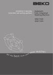 Automatic Fully Integrated Washing Machine WMI 71641 WMI 71441 Please read this manual first! Dear Customer, We hope that your product which has been manufactured in modern facilities and passed through a strict quality control procedure will give you the best results. Therefore, we advise you to read through this manual carefully before using your product and keep it for future reference. This operation manual will… …help you use your machine in a fast and safe way. • Please read the Operation Manual before installing and starting your machine. • Particularly follow the instructions related to safety. • Keep this Operating Manual within easy reach. You may need it in the future. • Please read all additional documents supplied with this machine. Please note that this Operating Manual may be applicable for several other models. Differences between models will be identified in the manual. Explanation of symbols Throughout this Operation Manual the following symbols are used: C Important information or useful hints about usage. AWarning for hazardous situations with regard to life and property. 2820521336_EN/310810.1050 BWarning for supply voltage. This appliance’s packaging material is recyclable. Help recycle it and protect the environment by dropping it off in the municipal receptacles provided for this purpose. Your appliance also contains a great amount of recyclable material. It is marked with this label to indicate the used appliances that should not be mixed with other waste. This way, the appliance recycling organised by your manufacturer will be done under the best possible conditions, in compliance with European Directive 2002/96/EC on Waste Electrical and Electronic Equipment. Contact your town hall or your retailer for the used appliance collection points closest to your home. We thank you doing your part to protect the environment. TABLE OF CONTENTS 1 Your Washing Machine 4 Overview . . . . . . . . . . . . . . . . . . . . . . . . 4 Specifications . . . . . . . . . . . . . . . . . . . . . 5 2 Warnings 6 General Safety . . . . . . . . . . . . . . . . . . . . 6 First Use . . . . . . . . . . . . . . . . . . . . . . . . . 6 Intended use . . . . . . . . . . . . . . . . . . . . . 6 Safety instructions . . . . . . . . . . . . . . . . . 6 If there are children in your house... . . . . 7 Electrical connection. . . . . . . . . . . . . . . . 7 3 Installation 9 Removing packaging reinforcement . . . . 9 Opening the transportation locks . . . . . . 9 Appropriate installation location . . . . . . . 9 Raising the appliance . . . . . . . . . . . . . . . 9 Adjusting the feet . . . . . . . . . . . . . . . . . 10 Connecting to the water supply. . . . . . . 10 Connecting to the drain . . . . . . . . . . . . 10 Electrical connection . . . . . . . . . . . . . . 11 Destroying the packaging material . . . . 11 Disposing of the old machine . . . . . . . . 11 4 Initial preparations for washing 12 Sorting the laundry . . . . . . . . . . . . . . . . 12 Preparing clothes for washing . . . . . . . . 12 Correct load capacity . . . . . . . . . . . . . . 12 Loading door . . . . . . . . . . . . . . . . . . . . 13 Detergents and softeners . . . . . . . . . . . 13 5 Selecting a Program and Operating Your Machine Spin Speed selection . . . . . . . . . . . . . . 19 Program and consumption table. . . . . . 20 Auxiliary functions . . . . . . . . . . . . . . . . . 21 Time display . . . . . . . . . . . . . . . . . . . . . 21 Starting the Program . . . . . . . . . . . . . . 22 Progress of program . . . . . . . . . . . . . . . 22 Changing the selections after the program has started . . . . . . . . . . . . . . . . . . . . . . 23 Switching the machine to standby mode23 Child-proof lock . . . . . . . . . . . . . . . . . . 23 Ending the program through cancelling. 23 Program in rinse hold mode . . . . . . . . . 24 End of program . . . . . . . . . . . . . . . . . . 24 6 Quick instructions for daily use 25 7 Maintenance and cleaning 26 Detergent Drawer . . . . . . . . . . . . . . . . . 26 The loading door and the drum . . . . . . 26 Body and control panel. . . . . . . . . . . . . 26 Inlet water filters . . . . . . . . . . . . . . . . . . 26 Draining any remaining water and cleaning the pump filter . . . . . . . . . . . . . . . . . . . 27 8 Solution suggestions for problems 29 9 Guarantee 35 10 Service 36 11 BUILT-IN INSTALLATION 37 16 Control panel . . . . . . . . . . . . . . . . . . . . 16 Display symbols . . . . . . . . . . . . . . . . . . 17 Turning the machine on . . . . . . . . . . . . 17 Program selection. . . . . . . . . . . . . . . . . 17 Additional programs . . . . . . . . . . . . . . 17 Special programs . . . . . . . . . . . . . . . . . 18 Temperature selection. . . . . . . . . . . . . . 18 3 EN 1 Your Washing Machine Overview 1 3 4 2 5 6 1 - Detergent Drawer 4 - Control Panel 2 - Door 5 - Filter Cap 3 - Top Lid 6 - Height-adjustable feet 4 EN Specifications WMI71641 Models WMI71441 Maximum dry laundry capacity (kg) 7 7 Height (cm) 84 84 Width (cm) 60 60 Depth (cm) 54 54 Net Weight (±4 kg) 73 72 Electricity (V/Hz.) 230 V / 50Hz 230 V / 50Hz Total Current (A) 10 10 Total Power (W) 2200 2200 Spinning cycle (rpm max.) 1600 1400 Specifications of this appliance may change without notice to improve the quality of the product. Figures in this manual are schematic and may not match your product exactly. Values stated on the machine labels or in the documentation accompanying it are obtained in laboratory in accordance with the relevant standards. Depending on operational and environmental conditions of the appliance, values may vary. 5 EN 2 Warnings Please read the following information. Otherwise, there may be the risk of personal injury or material damage. Moreover, any warranty and reliability commitment will become void. First Use General Safety • • • • • • • Never place your machine on a carpet covered floor. Otherwise, lack of airflow from below your machine may cause electrical parts to 